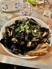 On arrive, pas de homard. Mon parrain choisi donc de prendre des ribs du coup mais avec accompagnement frites car il n’aime l’accompagnement légumes avec. Mais on lui dit que c’est impossible de prendre les ribs avec l’accompagnement frites… J’ai pas l’impression qu’on a demandé la plus grand complexité du monde pourtant… Sinon les moules sont bonnes et l’endroit est joli.