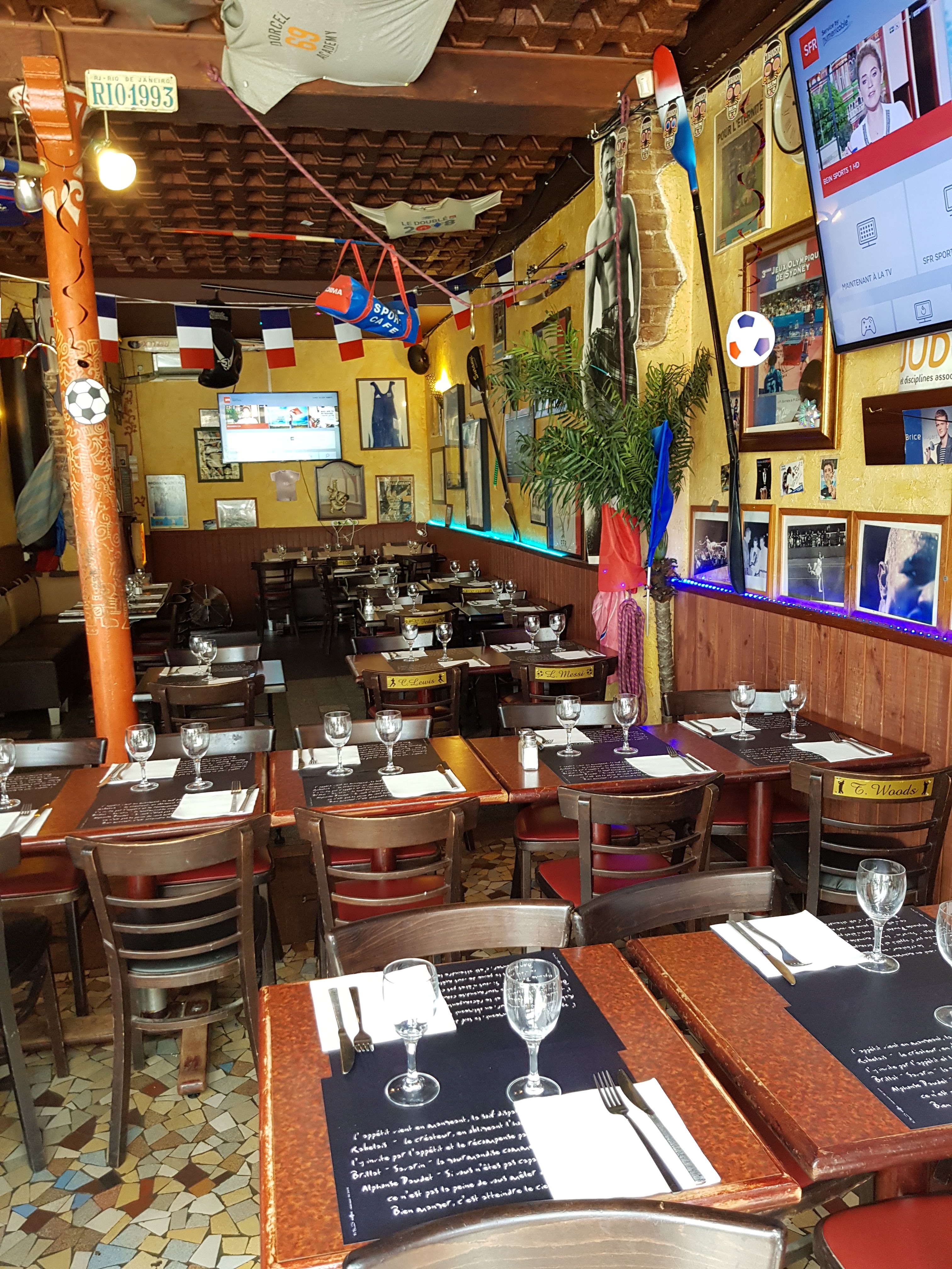 Vous serez forcément séduits par le cadre de l'Olympe Sport Café. C'est assurément une adresse à ne pas rater à Vincennes. Les murs sont ornés de tout un panel de maillots, drapeaux, matériel sportif dédicacé, autographes ... Le patron, juste un judoka médaillé olympique du nom de Bertrand Damaisin fait le service et saura vous mettre à l'aise.Côté assiette, la carte est gigantesque et ça pourrait inquiéter. Mais que nenni ! Les plats sont bons et ultra copieux ! Une bonne ration de judoka ! Vous trouverez forcément ce qu'il vous plaira. Les sports y sont également diffusés et c'est un super spot les soirs de match, plus encore quand c'est la France qui joue. Ne loupez pas cette adresse.