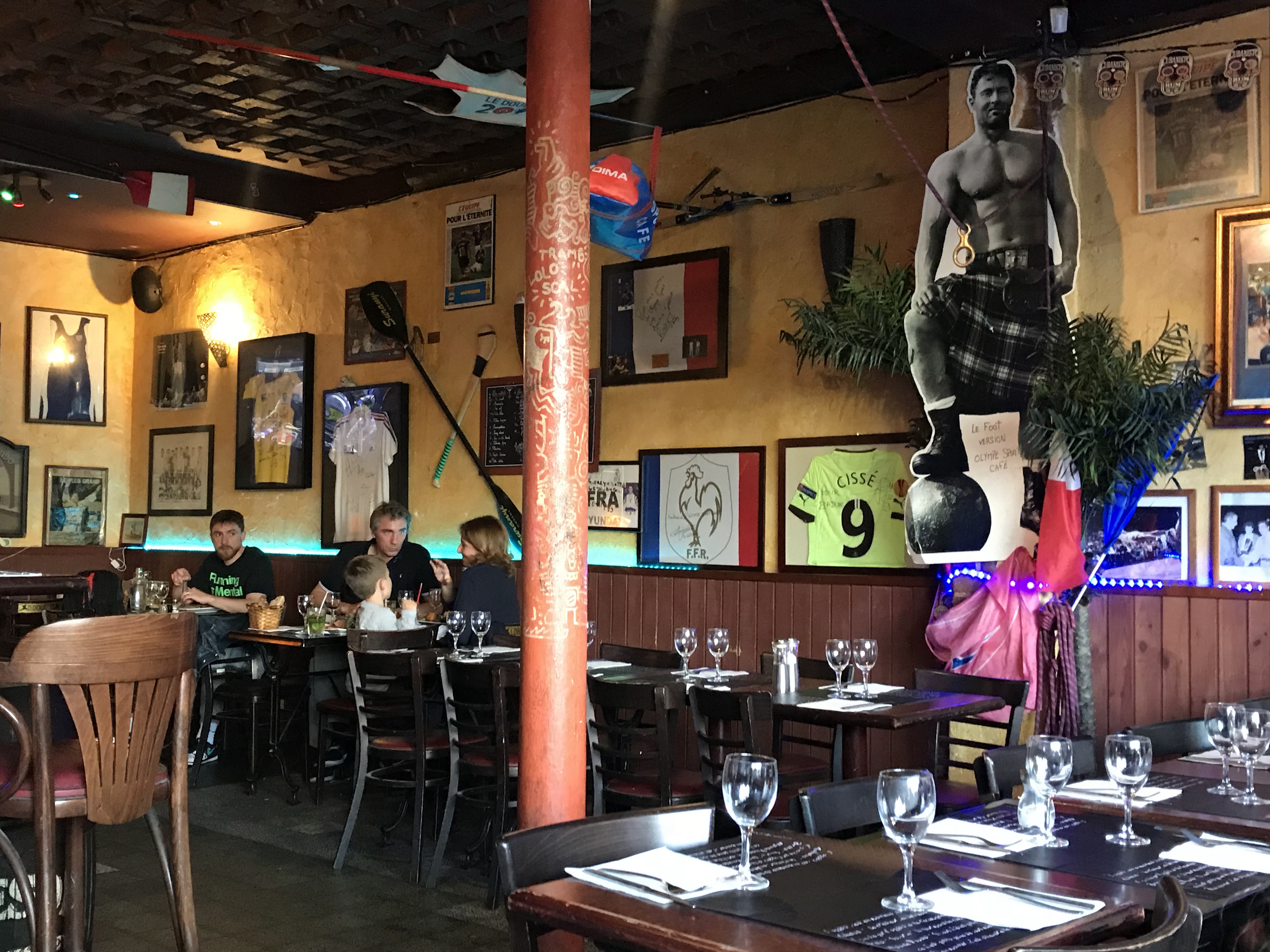 Olympe Café aurait pu s'appeler café des sports. Des sportifs plus ou moins célèbres ont donné des maillots, des objets de leur sport (perche de Jean Galfione)... L'équipe est sympa!Bonne cuisine de brasserie Bon rapport qualité prix