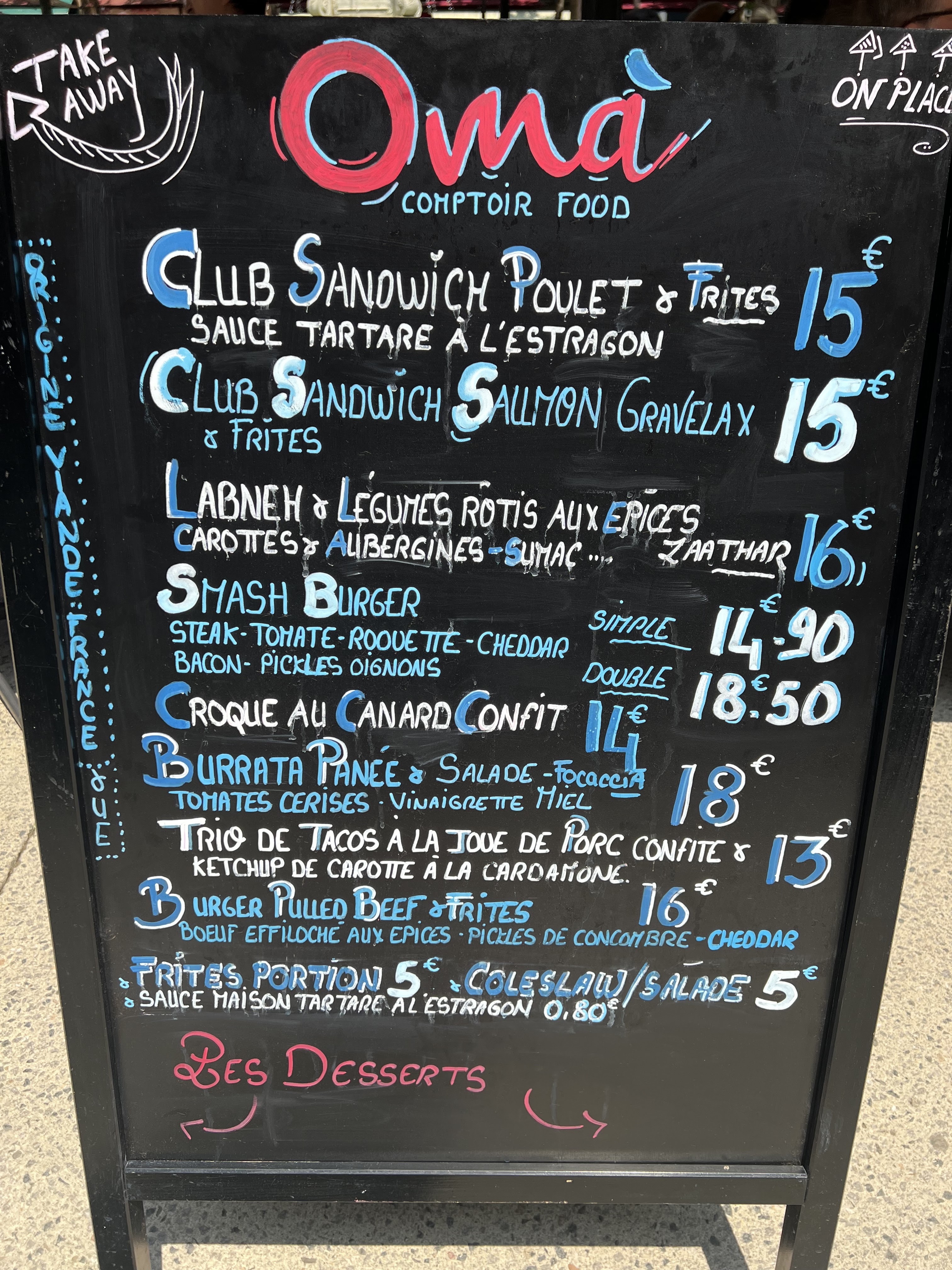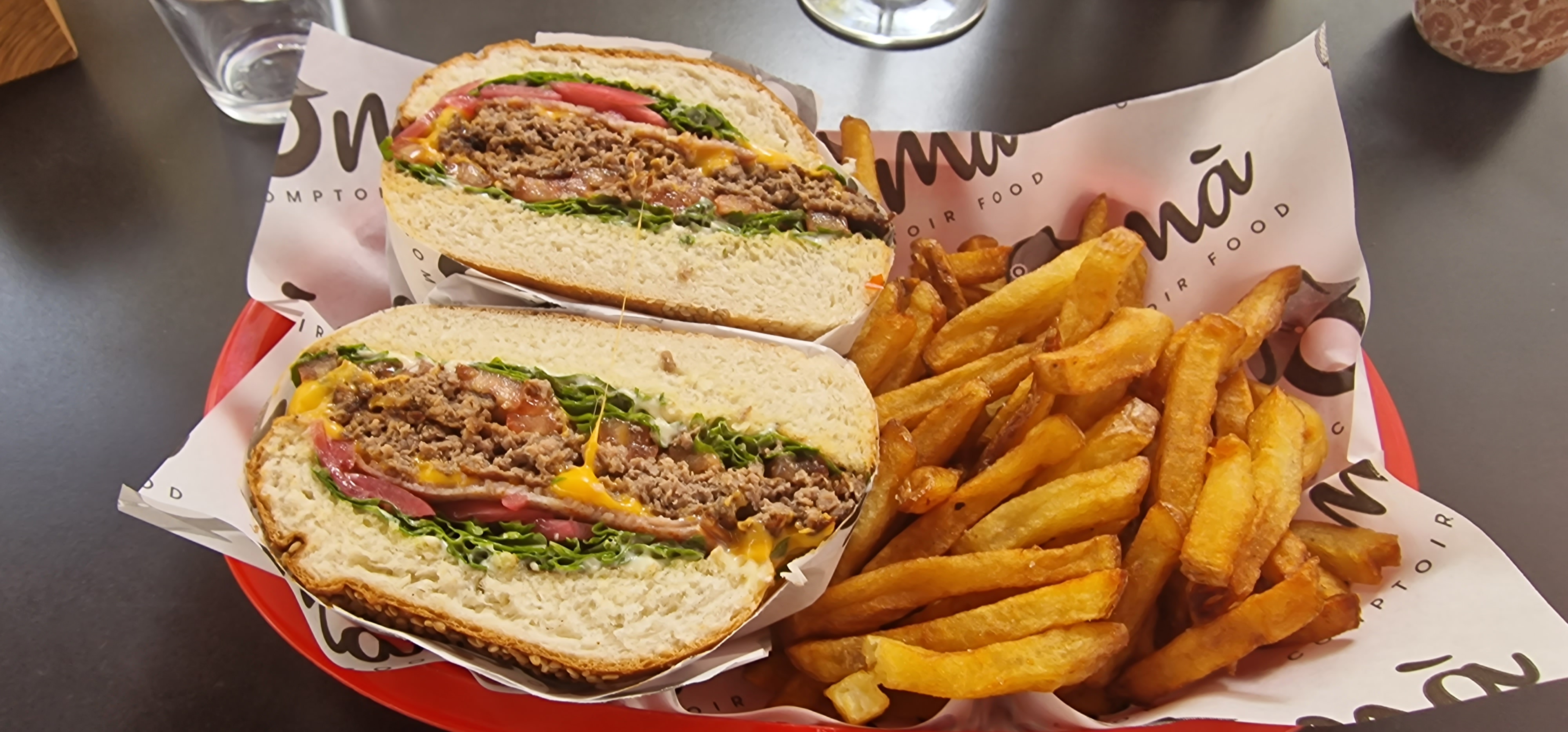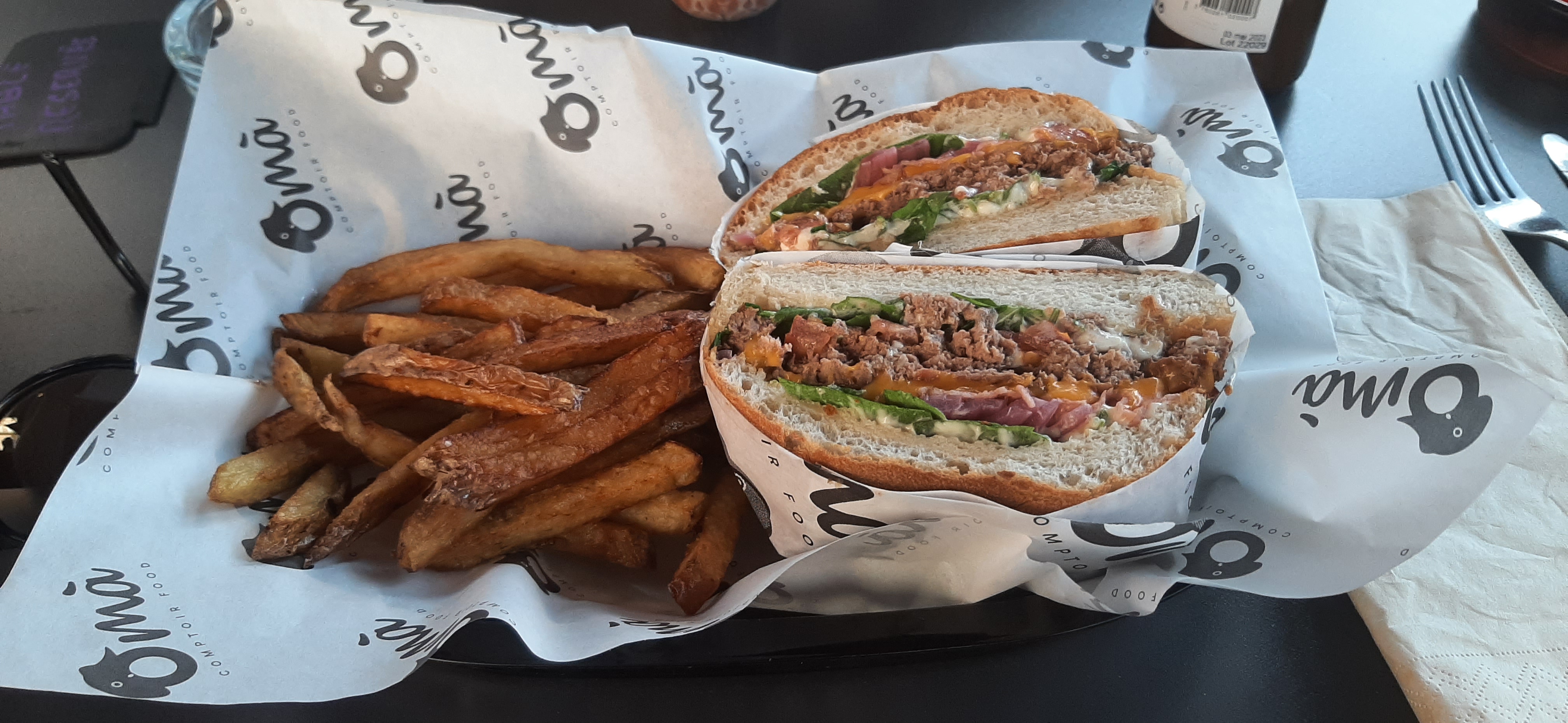 C'était un très bon déjeuner. Oma est sur la pittoresque place Carnot. Le Smashburger était bon. Beaucoup de pain. Le Croc Cunard, alias Duck Grilled Cheese, était la star de notre repas. Centre très riche et fromager avec une superbe touche de fromage. Beaucoup de frites chaudes accompagnaient les sandwichs. Une belle sélection de vins. Notre serveur était gentil et patient avec notre français minimal. Très agréable.