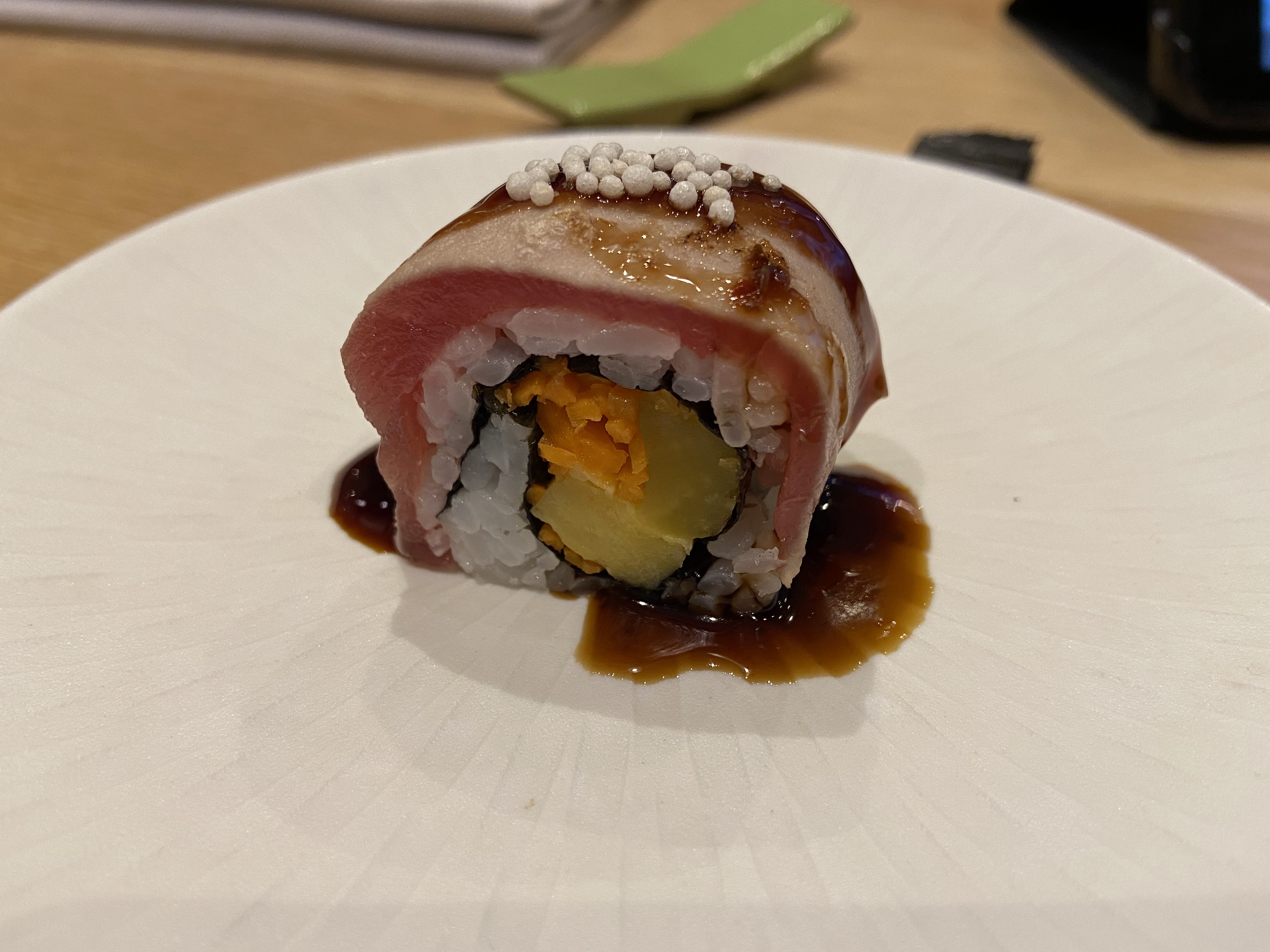 Deuxième fois que nous y mangeons, cette fois-ci en optant pour le menu du soir. Un sans faute tout au long des dégustations, de la mise en bouche au dessert. Un maitre sushi des temps modernes qui nous fait découvrir des sushis signatures savoureux à travers une expérience culinaire unique tout en proposant un service adapté à notre régime alimentaire mais surtout une personnalité qui mêle bonne humeur, échanges intéressants et une touche d’histoire culinaire. En bref, on se sent tout de suite à l’aise (même pour les plus timides d’entre nous). Nous y retournerons, c’est chose sûre, si ce n’est pas pour les sushis, ce sera pour parler voitures, 4 anneaux ou peut-être l’électrique, qui sait ;) !
