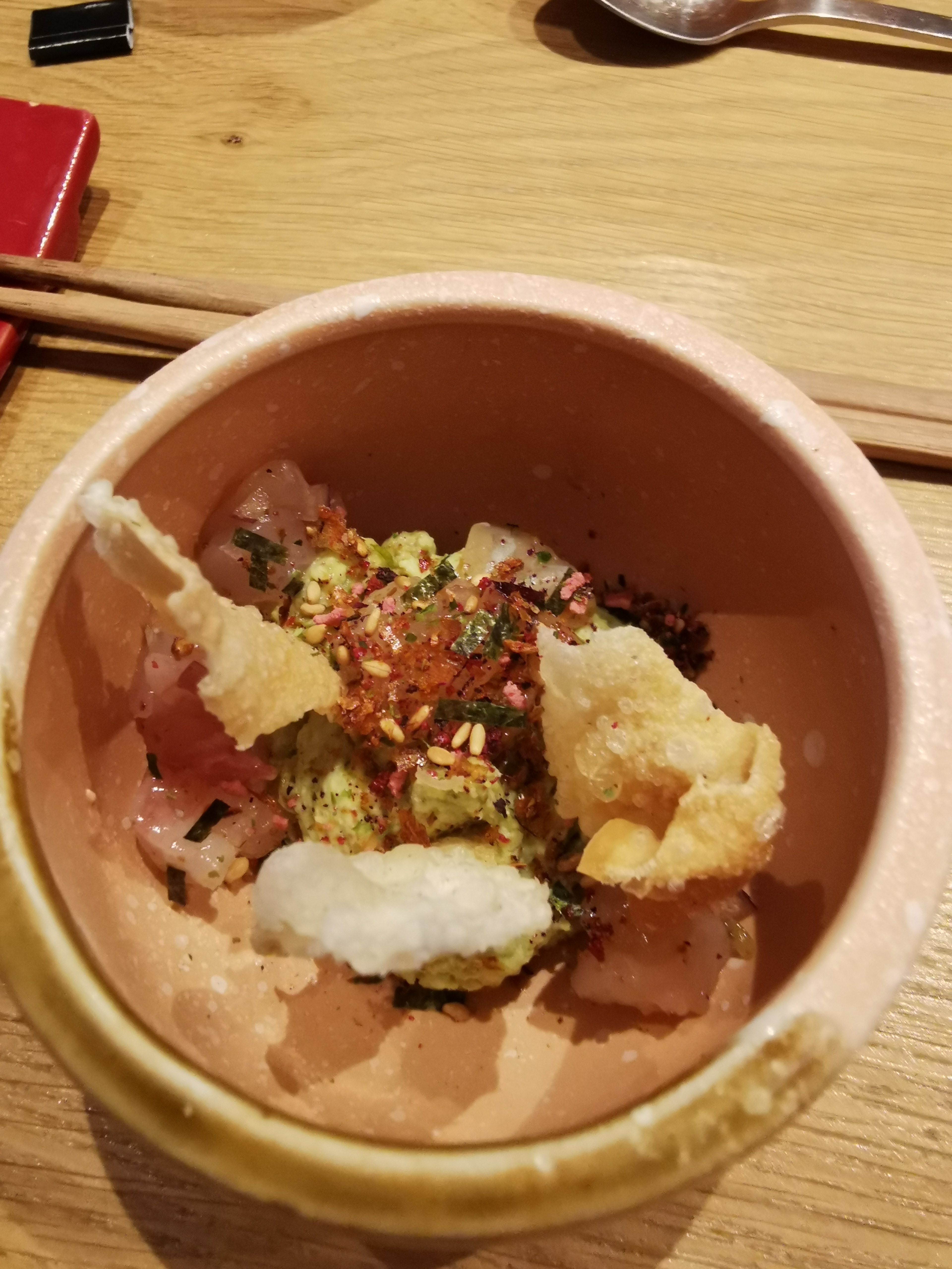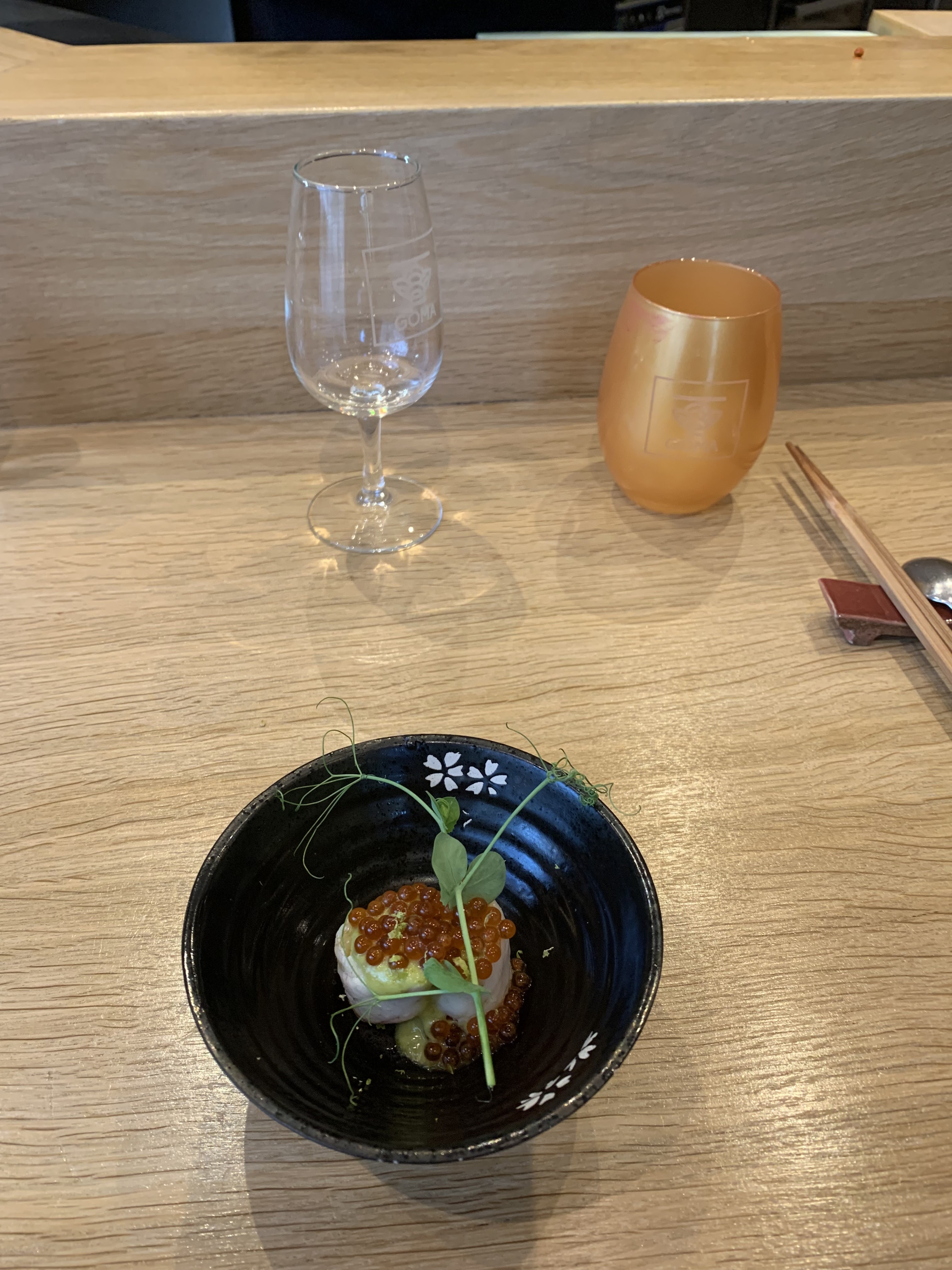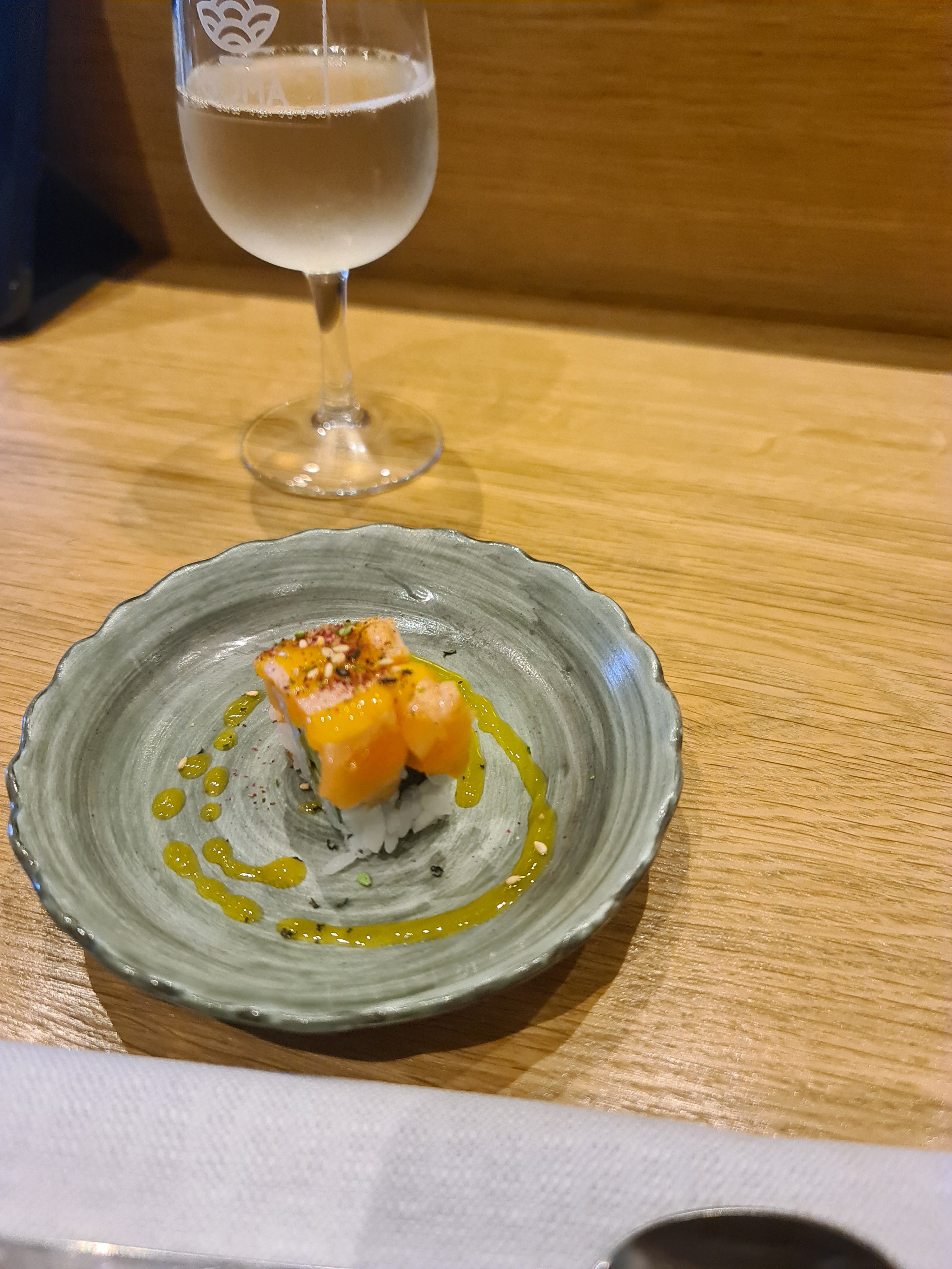 Nous y sommes allés avec mon compagnon pour fêter un anniversaire et personnellement j’ai été conquise. j’ai adoré 90% de ce que j’y ai mangé et bu, avec de belles découvertes en prime. Mon compagnon a un avis plus mitigé. Le prix du menu omakase est élevé or tout n’était pas parfait d’après nous. Le menu est improvisé suivant les arrivages, c’est un risque je pense. L’aspect « restaurant fusion » n’était pas non plus toujours visible/évident dans tous les plats… Ce n’est pas le premier que nous testons.