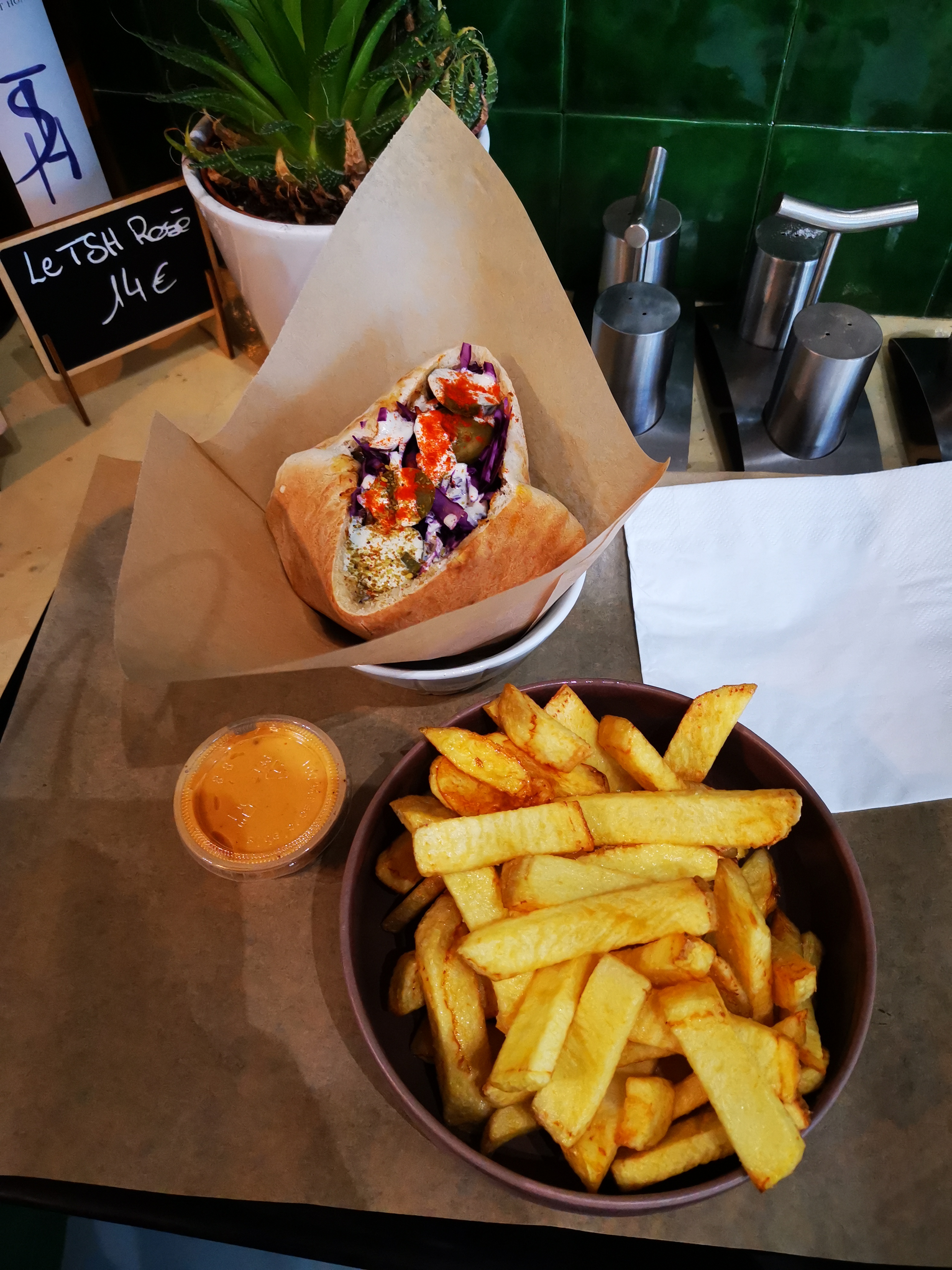 Un régal, des saveurs parfumés pour ce sandwich Pita dégusté et des frites tendres ! Merci