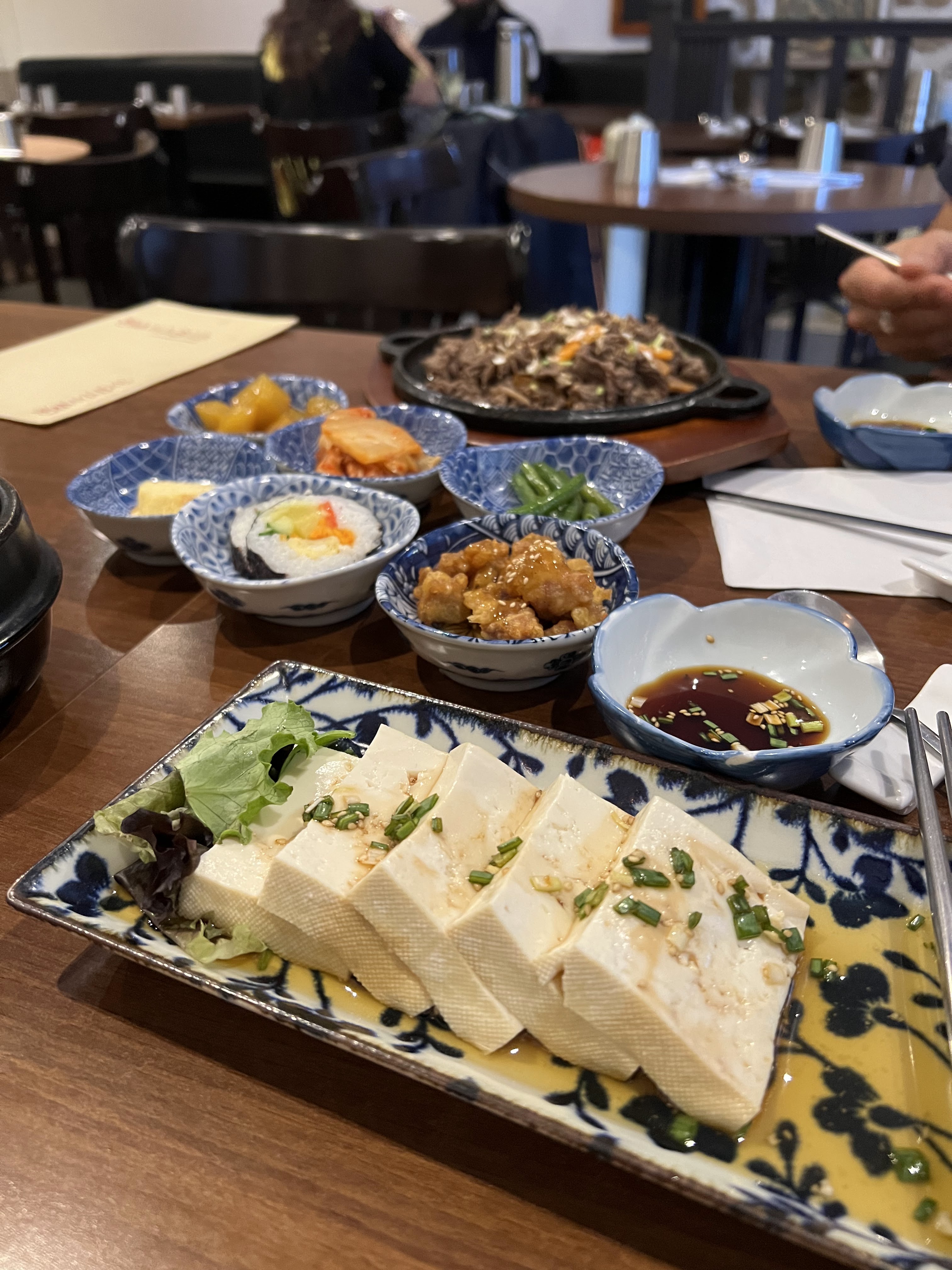 Cuisine coréenne très typique ! C’est délicieux, il vaut mieux manger sur place que livraison. La quantité et la qualité sont bien meilleures. BTW, le thé est très spécial et dégusté. Recommandé!