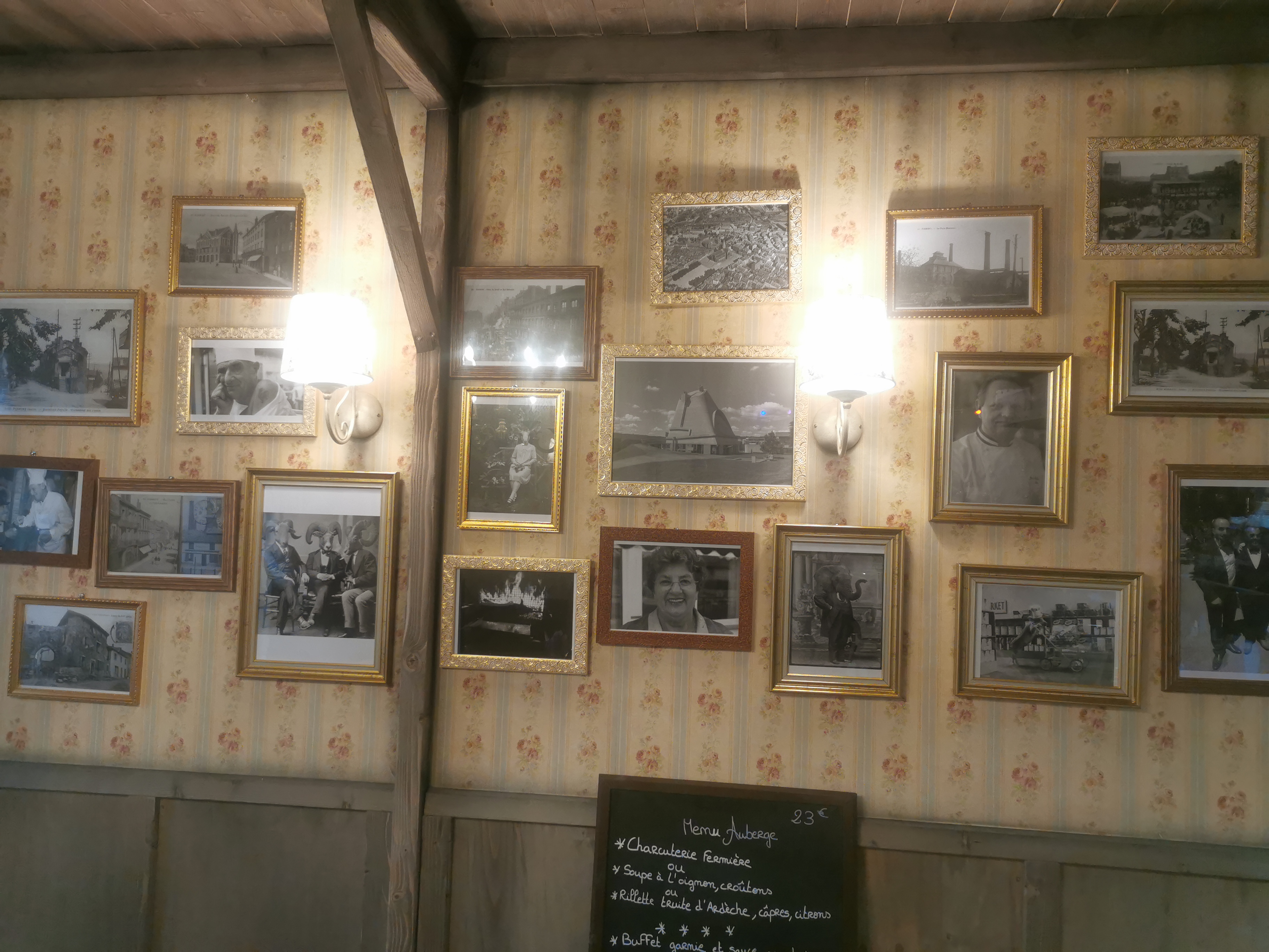 Vraiment une auberge très accueillante. Nous étions avec nos amis . J’étais contente de montrer qu’à Firminy nous avions une belle Auberge très belle déco. Pour 22 € choix de deux entrées. Plusieurs choix de viandes et accompagnements de légumes ou féculents. À volonté. et pour finir dessert au choix. Je reviendrai sans problème. Merci pour cette soirée.