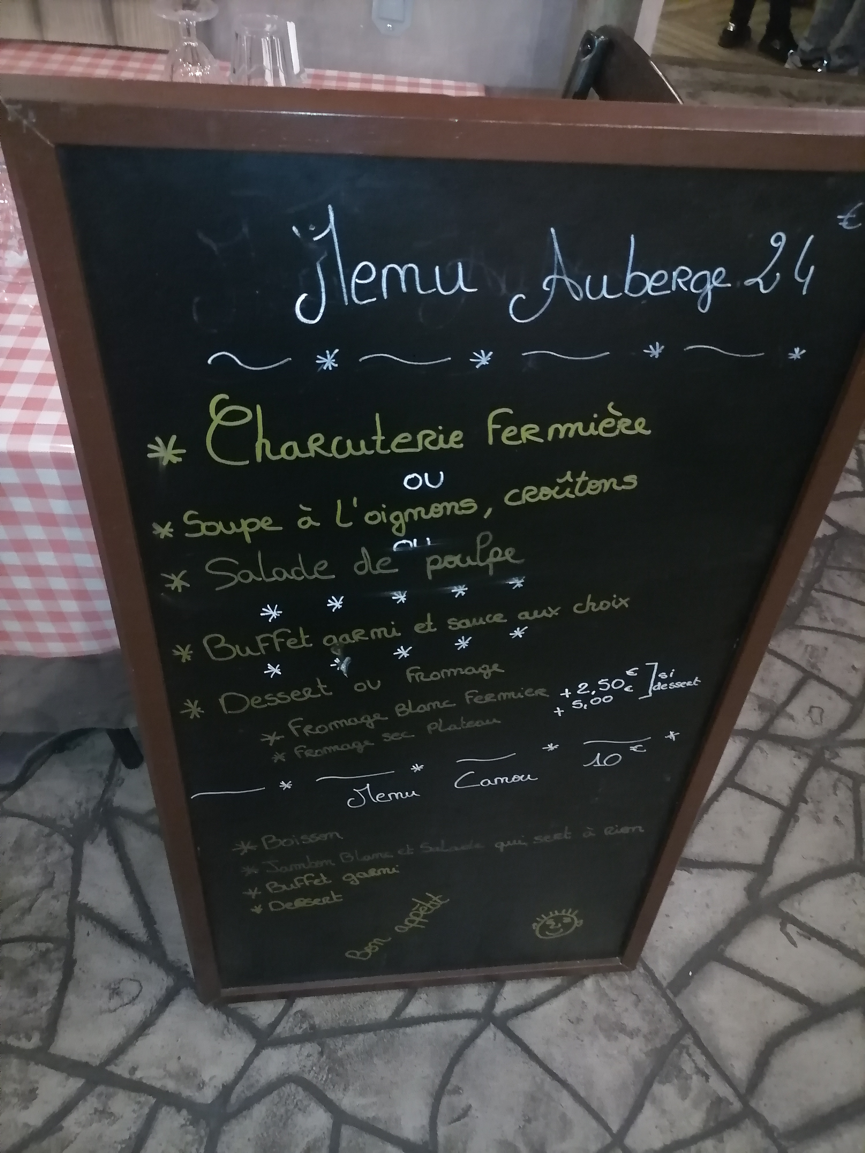Mon expérience est : -vraiment une adresse à découvrir et faire découvrir , une déco originale , -des produits locaux le point fort rare de nos jours avec toute cette industrialisation. autre point fort les portions si vous avez faim ça tombe bien , franchement un manquerait juste un petit verre de bienvenue ( un petit soft )pour se mettre à l'aise papoter avant de passer à table, oué je sais on va me dire que j'abuse 😂😉 , non sérieux foncés accueil au top , cuisto au top , l'auberge au top quoi .... Arrêter de manger vaut fast food a 10 euro et faites vous plaisir 😁, sinon pour ma part je vous à bientôt ,mais je viendrais plus tôt 😊.
