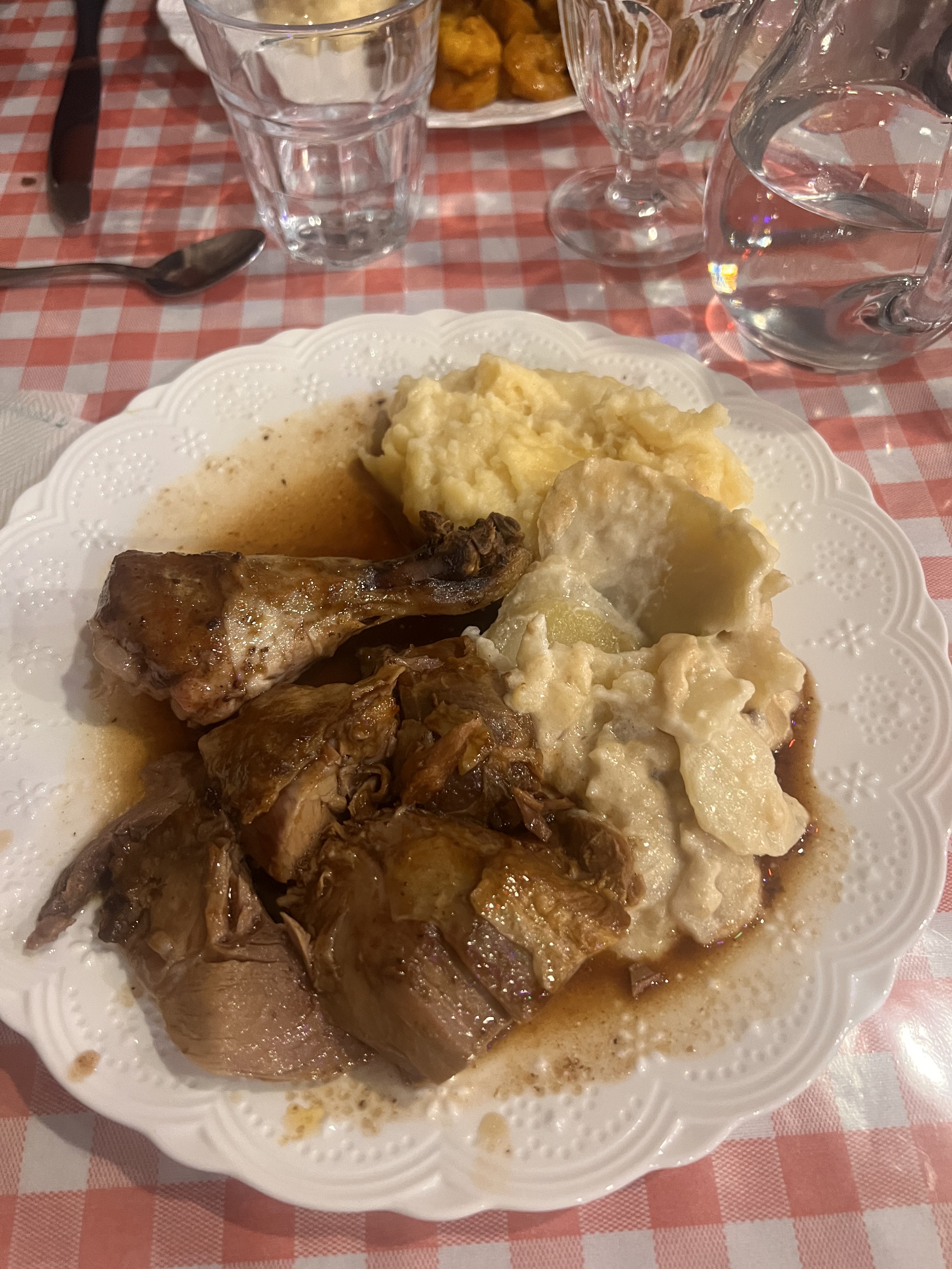 Viandes délicieuses, écrasé de pomme de terre à la fourme délicieux 🤤 Et serveuse et cuisinier très accueillant