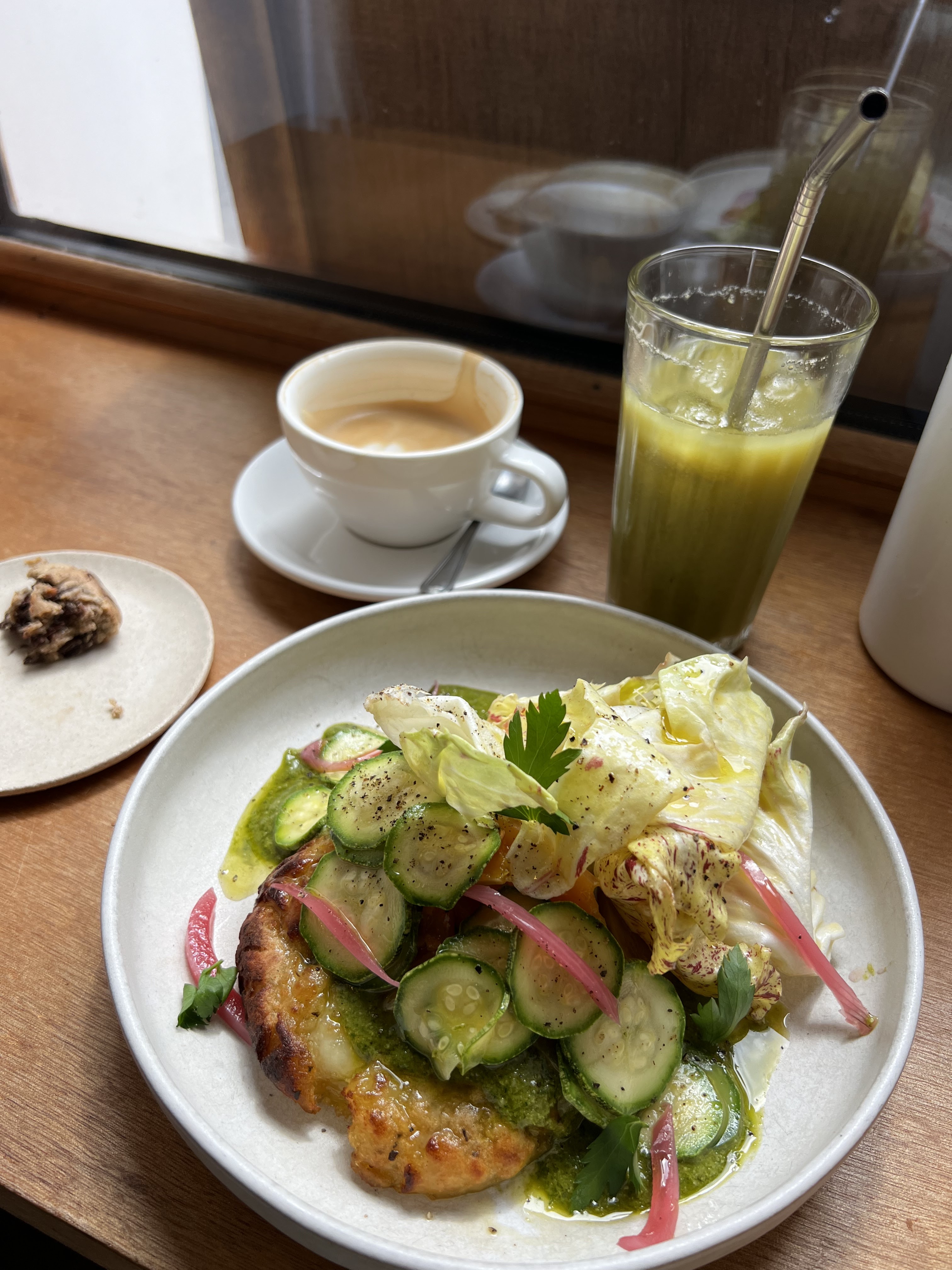 Super petit coffee shop, un cappuccino avoine délicieux avec du café du Guatemala signé KB coffee roasters. Plat du jour tout en simplicité mais surprenant avec un assaisonnement et des saveurs affirmés et subtiles, très réussi. Un cookie sarrasin chocolat plutôt goûteux malgré une texture légèrement sableuse. Service sympathique et endroit cosy. Tout ce qu’on recherche dans un coffee shop !
