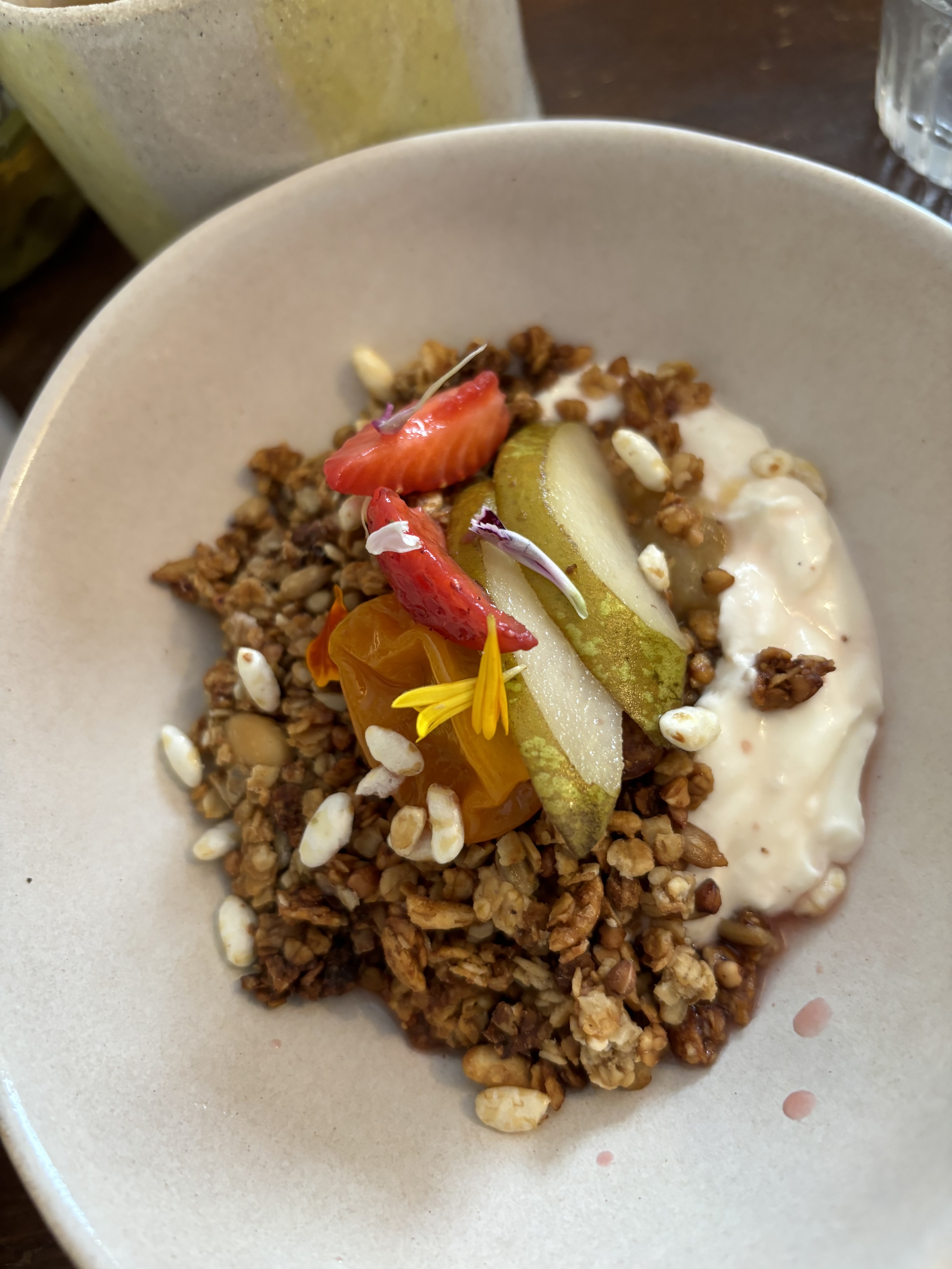 Un coffee shop chaleureux où la décoration brute et minimaliste vous met à l'aise. L'accueil est irréprochable : souriant, avenant & friendly ! La carte est très réduite mais vraiment, vraiment qualitative. Le plat principal et le sandwich changent chaque jour. J'y ai découvert le plus joli granola bowl de Paris, et clairement l'un des meilleurs (et j'en ai testé beaucoup). Généreux, coloré et goûteux. Un savant mélange de textures : noix, graines, flocons, compotée de fruits et fruits frais, agrémenté d'herbes et fleurs aromatiques. Les cookies sont à découvrir également, notamment celui au sarrasin dont j'ai adoré la texture sableuse et son côté torréfié. Un peu trop sucré à mon goût mais néanmoins très savoureux. On sent une véritable volonté de bien faire et de faire bon ! Un vrai plaisir de découvrir des adresses telles que celle-ci.