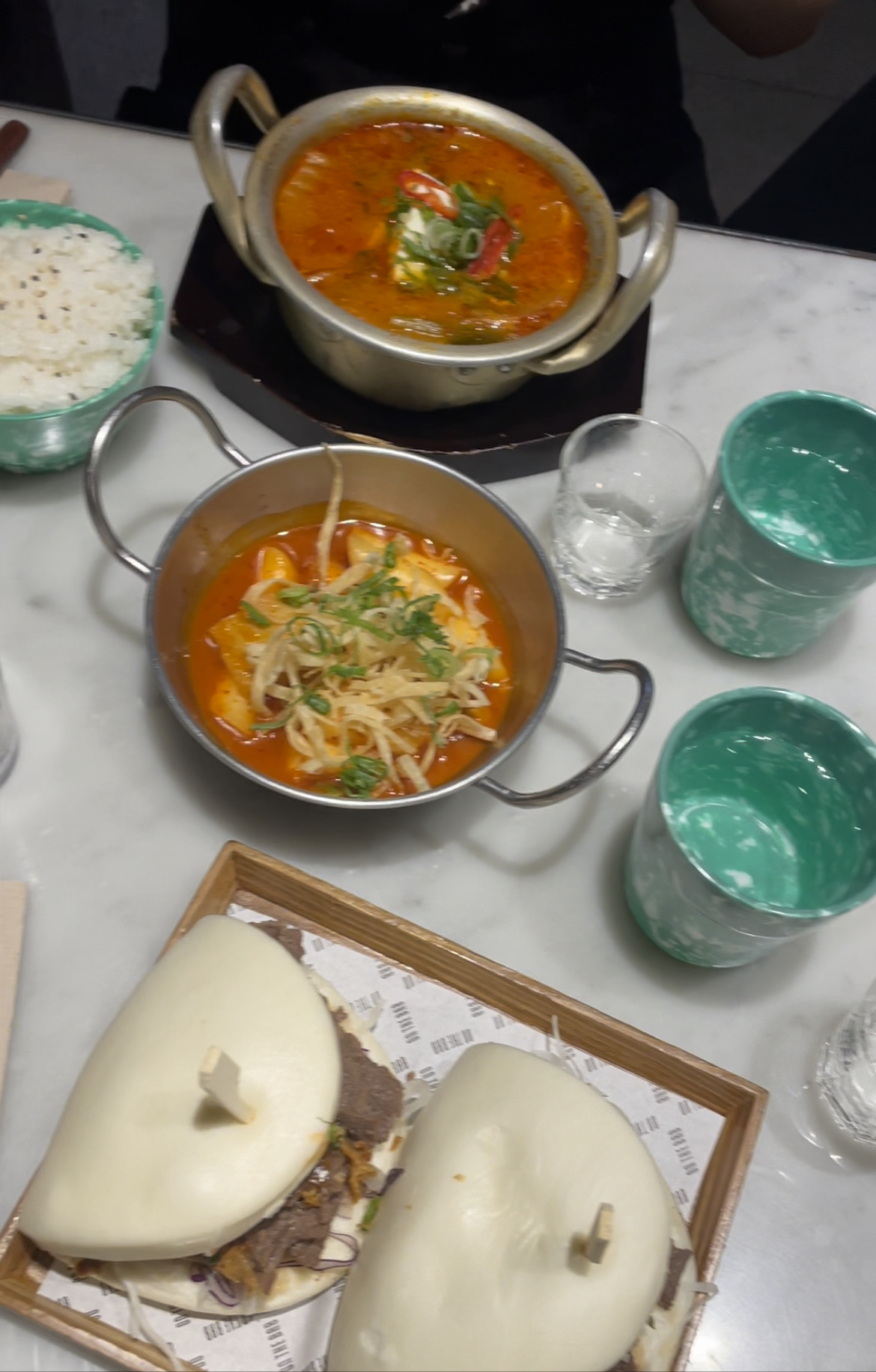 Je suis venue manger un lundi soir avec une amie : pas de places de libre… on a donc attendu 15/20min le temps qu’une table se libère. Une fois installées, salle bruyante, tables serrées, pas terrible pour un dîner tranquille. Je n’ai pas retrouvé un goût exceptionnel dans mes plats sauf pour les buns. Je suis un peu dégoûtée que pour un restaurant coréen ne puisse pas proposer de japchae. Dommage !