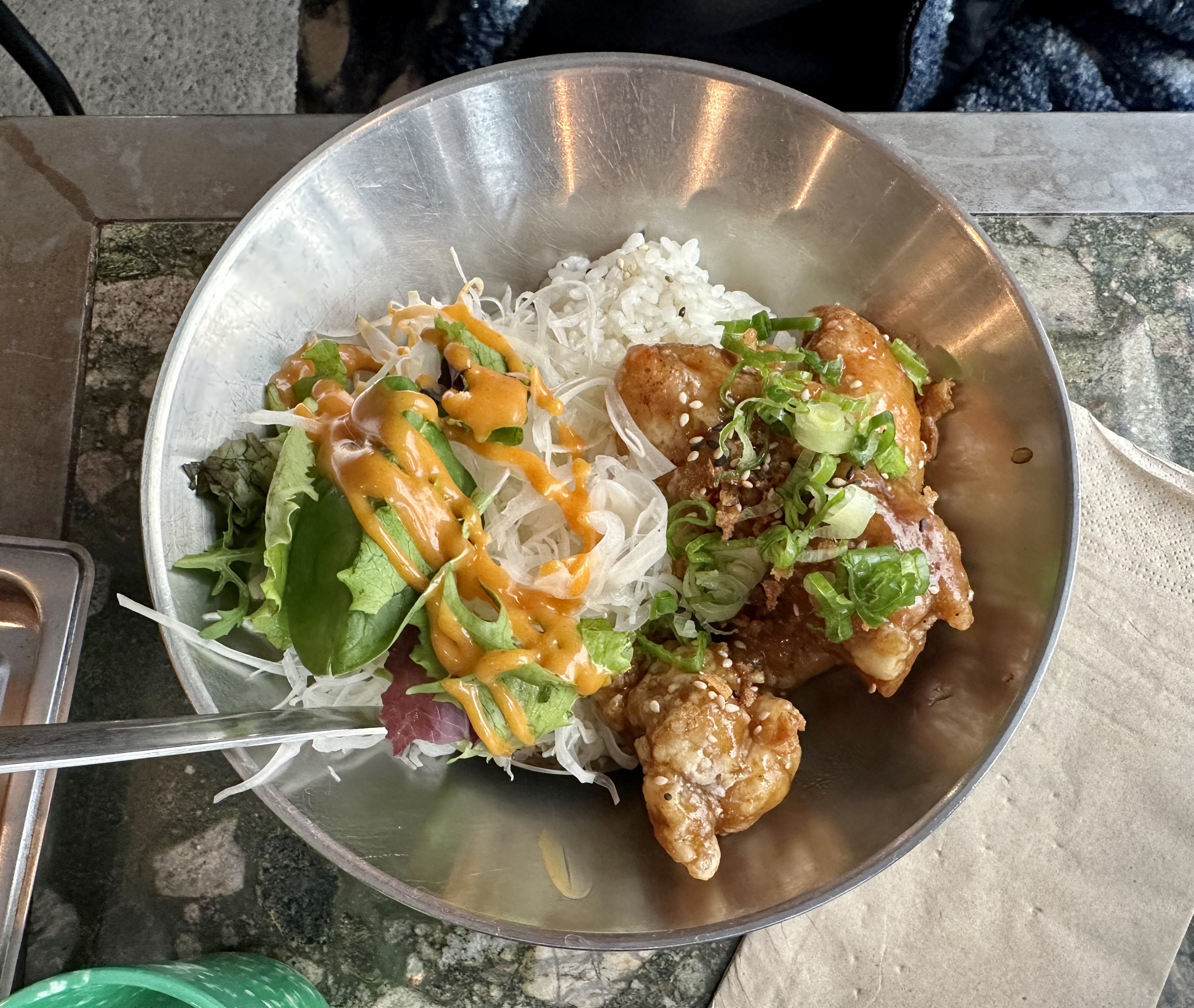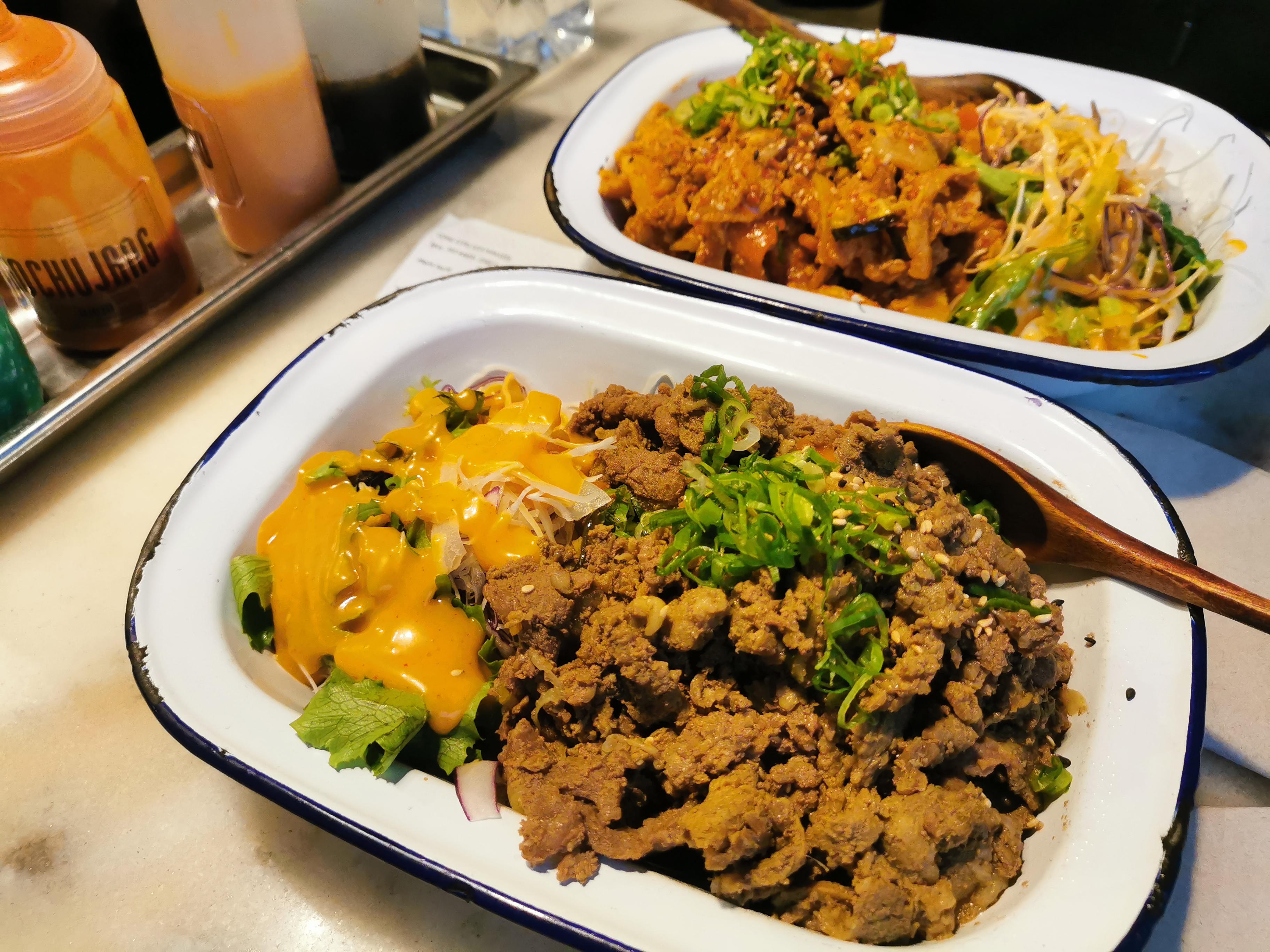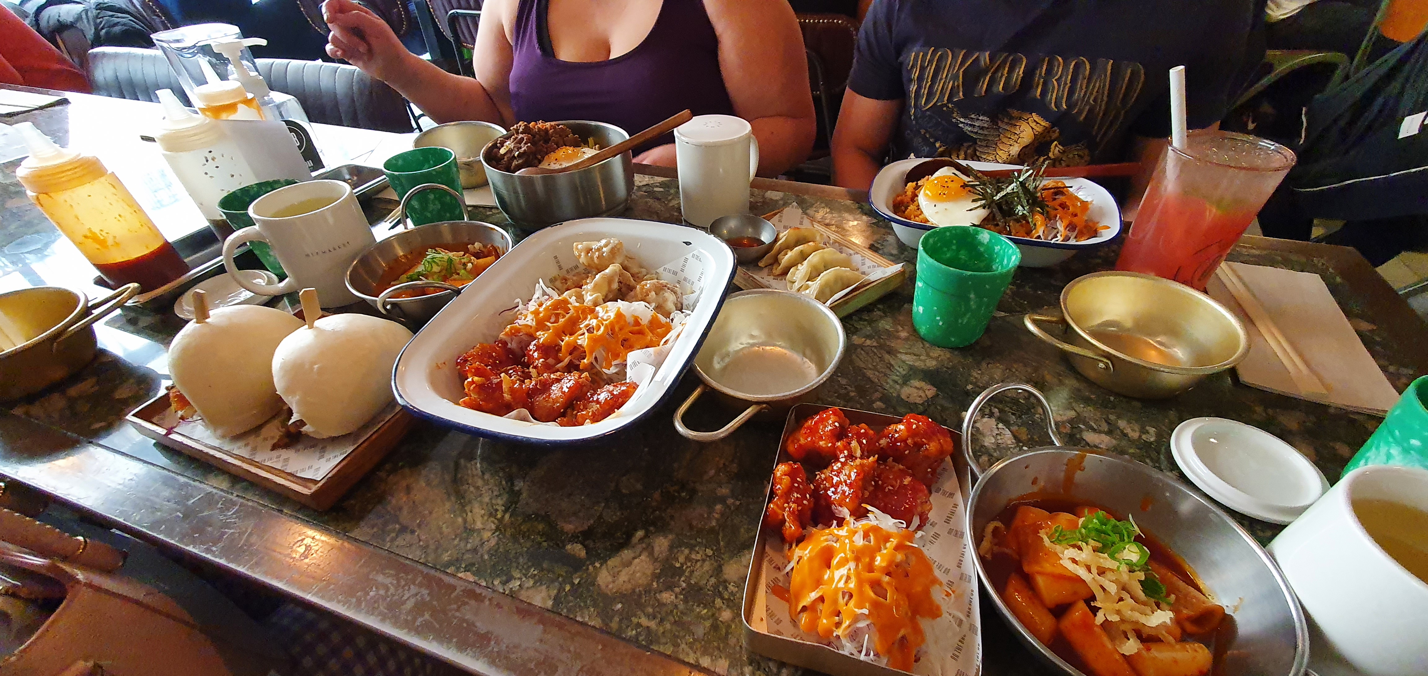 Une super adresse ! La preuve à notre arrivée jusqu'à la fin de notre repas il y avait la queue ! Je vous rassure nous avons eu à attendre seulement 10min pour manger, il n'y a pas trop d'attente non plus ! Nous avions pris deux bibimbap avec du poulet frit qui étaient délicieux ! Nous avions également pris deux mini corns dogs, ils étaient bons et du concombre au kimchi, un vrai délice ! Il y a même une petite terrasse pour manger dehors, ce que nous avons fait.