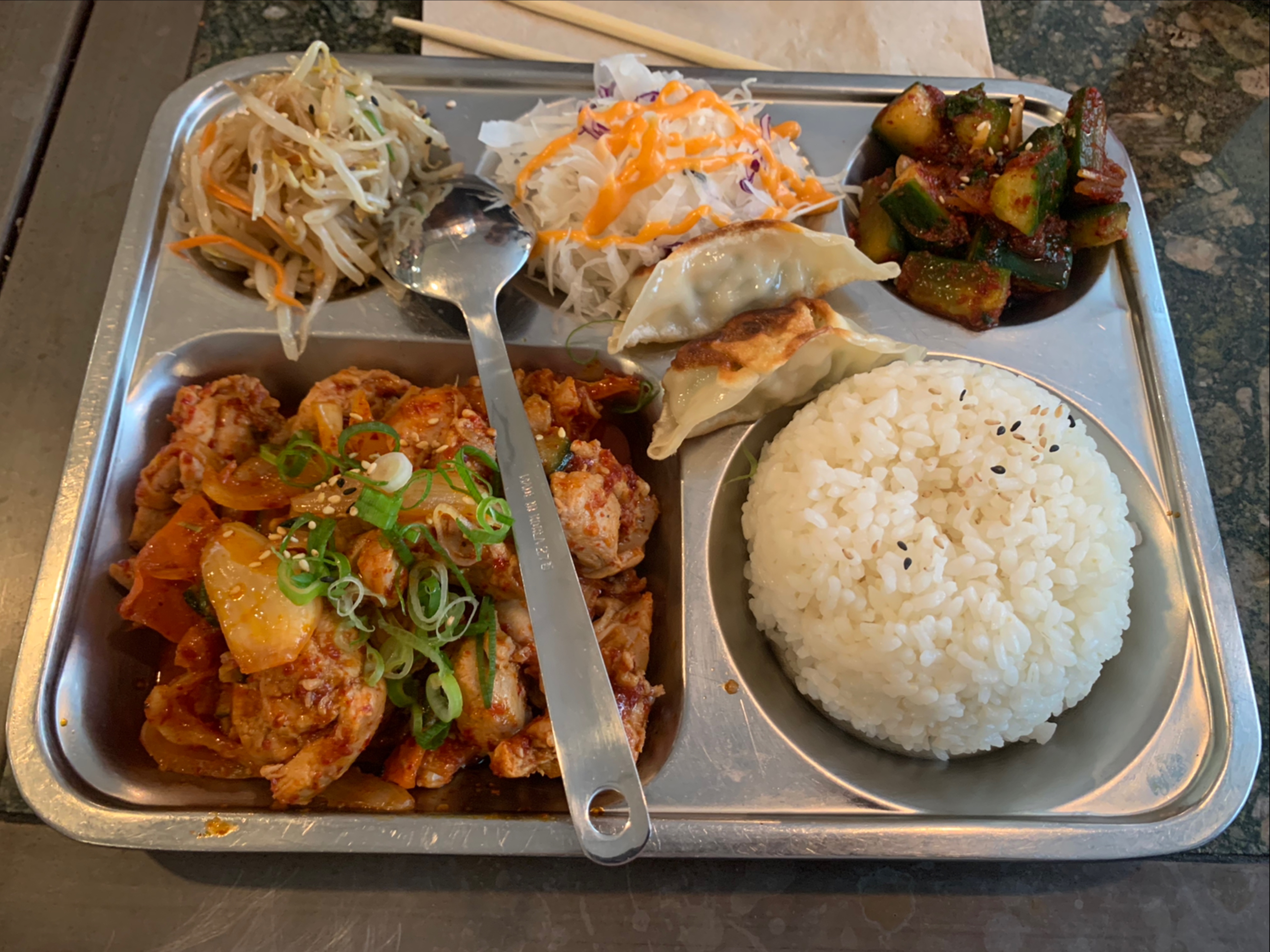 Excellente cuisine coréenne. Le poulet sauce légèrement pimentée était très bon. Les bibimbap au bœuf excellents. Mon amie a également opte pour l’option vegan et à adoré ! Je reviendrai