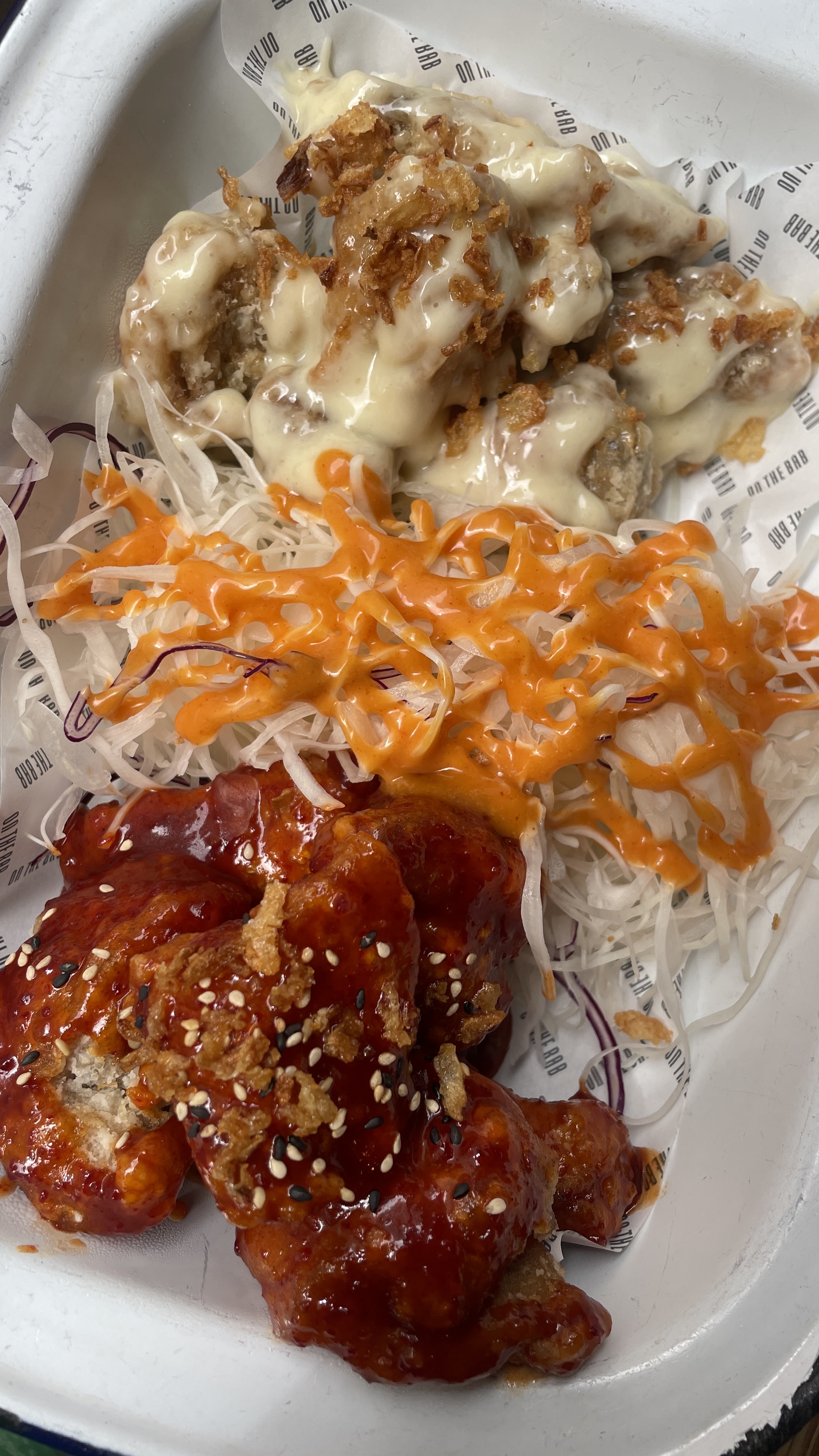 Incroyable resto Coréen. On a commandé des bao buns à toutes les saveurs et le fameux poulet frit qui est disponible en trois goûts différents, notamment la mention spéciale à la saveur mayo à l'ail. C'était une expérience culinaire incroyable, et je recommande fortement ce restaurant à tous les amateurs de cuisine asiatique. Cependant, il y avait une légère attente pour pouvoir manger sur place.