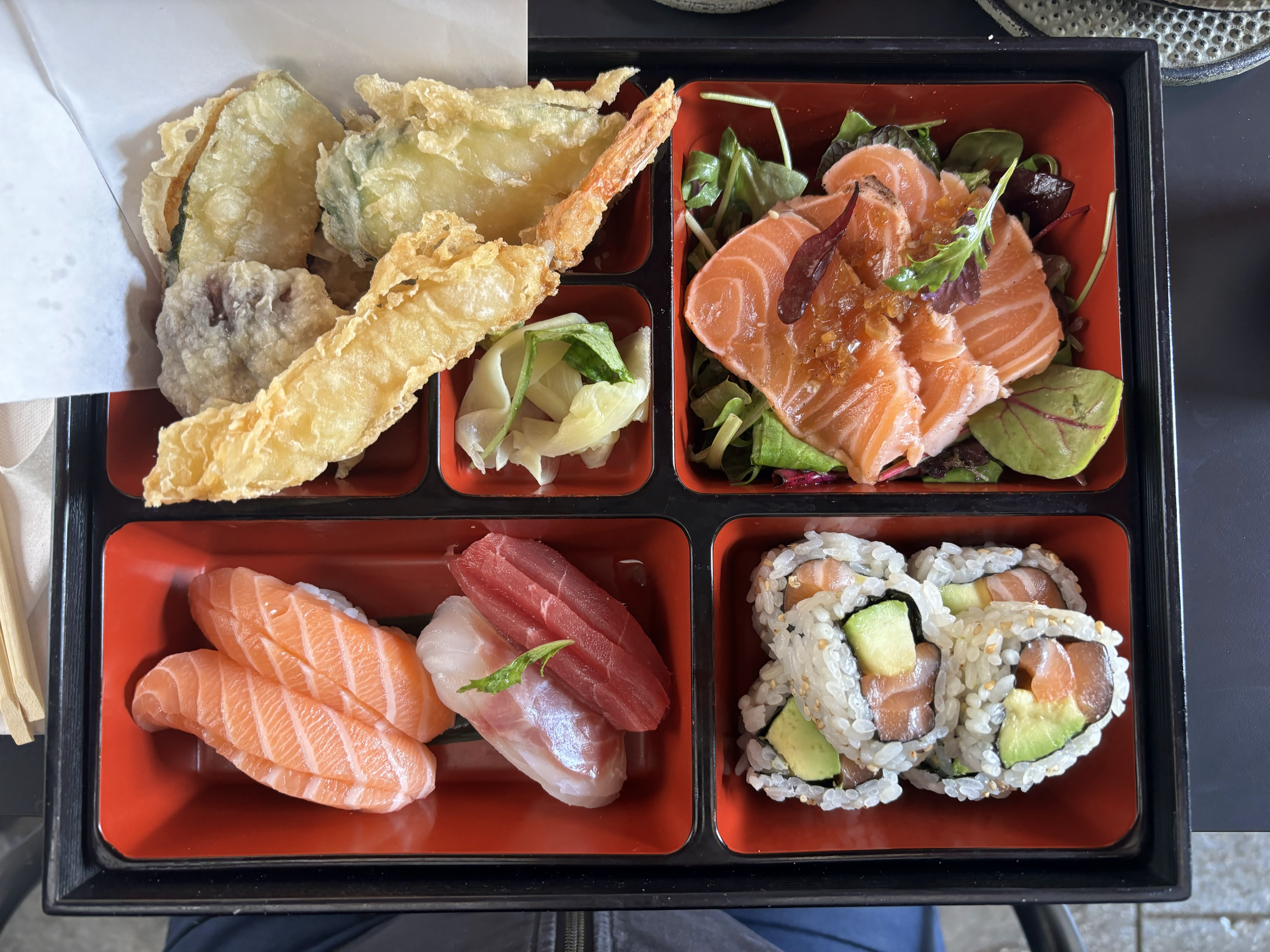 J'ai eu une délicieuse boîte à bento de sushi. La tempura était légère et croustillante, le California roll était excellent, les tranches de poisson du nigiri étaient fraîches et recouvraient même ces petites boulettes de riz (une rareté à Nice), et la salade de saumon était savoureuse. Le service est excellent et très attentionné.