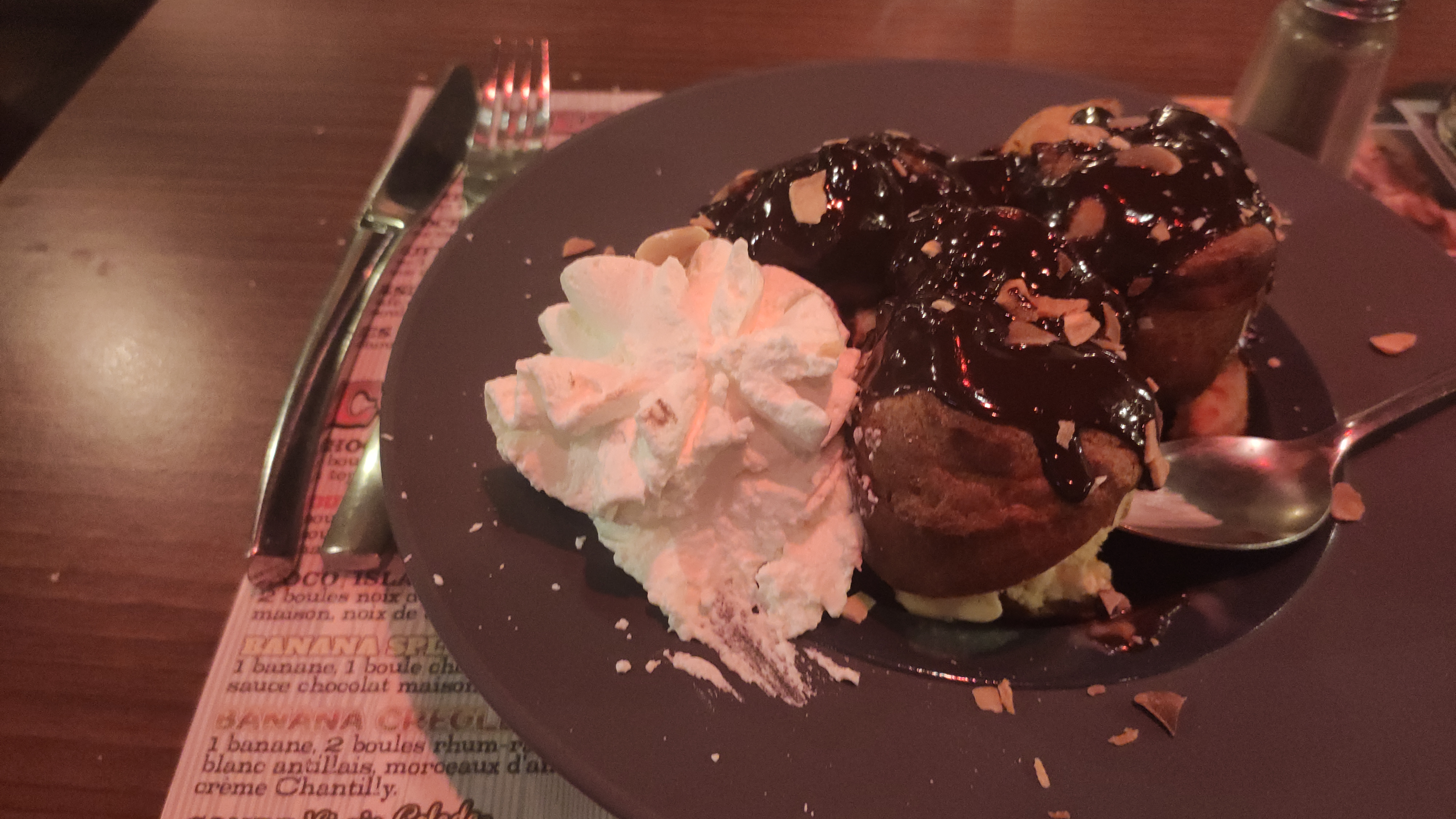 Très déçue du service . La serveuse a trempé son doigt dans mon dessert . Celui ci était plein de chantilly, ne savant pas quoi faire elle a sucer son doigt et m’a servi . Dégoûtée je ne l’ai pas mangé . Je ne conseille pas . Très déçue du service . Ce n’est plus ce que c’était je ne reviendrais pas . Un conseil changer les serveurs .