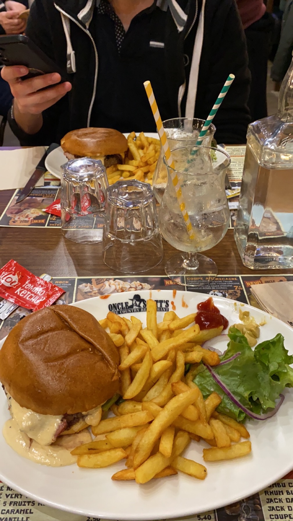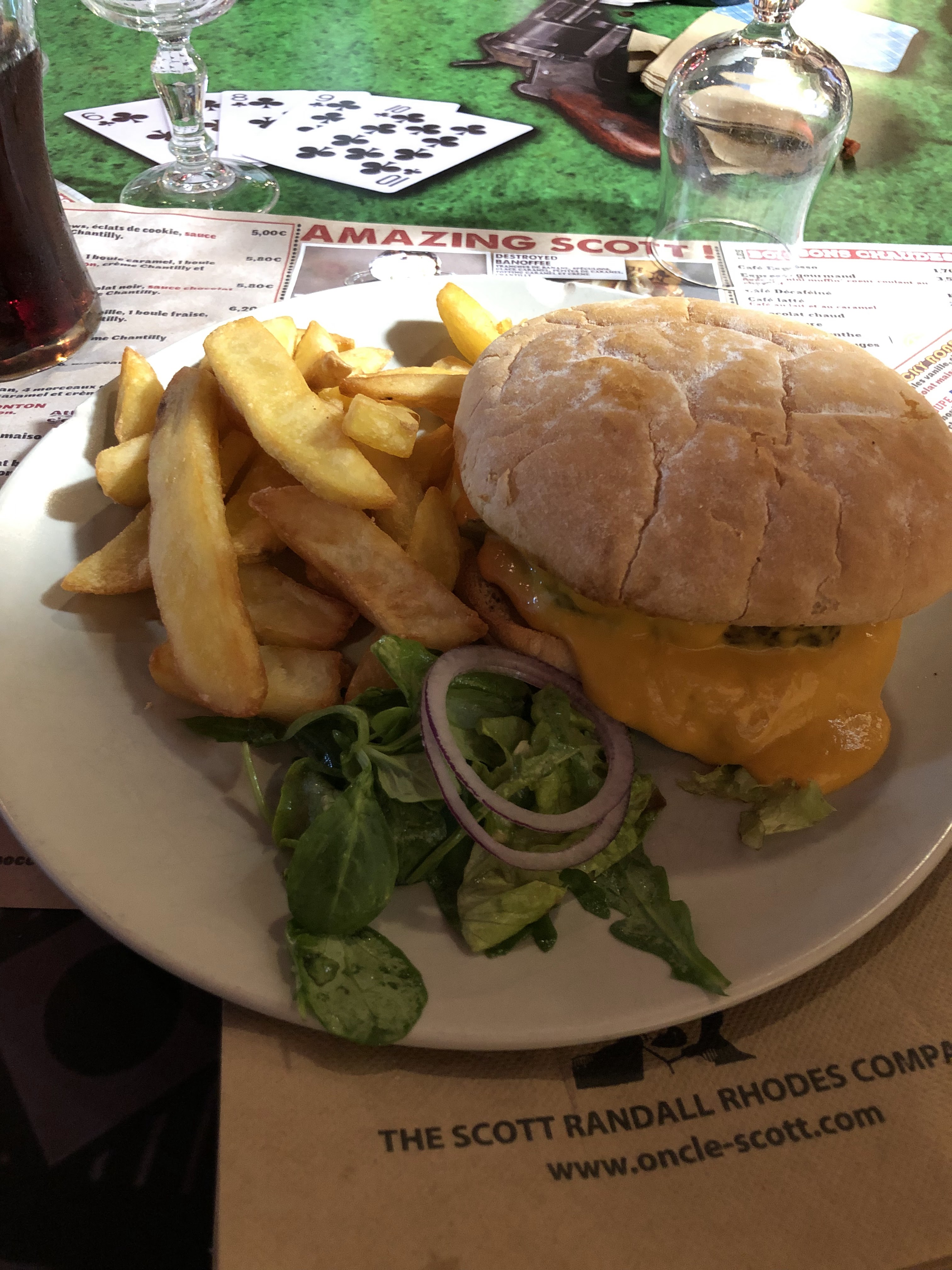J’ai plus de frites dans un sandwich kebab que ce que j’avais dans l’assiette de chez oncle scott. C’est très juste quand même….. ça fait un peu radin. Certaines assiettes font un peu cantine . Heureusement que c’est plus ou moins bon . Les serveuses ne sont pas pro et ne savent pas sourire. Quand un enfant est à table on lui donne les crayons , quand un client a finit de boire son verre on lui demande si il veut reprendre quelque chose et sa évite au client de réclamer directement au bar . Le mieux c’est de passer à la table du client au cours du repas et de lui demander si « tout se passe bien »? Je pense que vous avez pas mal de chose à revoir…. Samedi 30 septembre service du midi je précise