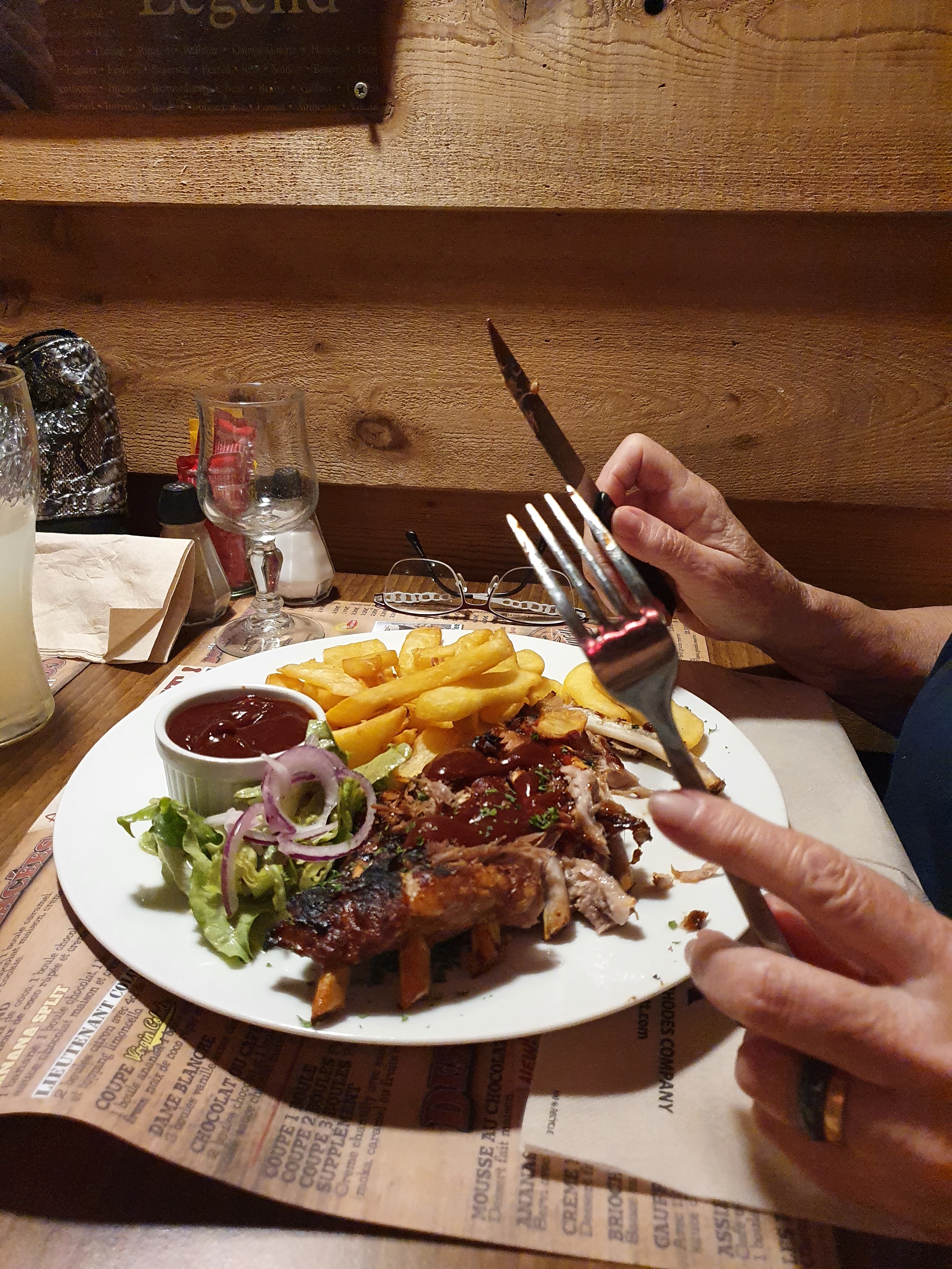 Ambiance et service sympa. Le poids du steak et des ribbs ne correspondaient clairement pas à la carte, 450 grammes sur la carte mais 270 dans l'assiette (pesé par le serveur) Après réclamation et discussion un supplément a été servit