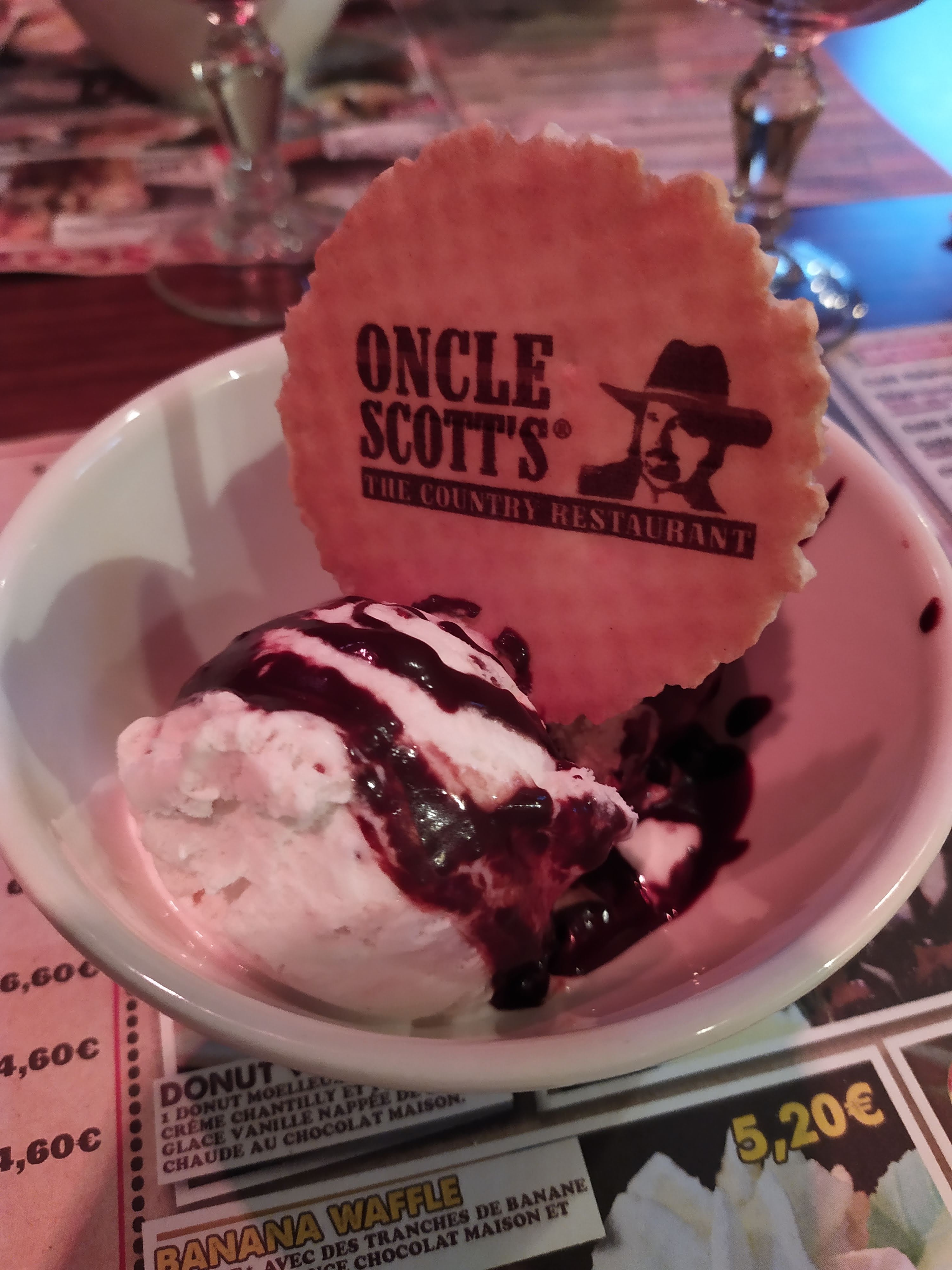 Accueil vraiment sympathique, personnel à l'écoute si demande particulière. Repas extrêmement bon ! Assiettes très bien présentées qui donnent envie de manger. Desserts supers bon prix abordable niveau qualité/prix. Résultat : A la prochaine Oncle Scott's c'est avec plaisir que je reviendrai ici. Je recommande !