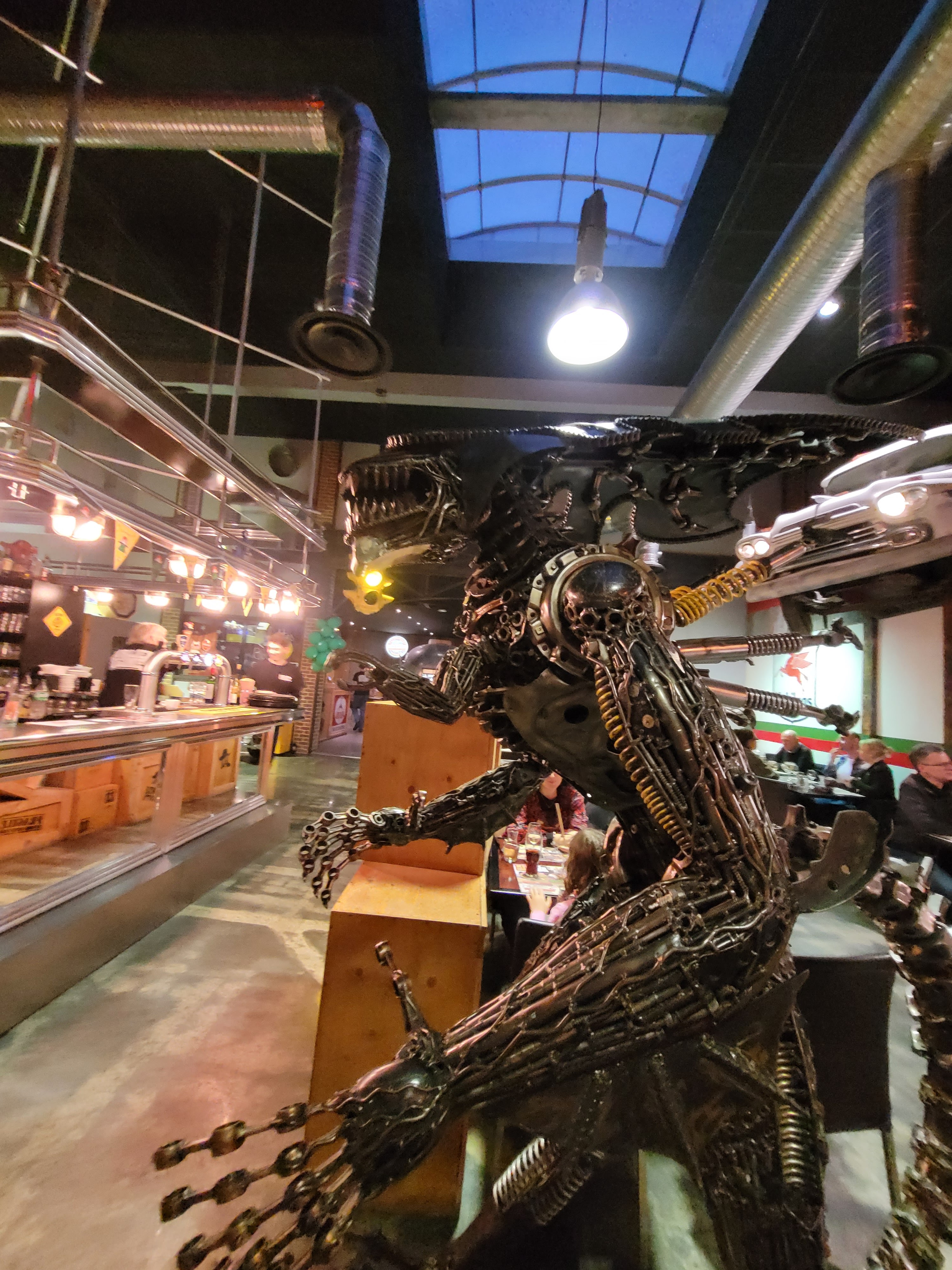 Le cadre est carrément original, j'ai beaucoup aimé les sculptures mécaniques, notamment la reine Alien à l'entrée. L'accueil était chaleureux et convivial, la serveuse vraiment sympa... Le service était relativement rapide, les plats bien présentés et vraiment bons. Je recommande ;)