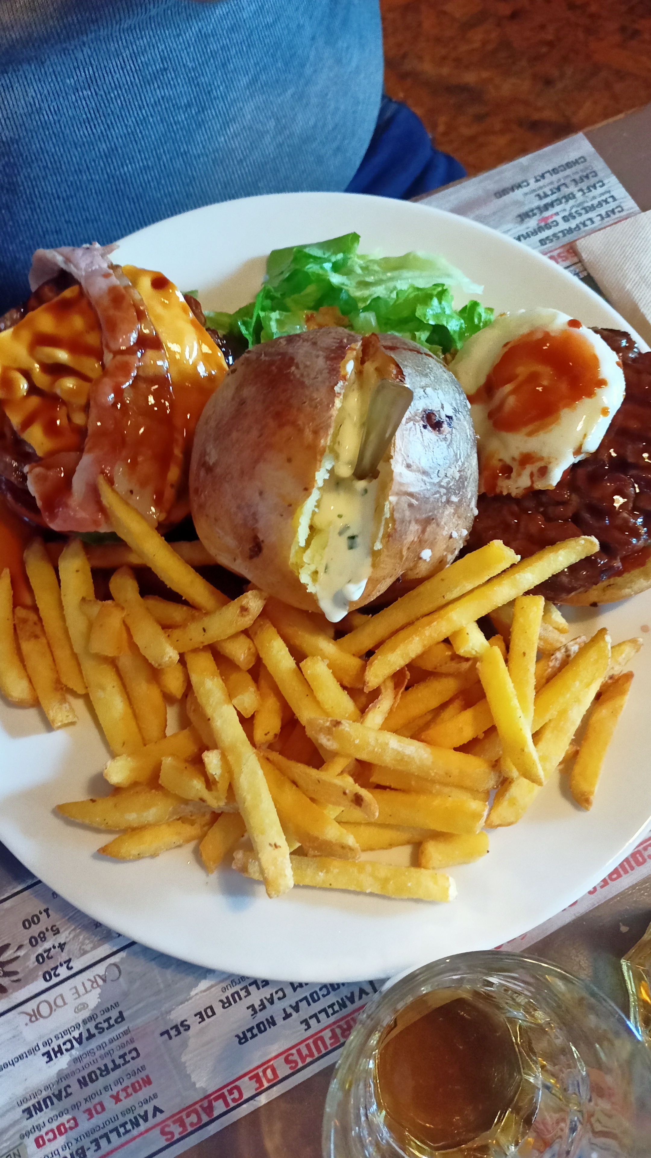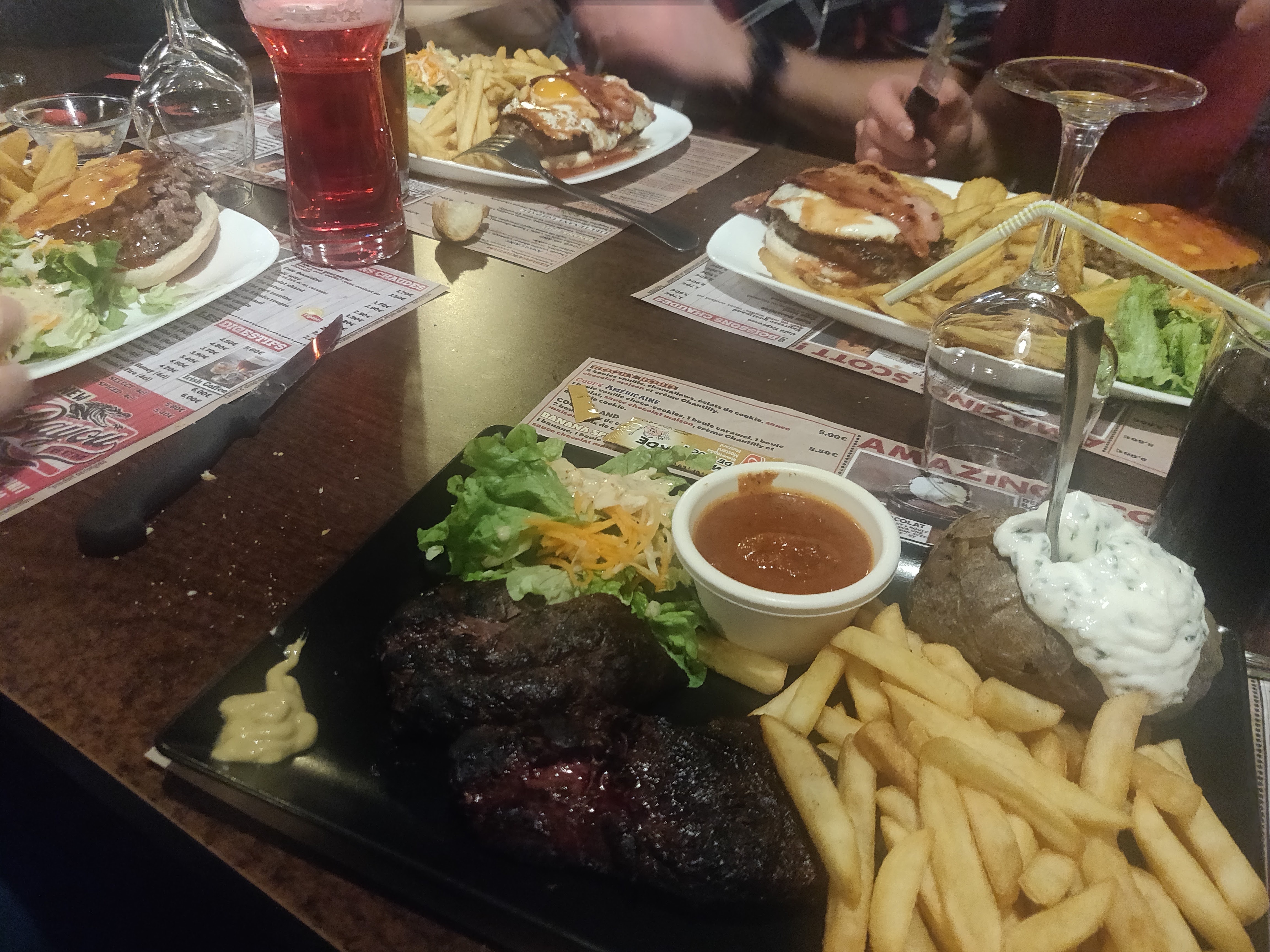 Une fois la porte d'entrée passée vous êtes dans un autre monde : le far West 😁 Super décors qui permet de s'évader, accueil sympa et beaucoup de choix sur la carte, des burgers à gogo, de la bonne viande, du poulet, des travers de porc, des salades garnies, fish & chips, etc etc il y en a pour tous les goûts. Un conseil : réservez car c'est souvent complet 😉