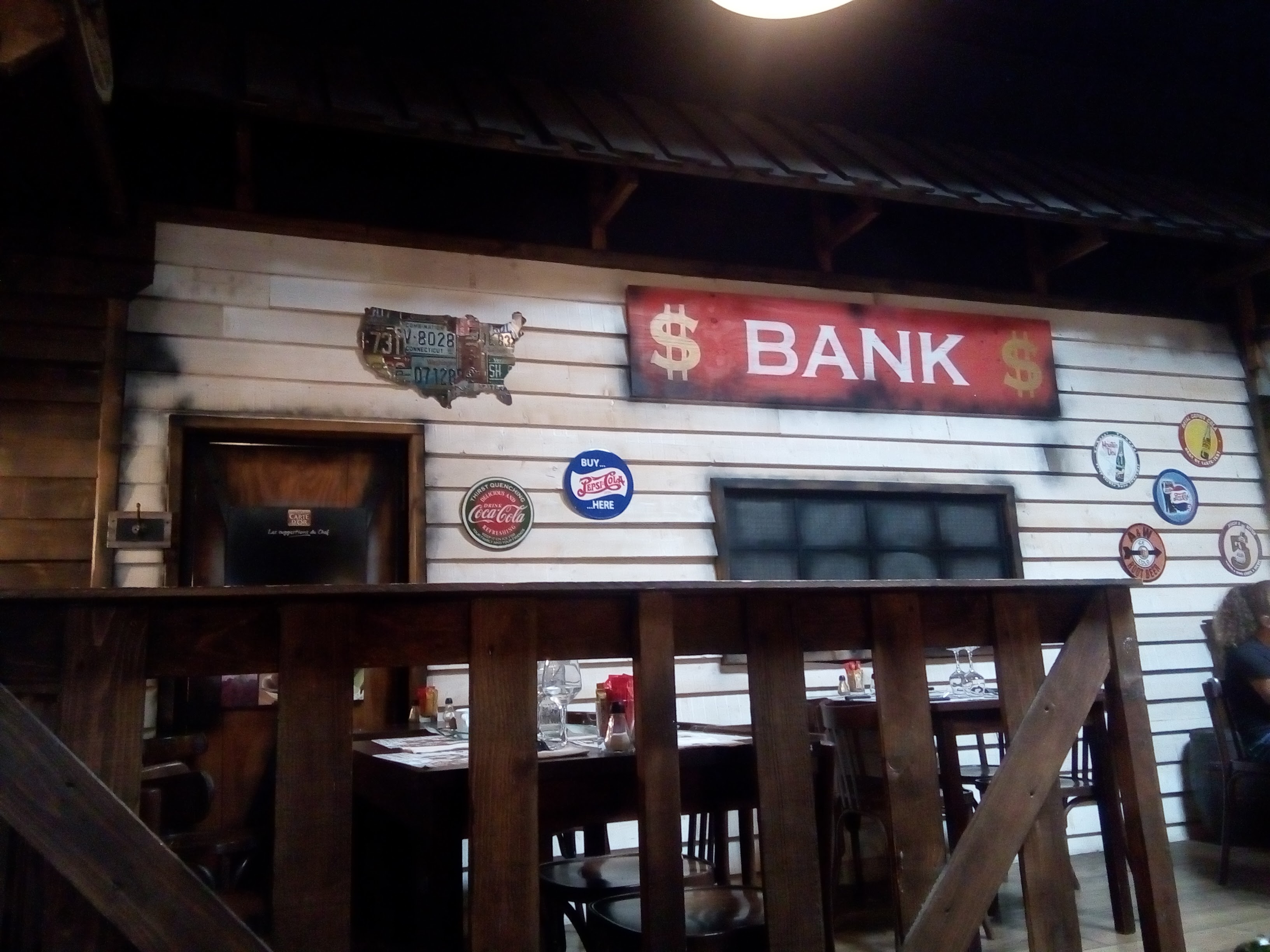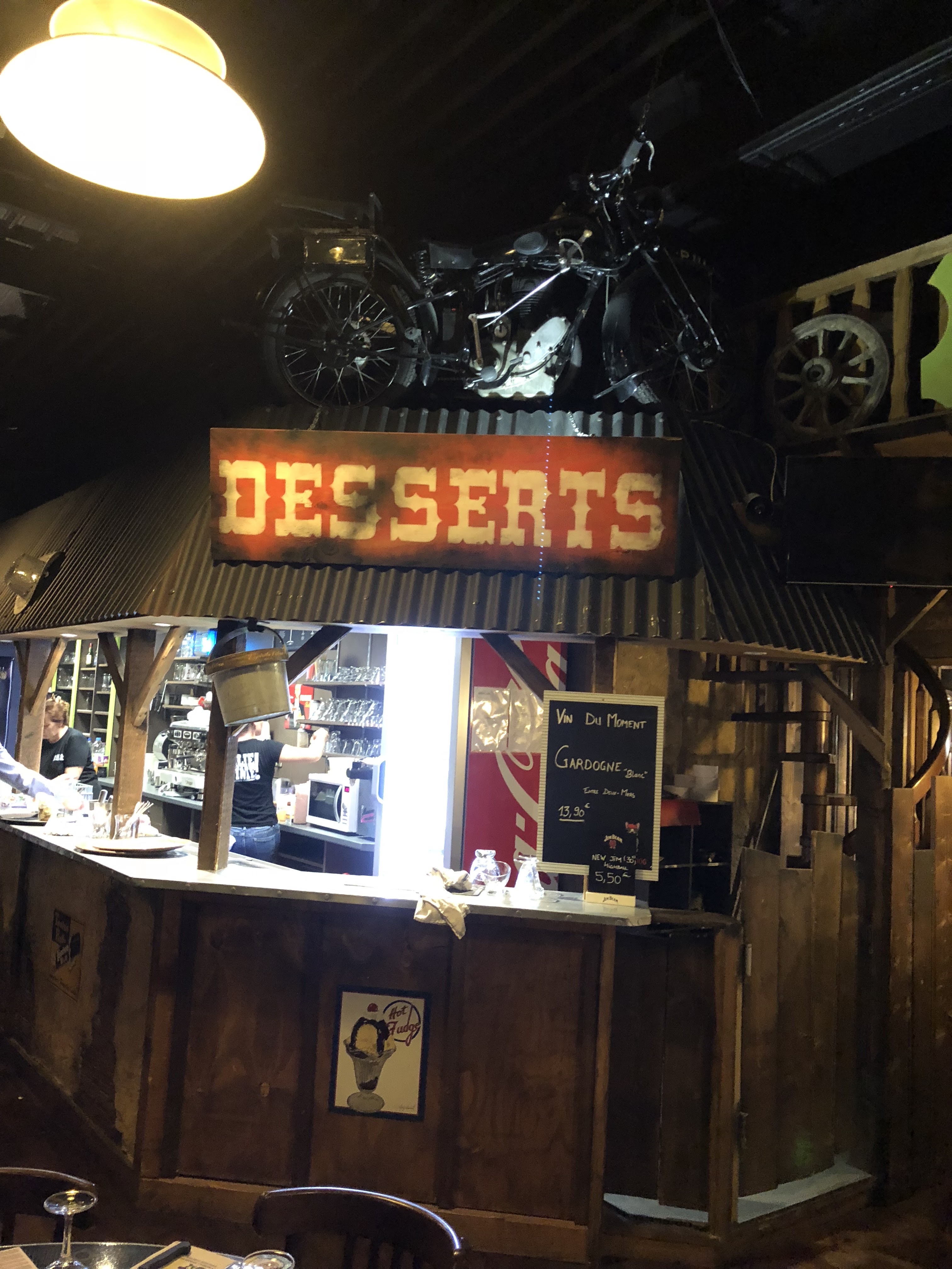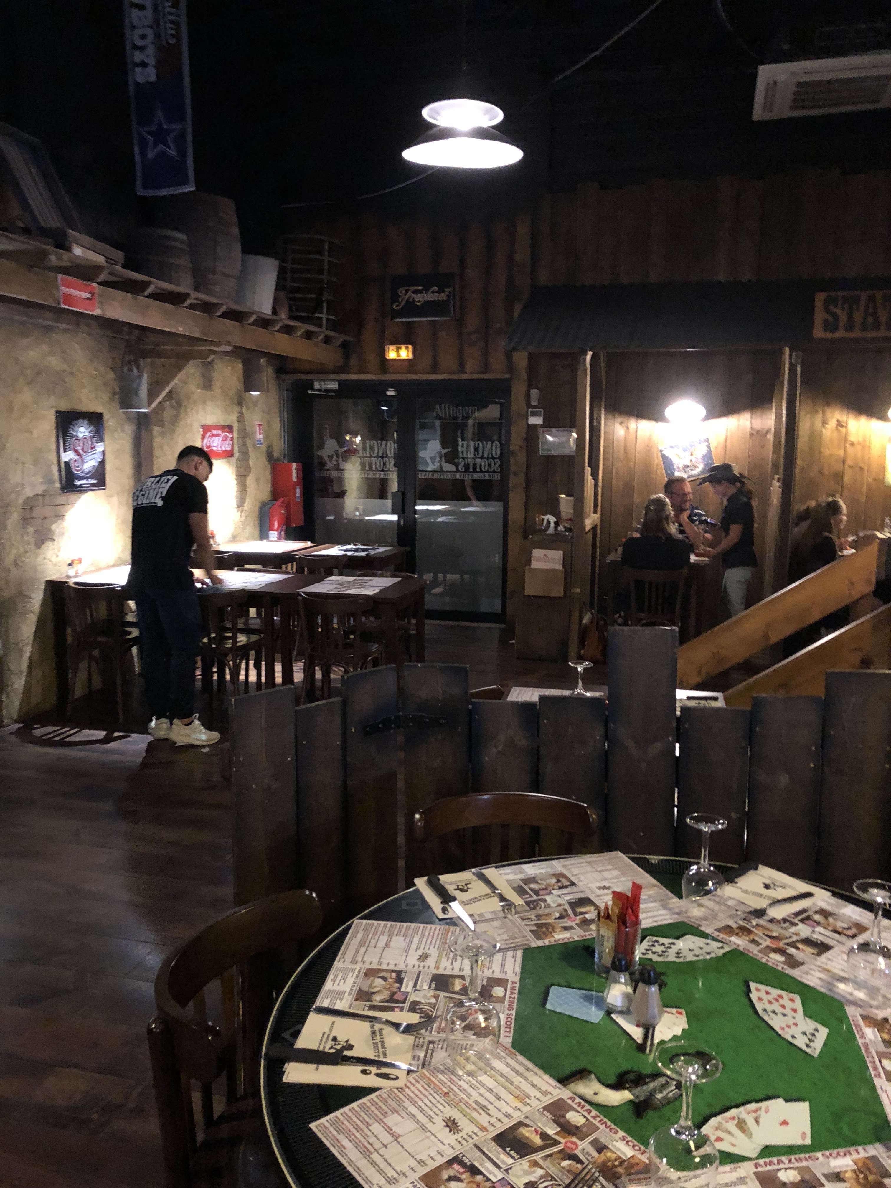J’ai mangé 2 fois là bas adore la décoration western sait super agréable de manger la bas je vous le conseil j’ai été avec mon chéri manger en tête à tête il faut réserve car sinon pas possible de manger sur place