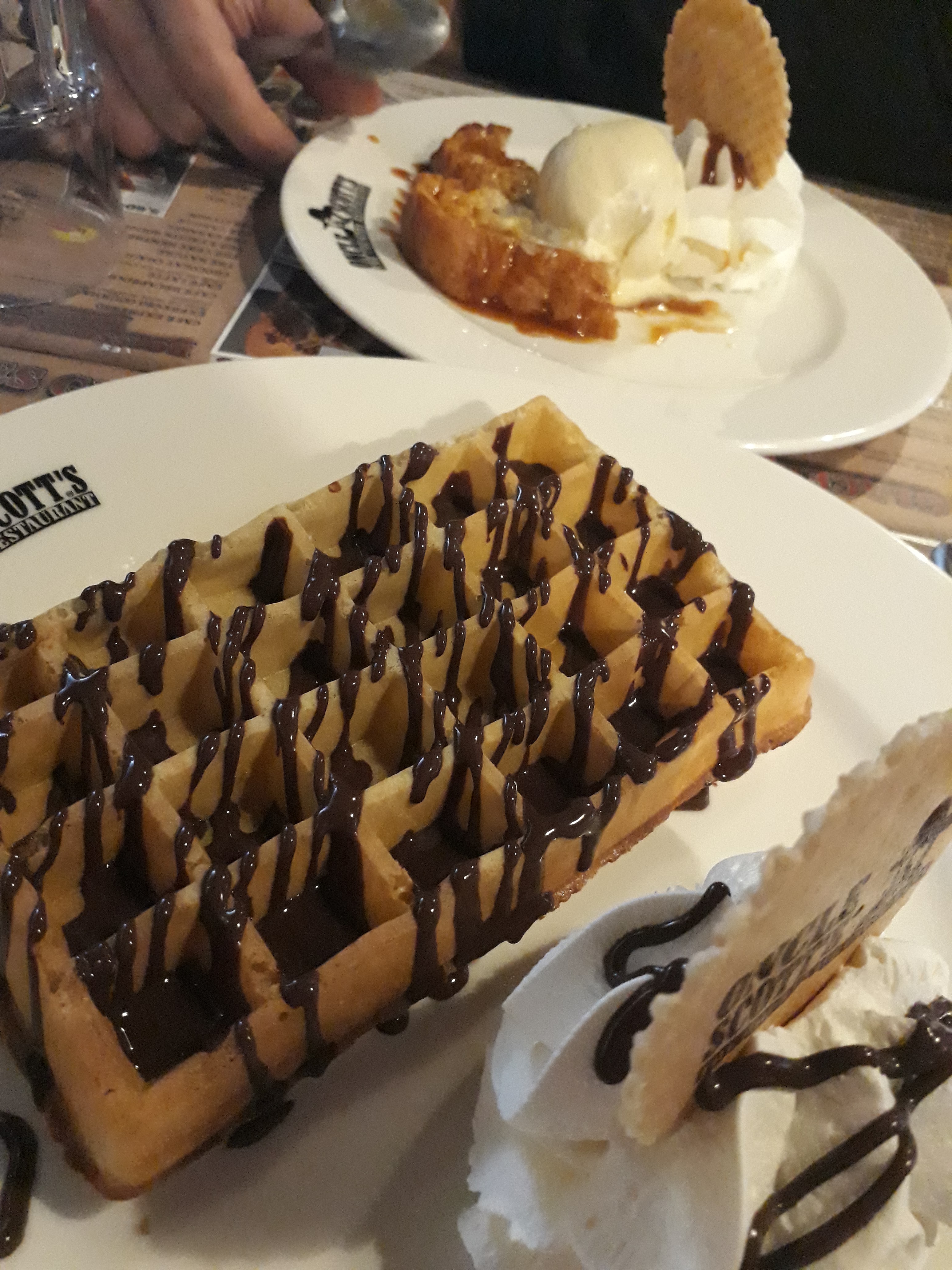 Service assez rapide, serveurs très polis et au ptit soin et à l'écoute lors des commandes si il y a un regime particulier. Pas trop d'option pour les vegetariens à part les salades en demandant d'enlever le poulet. Les repas sont copieux et bons. Dommage que les tables soient dans le passage principal, ce n'est pas très calme pour déjeuner. Globalement je recommande Oncle Scott's 😊👍.