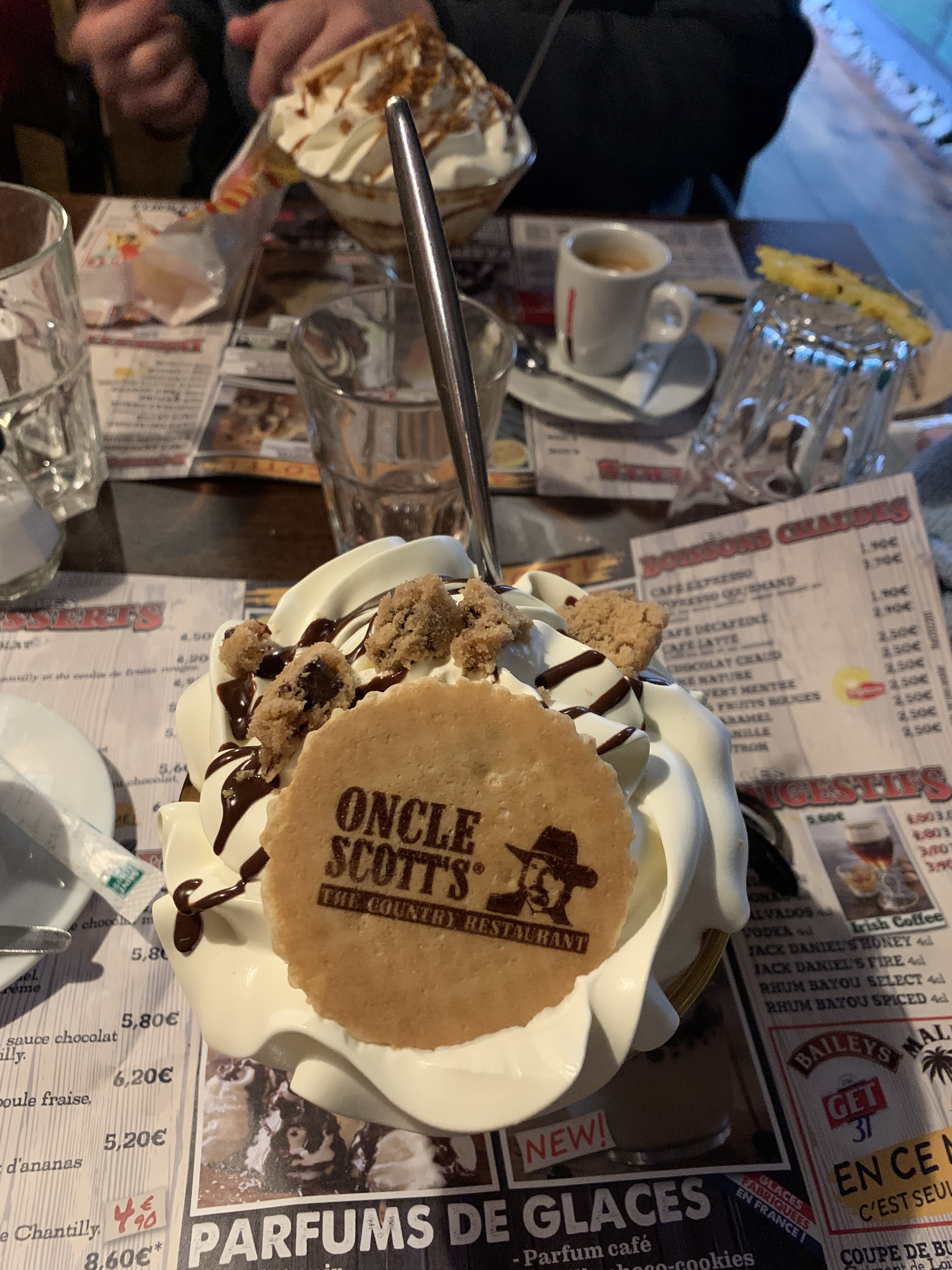 J'aime beaucoup la franchise Oncle Scott's depuis sa découverte. La décoration est vraiment sympa, il y a du monde, il vaut donc mieux réserver. La carte est relativement variée, lors de ma venue j'ai été surpris de voir que même la mayonnaise était faite maison, le seul reproche c'est qu'elle manquait d'assaisonnement. En tout cas, rien à dire sur le burger qui sort vraiment du lot. La carte des glaces c'est pareil, j'aime beaucoup, bien qu'il pourrait y avoir plus de choix, la sauce chocolat est faite maison, tout comme la chantilly, par contre comme pour la mayonnaise, la crème fouettée était un peu fade ce jour là. Histoire de finir sur un point négatif, je trouve dommage qu'il n'y ait pas de milkshake sur la carte des desserts.