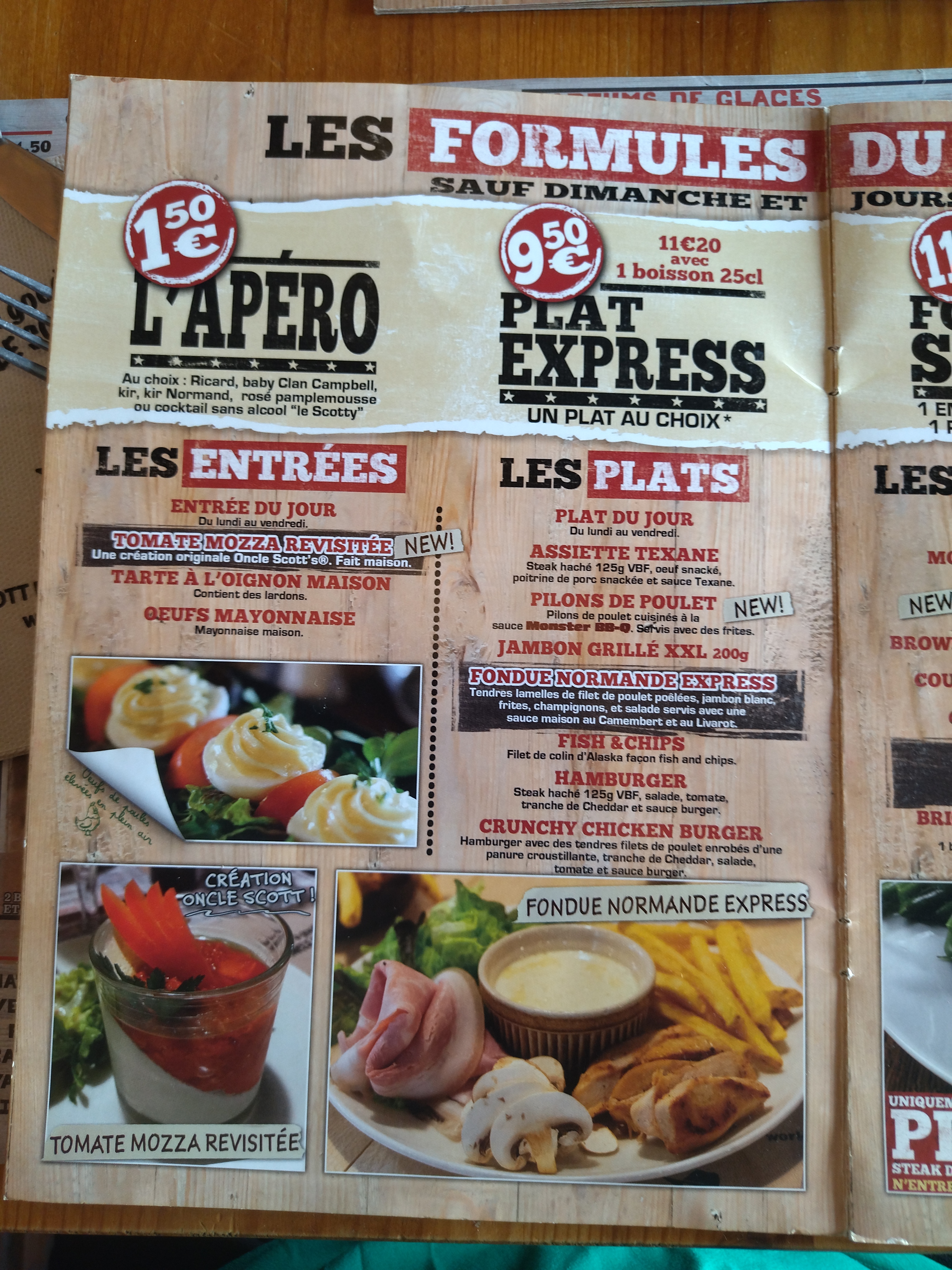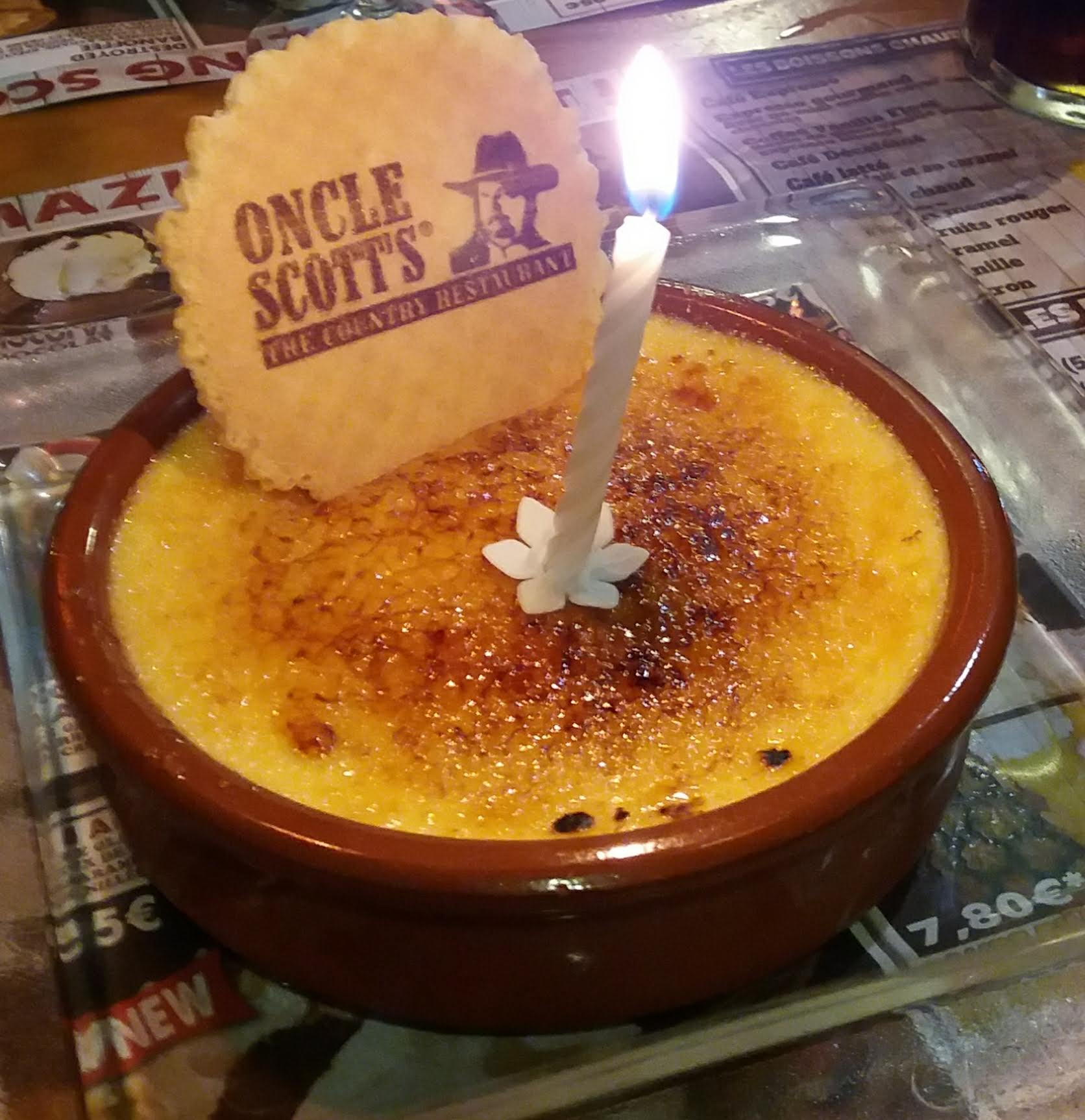 Nous sommes venu à 4 le 30 décembre manger chez Oncle Scott. Nous sommes ravi d'avoir découvert cette enseigne! Beaucoup de points forts dans ce restaurant: - D'abord le personnel: Les plats arrivent vite et avec le sourire. Les serveurs sont très sympathiques et disponibles. Ils n'hésitent pas à prendre de leur temps pour écouter nos demandes et prendre une photo. - Le cadre est hors du commun puisque dans l'ambiance du far west. Ca donne au restaurant un coté chaleureux et convivial et très raccord avec la carte proposée - Comme c'est un restaurant, il faut parler de la carte... Il y en a pour tous les gouts! Nous avons testé les viandes. Tres bon! Les assiettes sont bonnes et copieuses. Nous reviendrons tester les burgers qui donnent envie. Il y a toute sortes de plats et de desserts. Le rapport qualité prix est très bon. J'ai lu ici des avis 1 étoile... Je dois dire que je ne les comprends pas... Ca n'est pas du tout ce que j'ai ce jour la... Surtout concernant le personnel! On a trouvé qu'une des viandes n'était pas assez cuite. On en a parlé au serveur et le problème a été résolu très vite. Je pense que si il y a un problème il faut juste en parler aux serveurs... Parce qu'ils semblent très impliqué dans la satisfaction de leurs clients. En conclusion, nous avons découvert tard cette enseigne à cause de leur slogan oubliez votre régime. Nous avons imaginé que la cuisine serait peut être grasse. Nous nous sommes bien trompé car j'imagine que la devise veut dire que les assiette sont copieuse et effectivement, nous sommes repartis sans faim. La cuisine est très bonne, le personnel très sympathique, nous reviendrons!