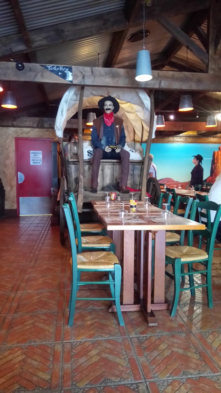 Quelle belle surprise ! Sur la route des vacances, nous avons vu cette annonce sur le parking du Leclerc de Dinan avec un menu à 9,90 €. Nous partonc donc dans ce restaurant ambiance Far-west dans l’expectative. Le rapport qualité-prix de ce restaurant est IM-BAT-TABLE ! Apéritif à un euro ! Cacahuètes gratuites ! Et des menus complets qui tiennent leurs engagements ! Il est écrit sur la façade « oublie ton régime » : on veut bien le croire car les plats sont généreux ! Par ailleurs, les propriétaires sont sympathiques et ont toujours le bon mot pour nous faire rigoler. Je recommande chaudement.
