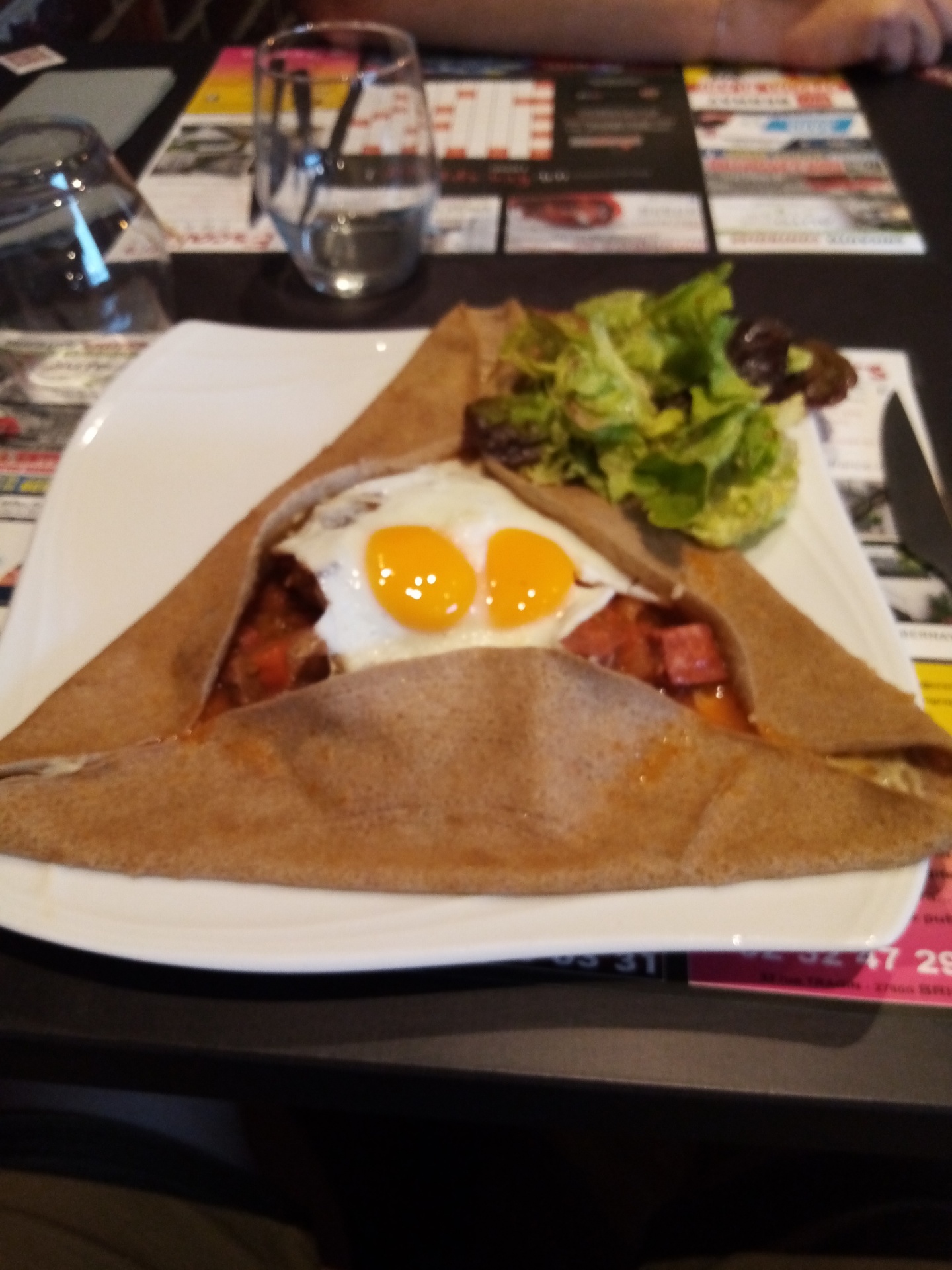 Salade copieuse, crêpe au chocolat coco délicieuse. Serveuse qui tâtonne. Patron très agréable