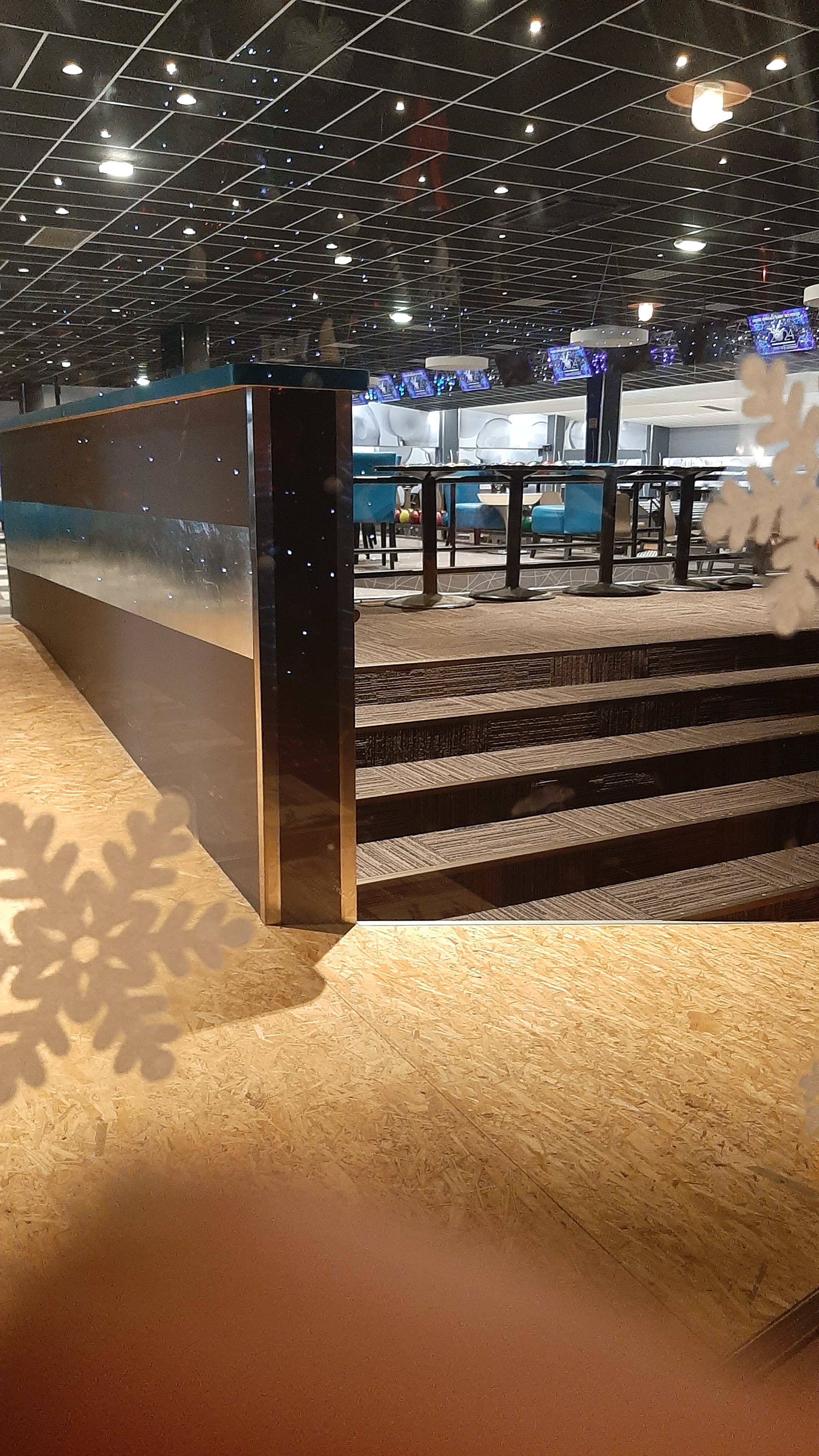 Sur le repas c'était franchement pas terrible, pour ma part j'ai juste aimé le dessert, une tarte tatin. Même ressenti sur tout le groupe que nous étions. C'est dommage, car le cadre est plutôt sympa et accolé au bowling. Pour le service, ça a été, et animation par un magicien 👍🏻.