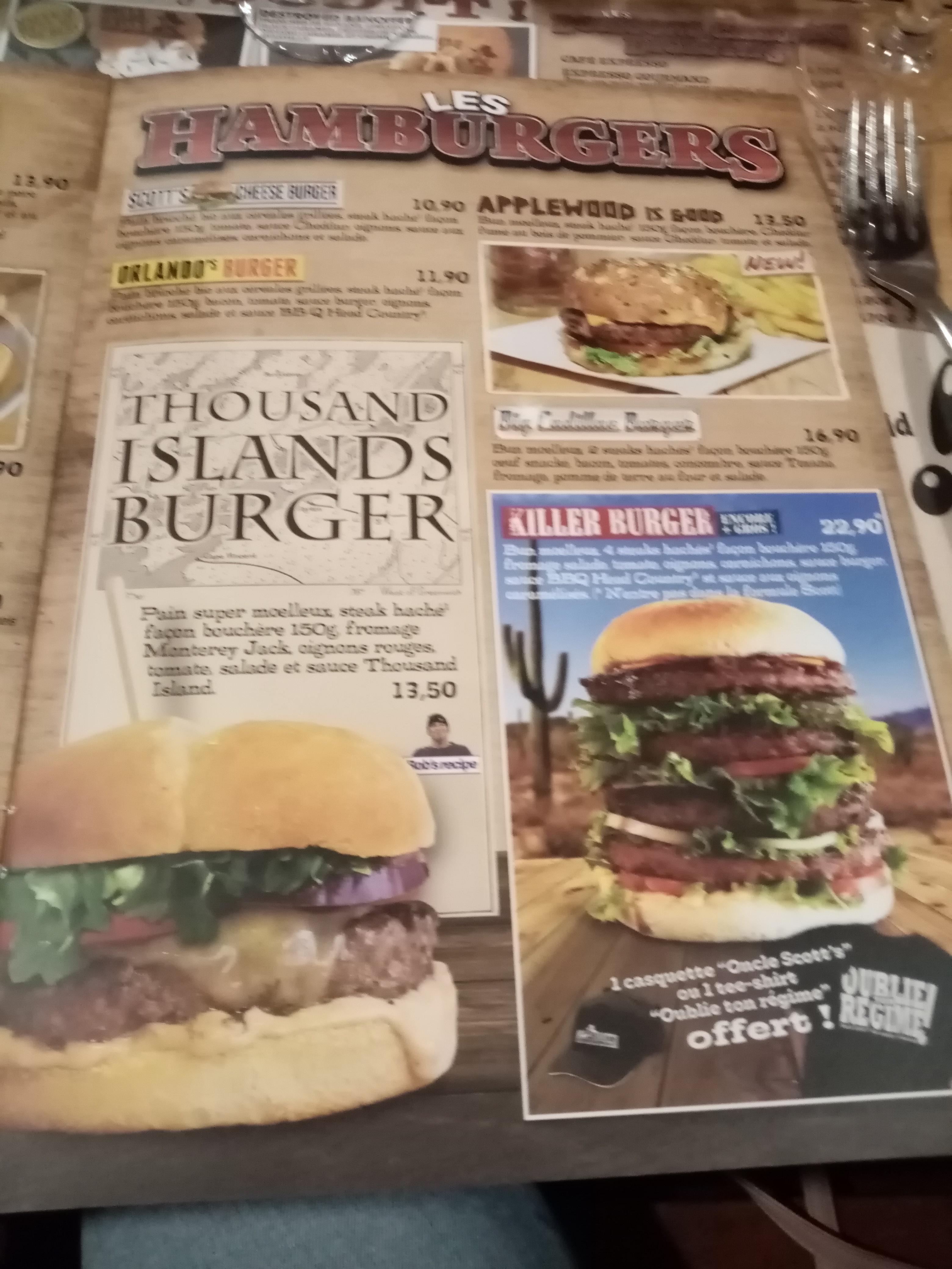 Cuisine mode cow-boy.on y trouve ce qu on vient chercher le décor,une nourriture américaine type.Je n y viendrai pas toutes les semaines mais de temps en temps.j ai bien aimé