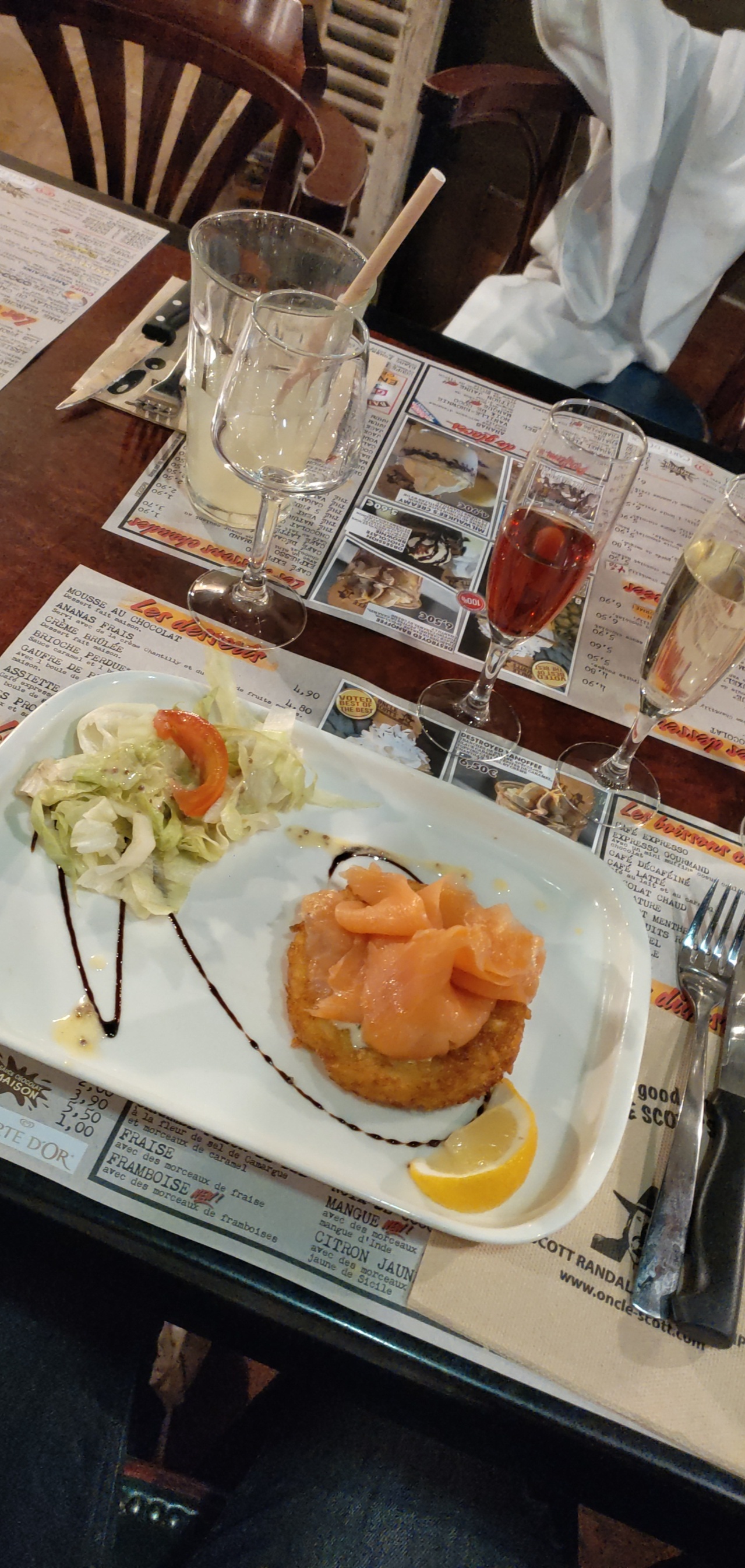 Entrée saumon fumé très bonne ! Les burgers sont bons aussi mais la note se justifie par l'aimabilité d'un serveur en particulier....dommage on passait un bon moment