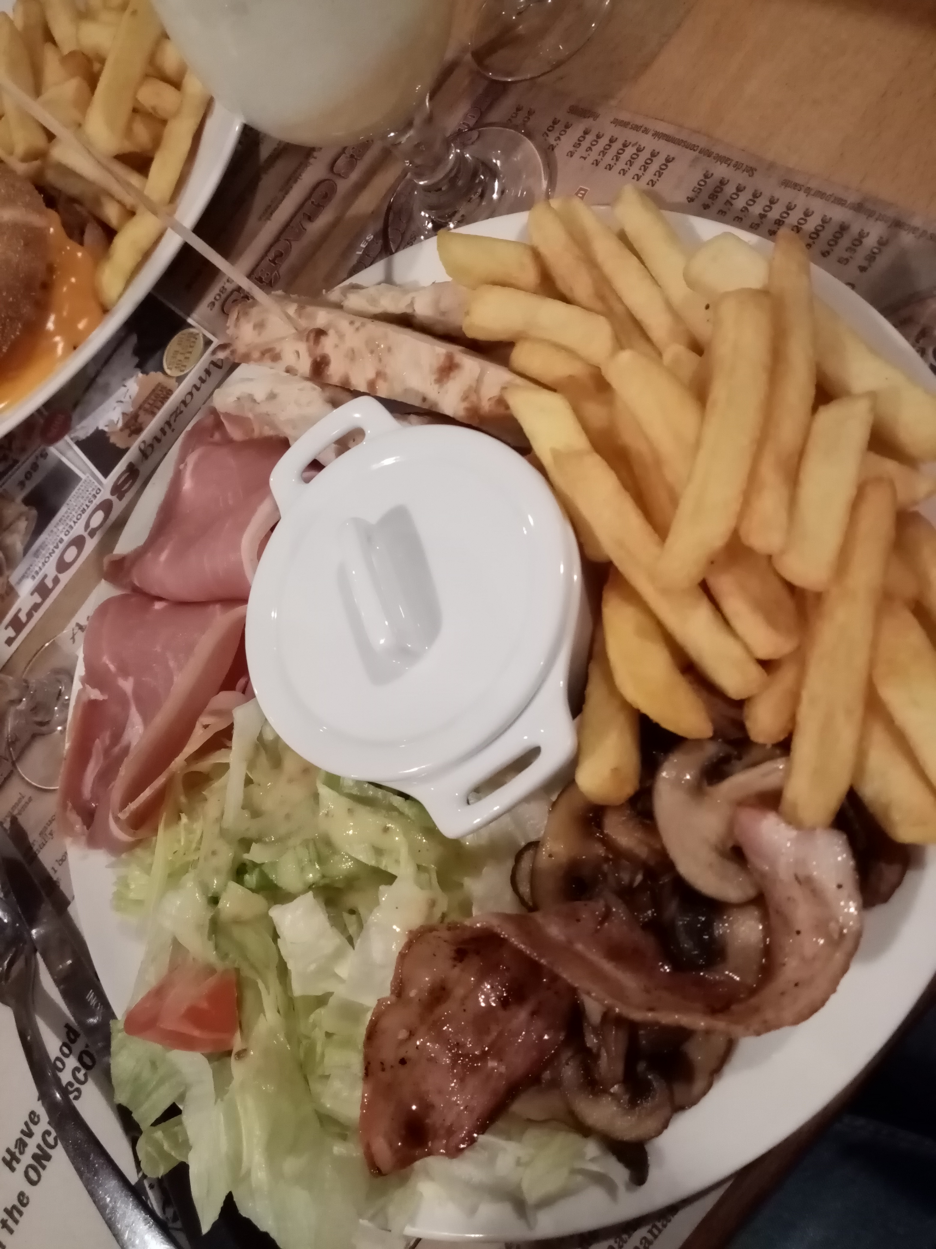 Ambiance sympa, planche apéritif tres copieuse. La prise de commande , le debarrassage et la suite des plats un peu longue, le dessert pas terrible du tout manque de saveur.