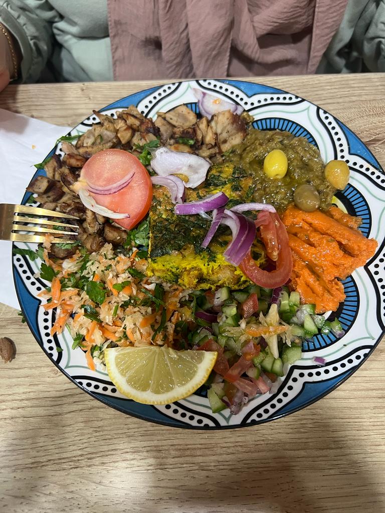 Assiettes très variées et bien présentés. Plat chawarma trop sec à mon goût...personnels très accueillants. d'autres saveurs avec beaucoup de couleurs...
