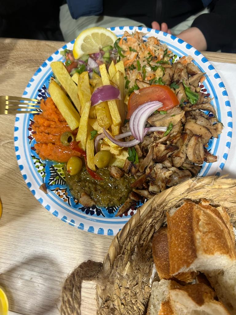 Je sors tout juste du restaurant , la qualité de chaque produits est vraiment incroyable. Absolument tout est frais dans ce que j'ai manger ce soir. Ce fût une très bonne expérience pour une première découverte de la cuisine tunisienne. Le personnel de l'établissement est très charmant et vraiment très gentil. Je recommande grandement de tenter l'expérience. Je me suis régalé de l'entrée au dessert !