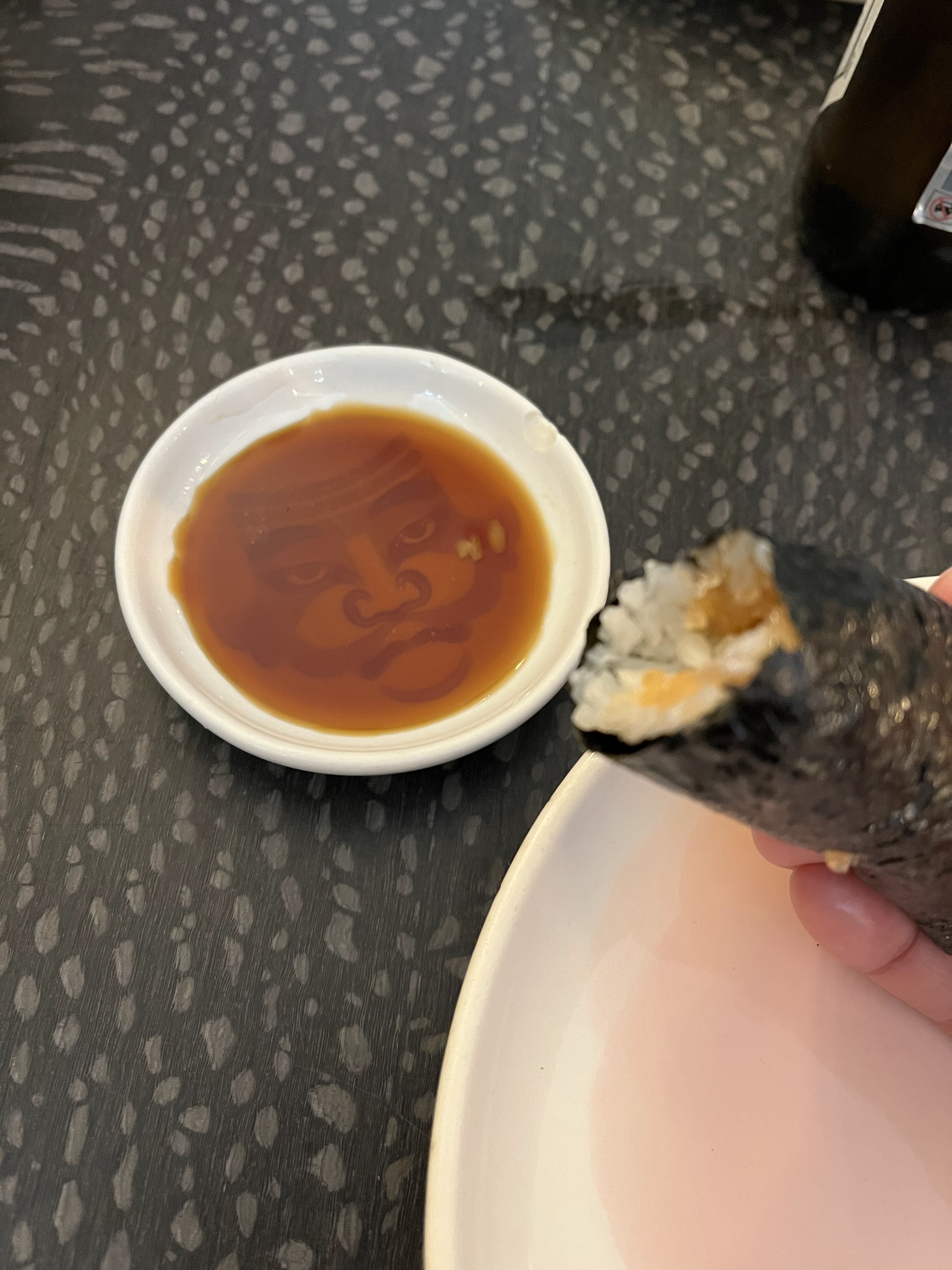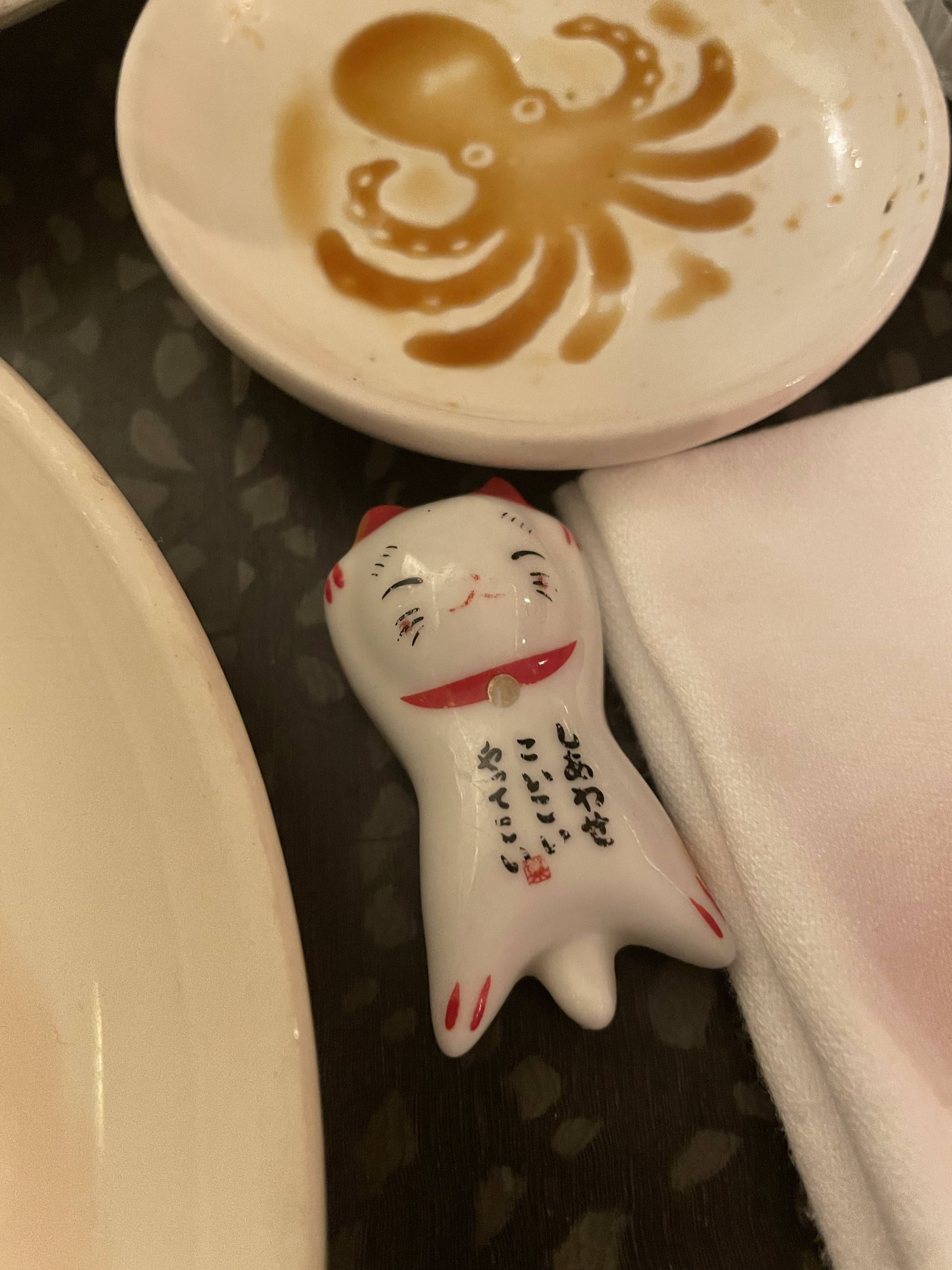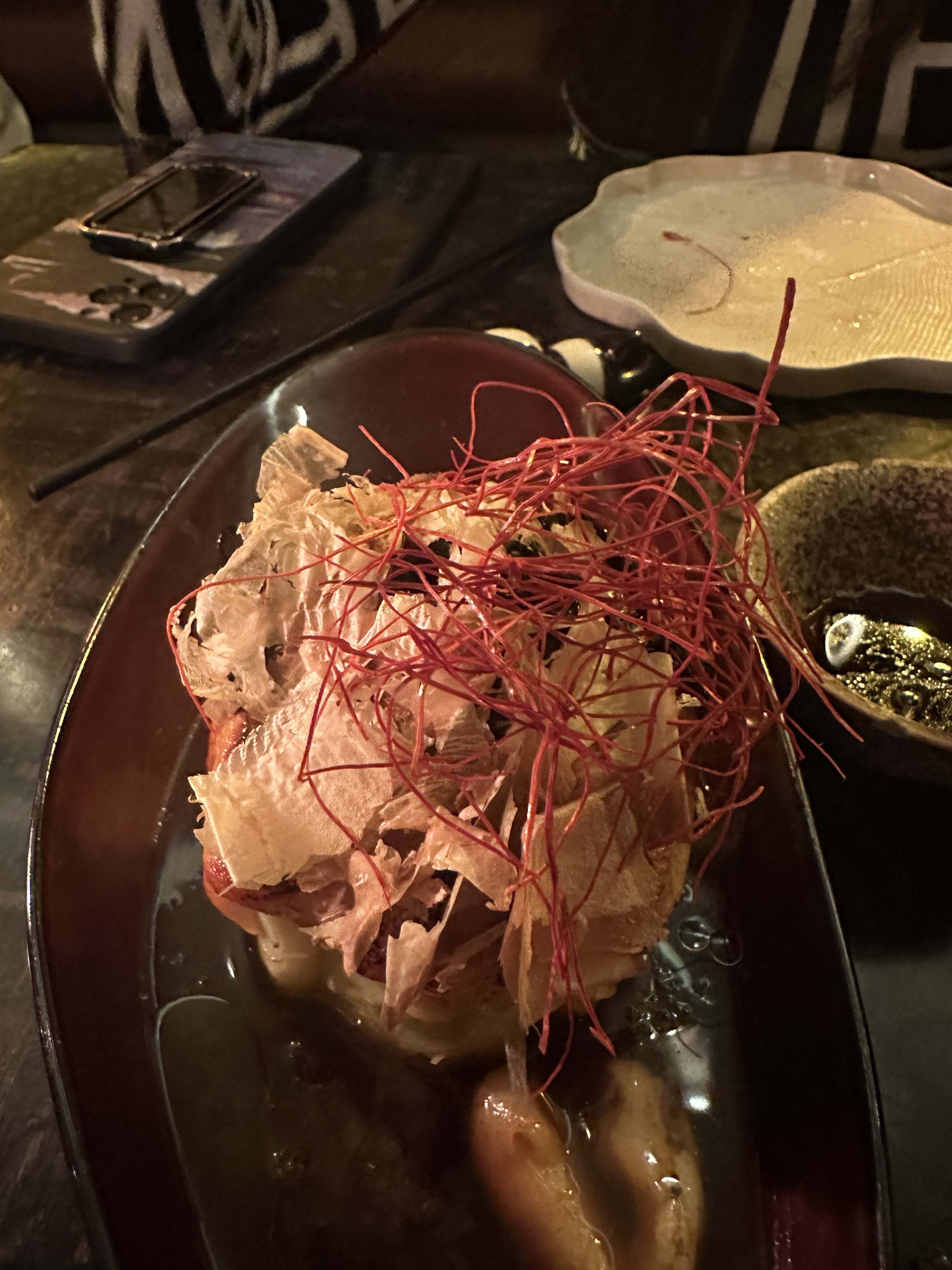 nous avons adoré cet endroit pour un dîner très confortable et délicieux. très passionné par la culture culinaire japonaise, le style izakaya en particulier et amoureux du saké. nous avons également aimé l'intérieur avec tous ses jolis détails – si quelqu'un du personnel (d'ailleurs super gentil et serviable) lit ceci, faites-moi savoir où je peux me procurer cette belle petite assiette au visage sinistre ! nous avons quitté les lieux avec une expression faciale contraire à l'assiette et nous reviendrons à coup sûr. quelques choix végétaliens supplémentaires seraient très appréciés, mais cela reste un 5/5.