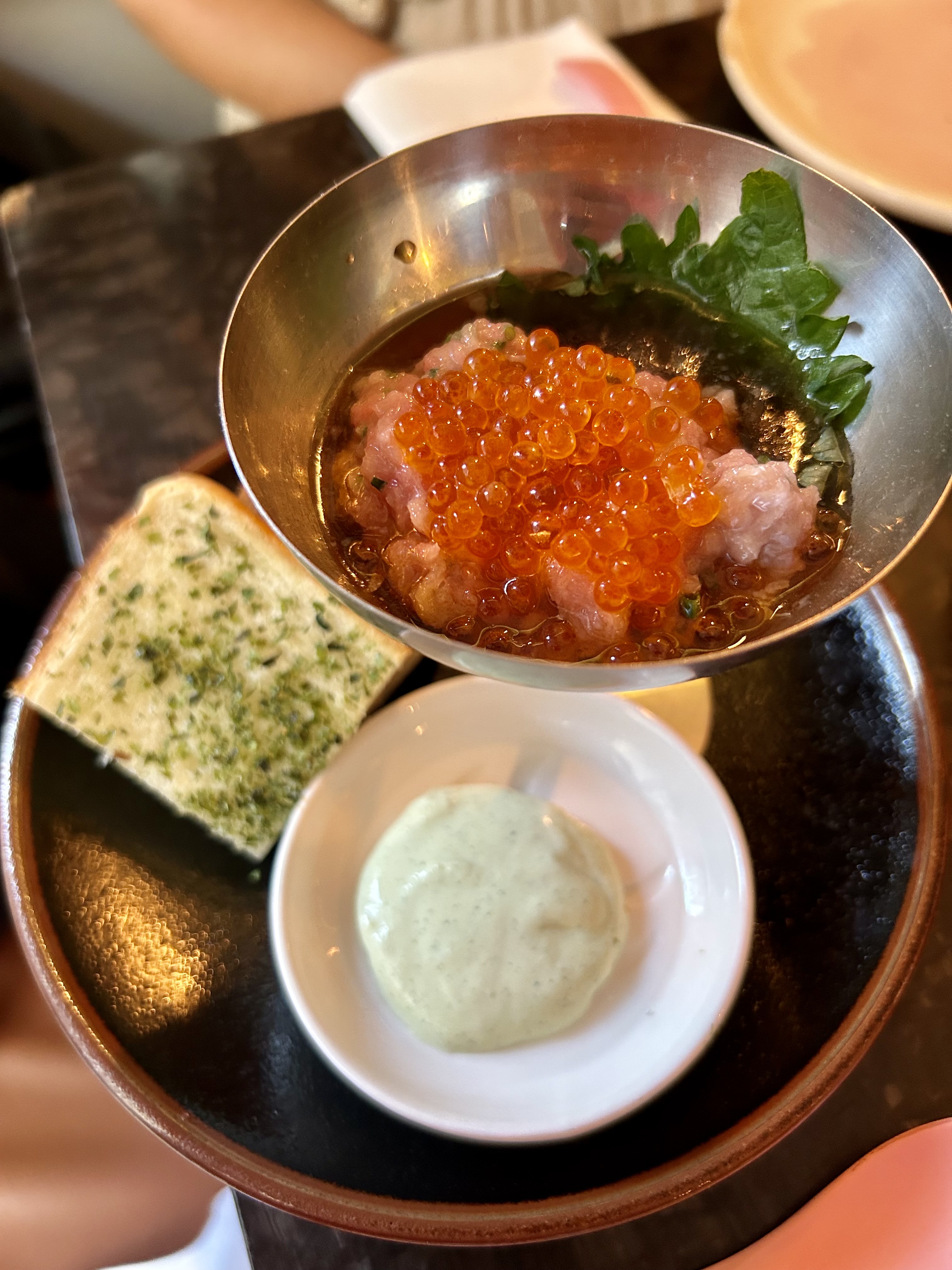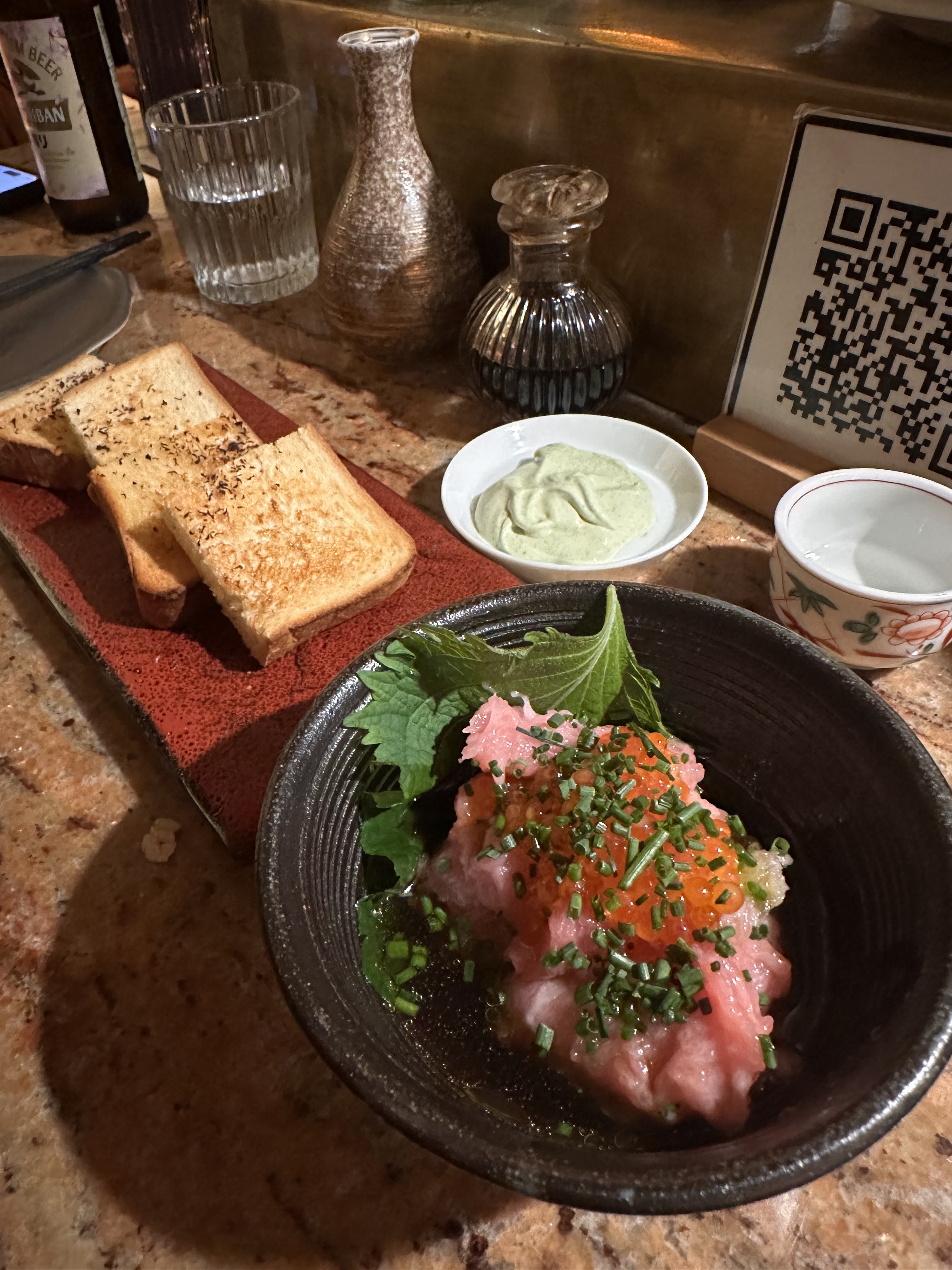 Accueil bienveillant, ambiance chaleureuse et plats délicieux, je recommande à 100%! Tout était parfait; les coques au yuzu, le toro sando avec sa mayonnaise wasabi et le riz au lait au crumble de sesame noir. Merci à toute l’équipe et à très vite