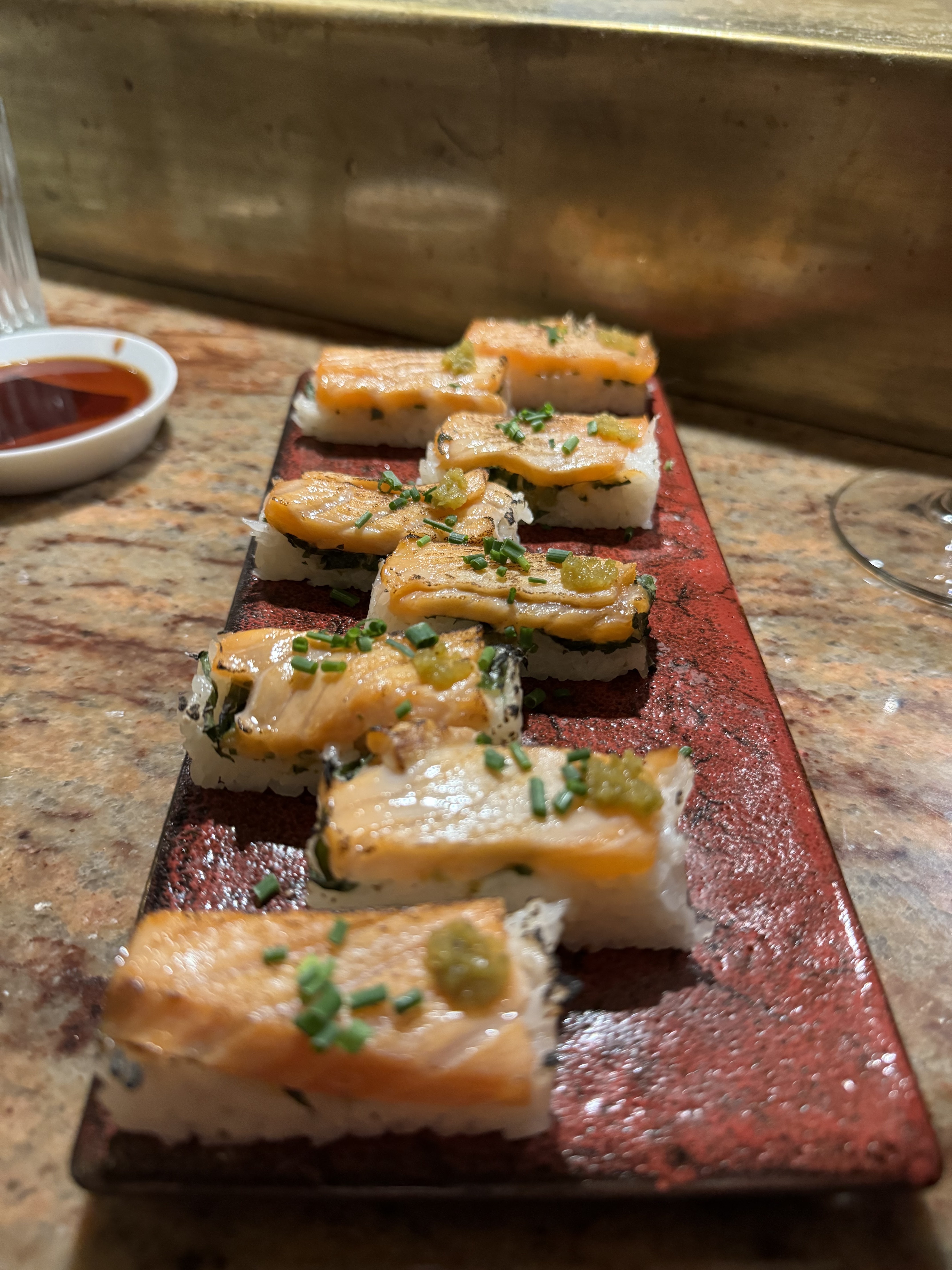 nous avons eu le toro temaki, les sabdos, le shiitake et un poisson dont je ne me souviens plus du nom. chaque assiette était délicieuse ! je reviendrais pour essayer plus