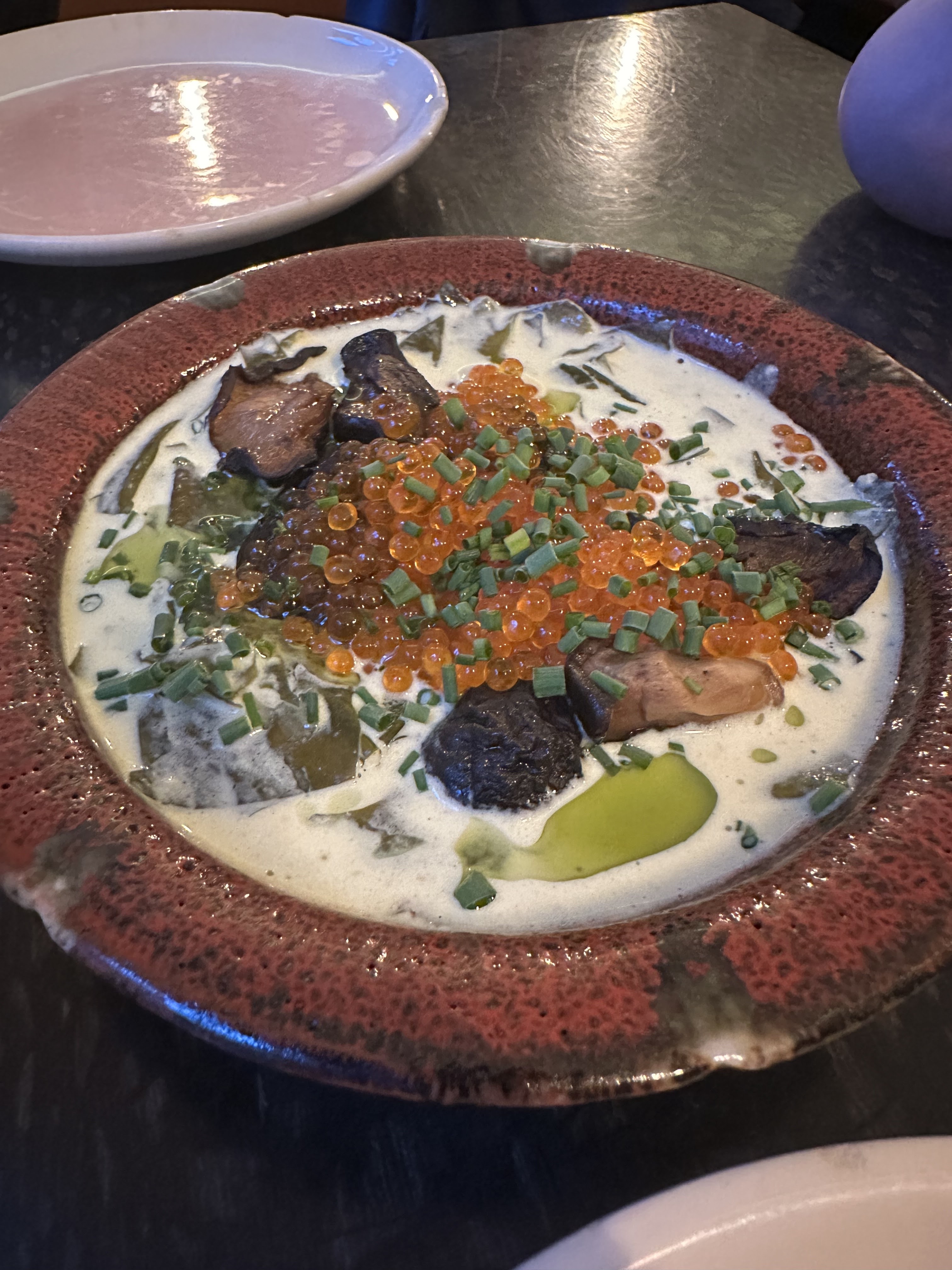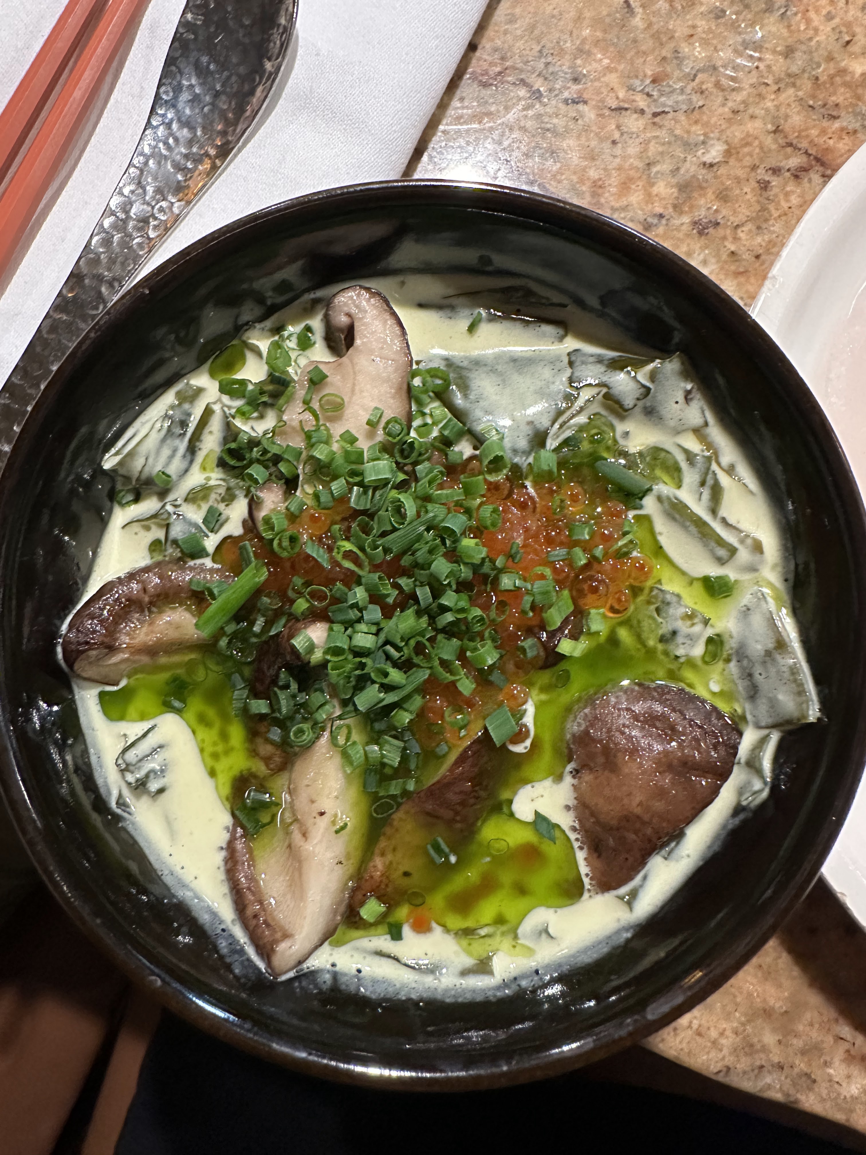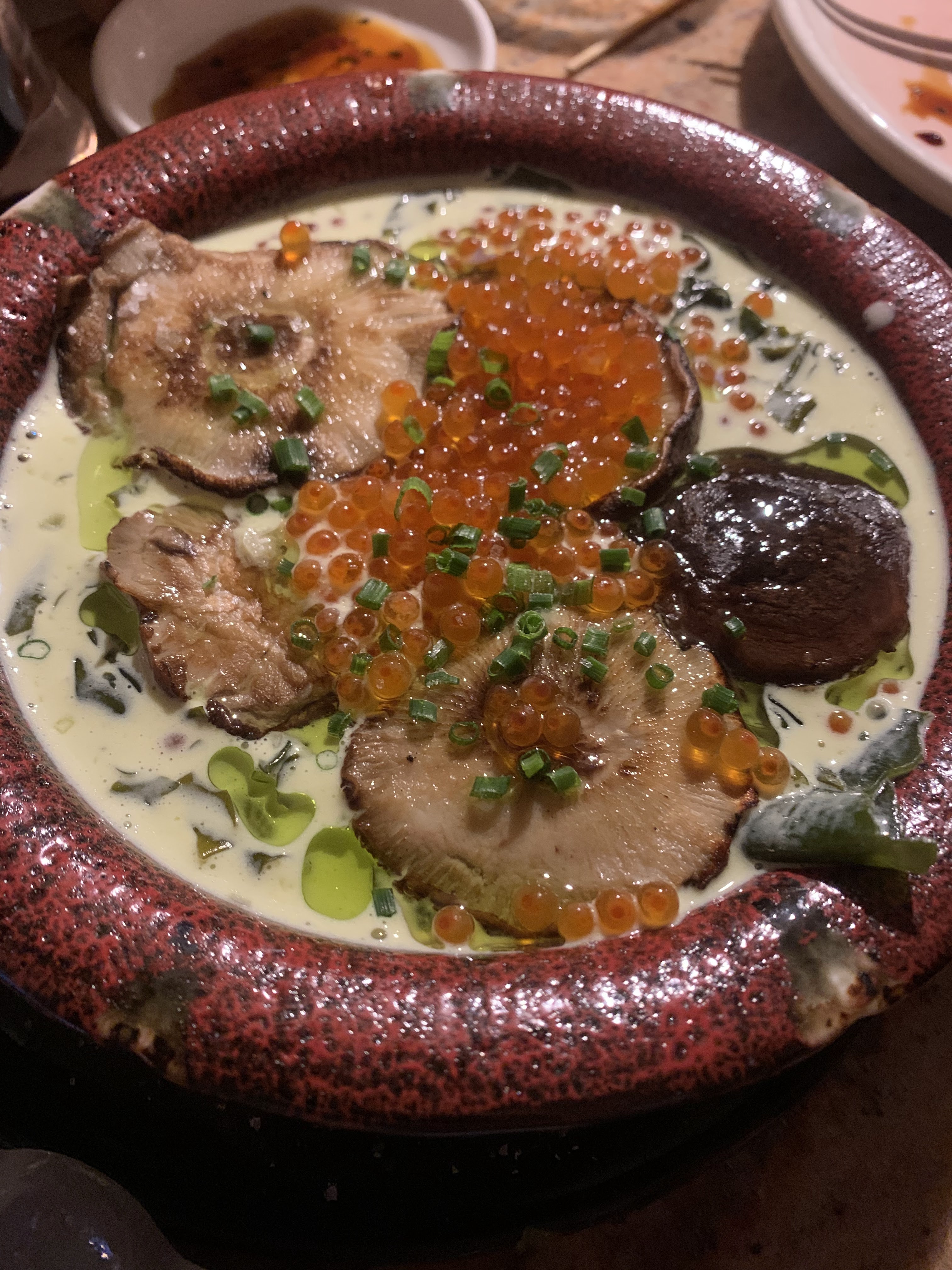 Assortiment amusant de plats proposés au restaurant ! Mon préféré était les palourdes au beurre de yuzu - j'aurais pu boire toute la sauce dans le bol ! Le shiitake était une surprise crémeuse et délicieuse. Deux plats qu'il faut commander !