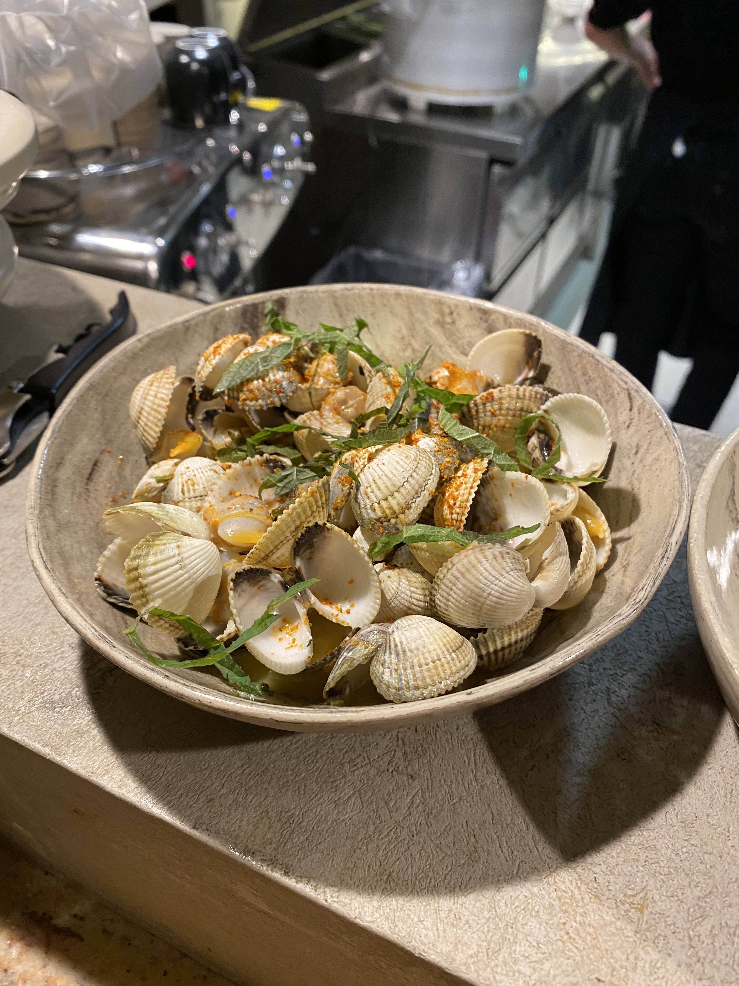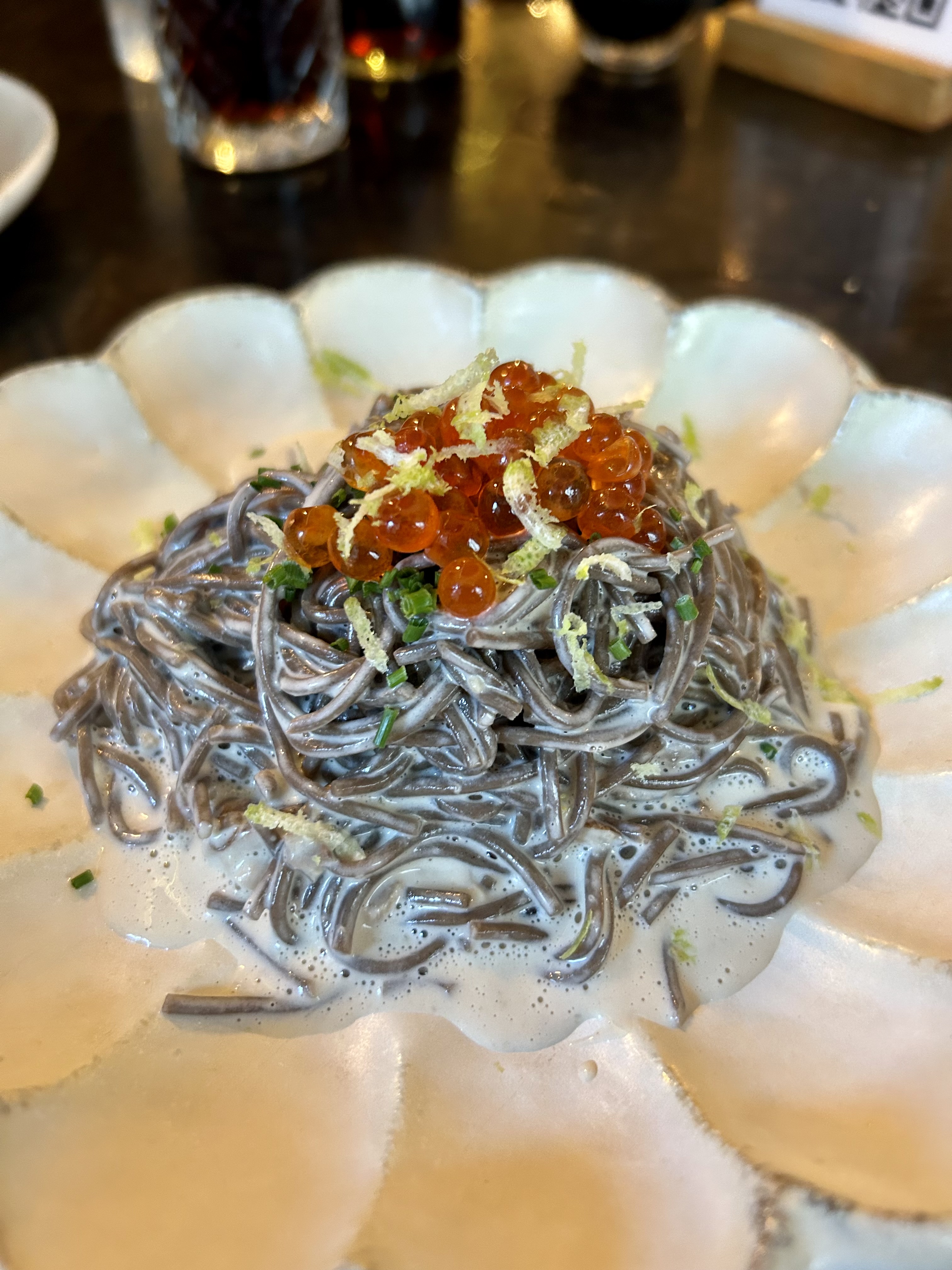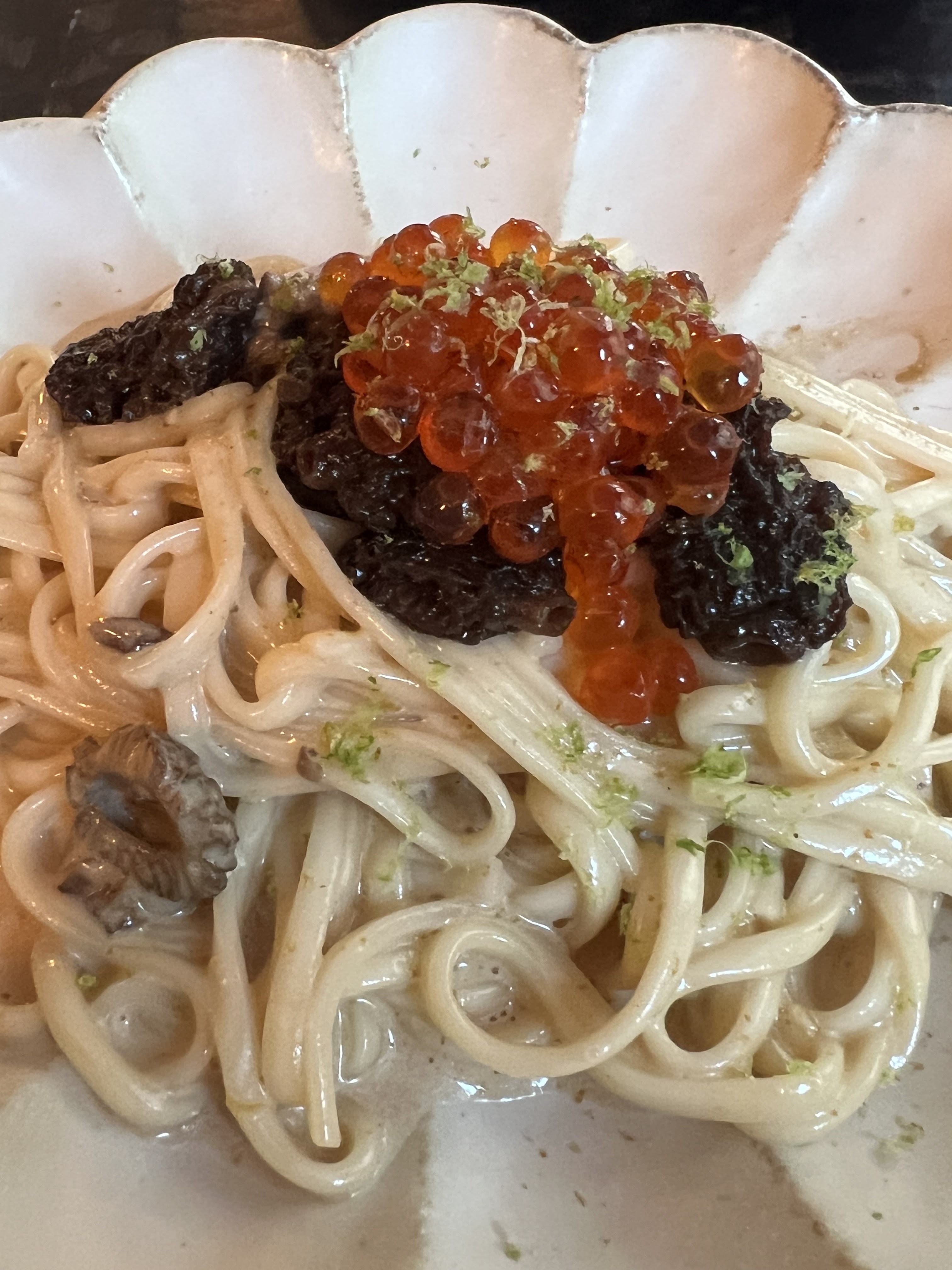 Assortiment amusant de plats proposés au restaurant ! Mon préféré était les palourdes au beurre de yuzu - j'aurais pu boire toute la sauce dans le bol ! Le shiitake était une surprise crémeuse et délicieuse. Deux plats qu'il faut commander !
