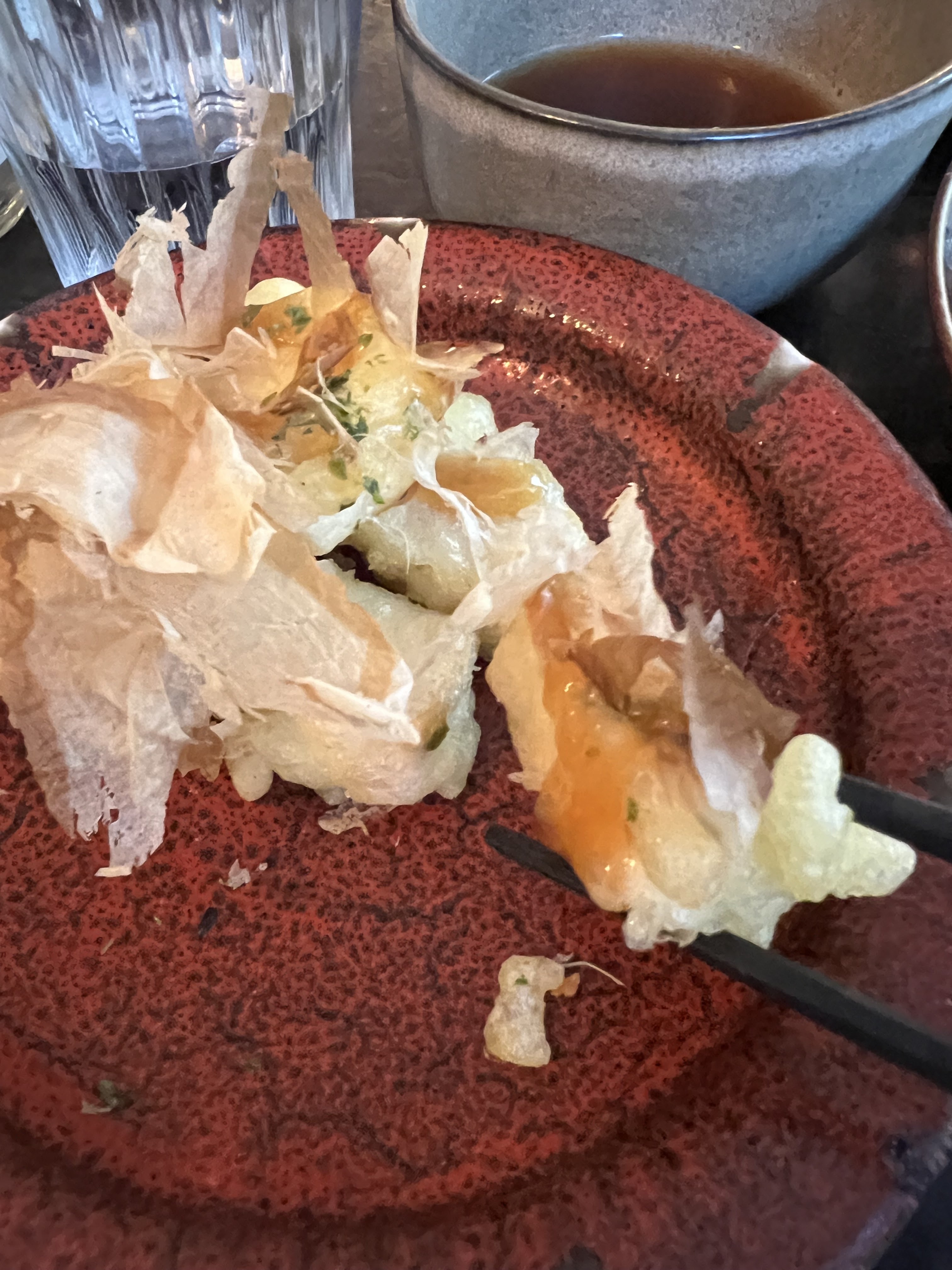 Tout est très bon mais dans des portions insuffisantes pour le prix. Avec la serveuse, entre maladroite et arrogante, qui nous a répété 3 fois qu’on n’a pris que 3 plats alors qu’on devrait en prendre 4, ça a fini de me convaincre que s’appeler Izakaya c’était juste un prétexte pour servir des micro quantité, en gardant un prix indécent. Les plats ravissent les papilles je ne peux pas dire le contraire. Mais j’ai passé un repas désagréable d’abord à cause du service, puis l’addition m’a fait regretté d’être venue.