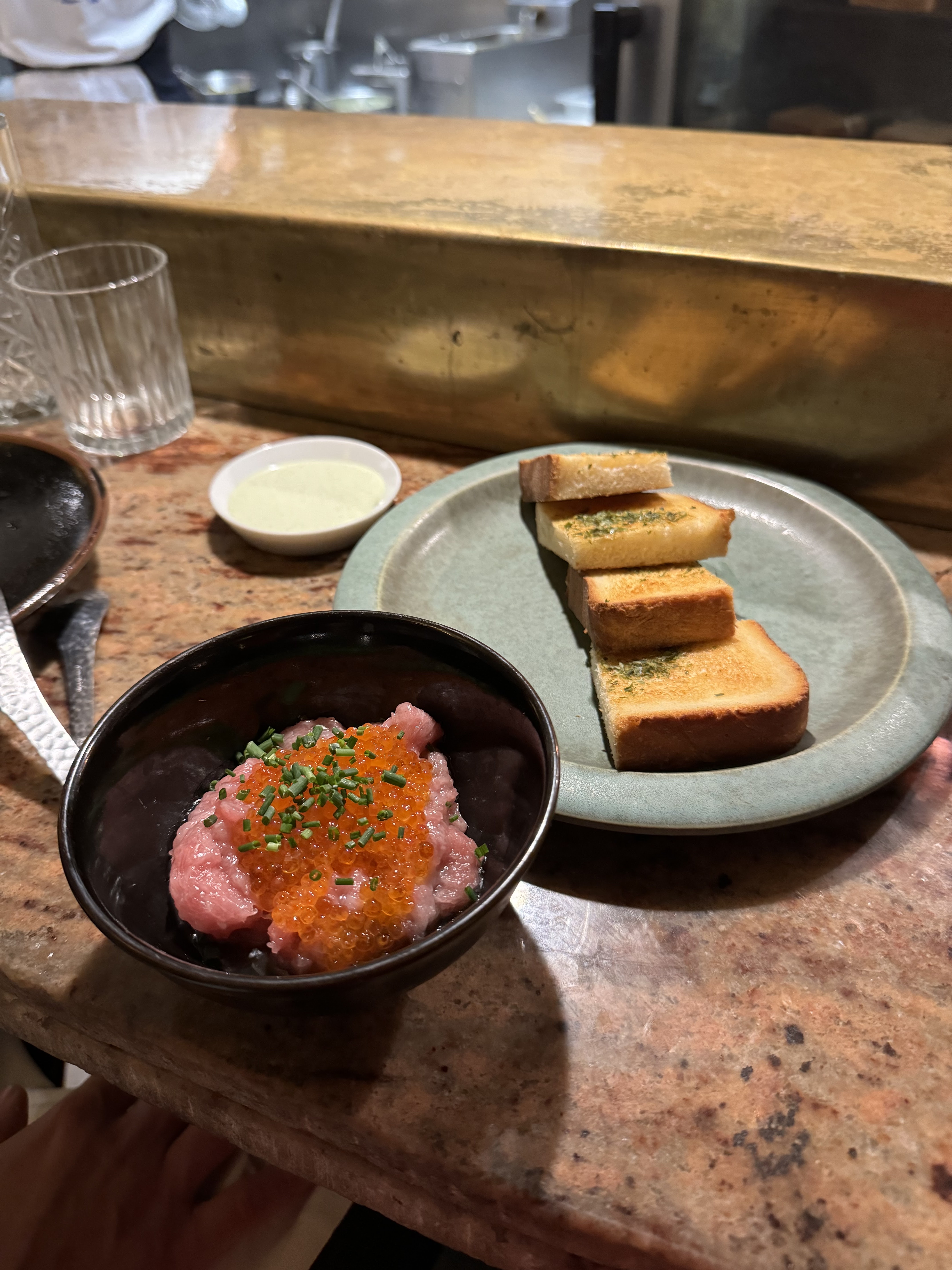 Waouh ! Nous nous sommes régalés. - L'entrecôte de Wagyu parfaite. - Tartare de thon Gras et sa sauce Mayo Wasabi, délicieux. - Toro Sando incroyable ! Je reviendrai sans aucun doute !