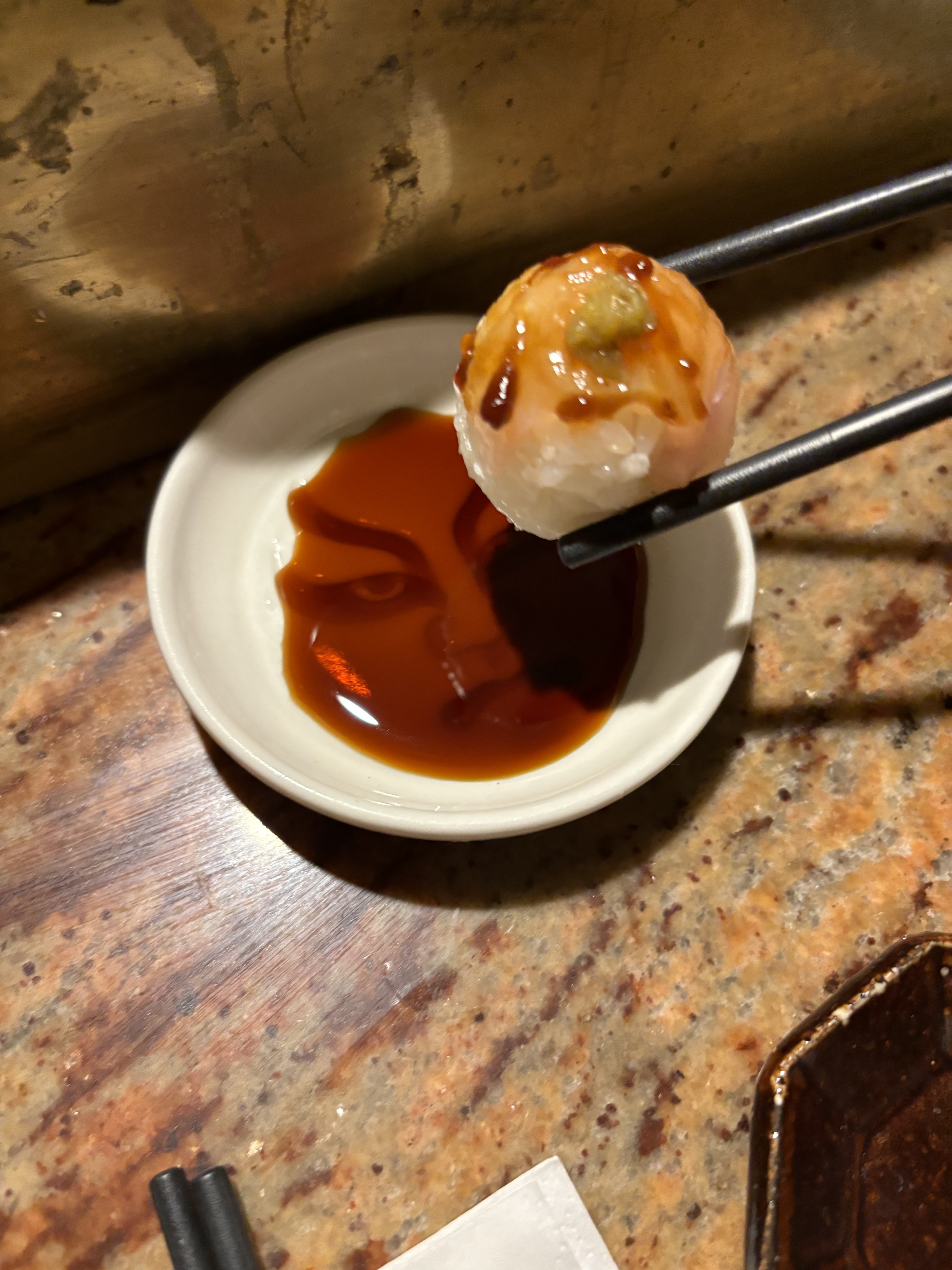 C'est très cher pour ce que c'est. Le rapport qualité/ prix n'est pas au rdv. 7 euros pour un roll avec concombre c'est un peu trop cher. Nous avons réservé une table, on se trouve au bar. En soi ce n'est pas un souci , mais il faut prevenir les clients. le bar n'est pas agréable, sombre, encombré de vaisselle, on voit les poubelles. Je recevait des petits coups dans la chaise chaque fois que la serveuse ou un colis de cuisine passait. On a payé 60 euros à deux et ce sans dessert et on n'est pas reparti rassasiés. Bref trop cher pour l'expérience ! Il y a beaucoup d'autres restaurants de qualité où on se sent mieux et on mange mieux.
