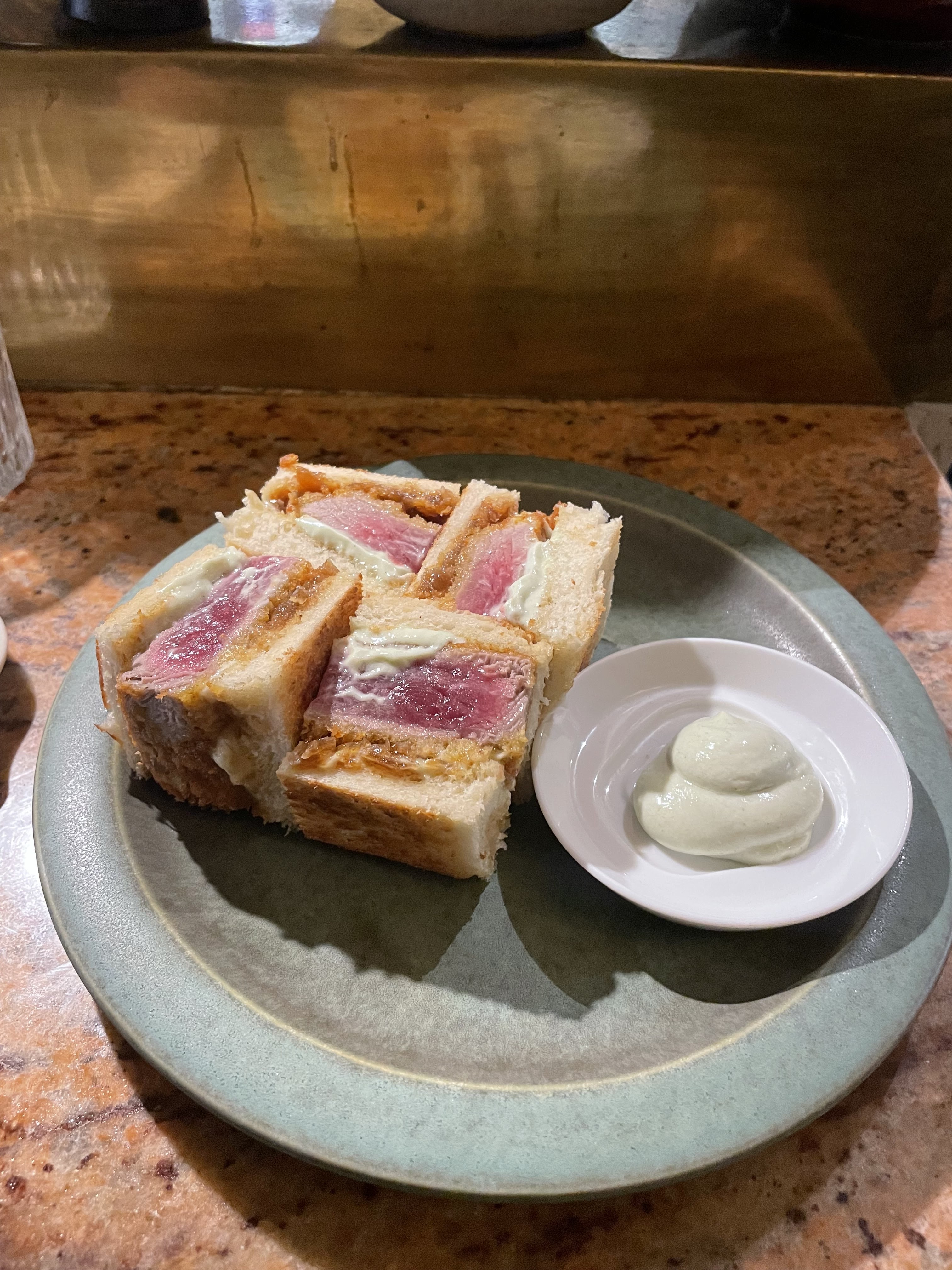 J'ai commandé le sandwich au thon signature et je ne pense pas qu'il soit japonais ou qu'il vaut 26 €. La quantité de thon est environ la moitié de celle présentée sur les photos présentées il y a quelques mois. Demi-taille de thon. Le cocktail est comme un habitué. tant pis