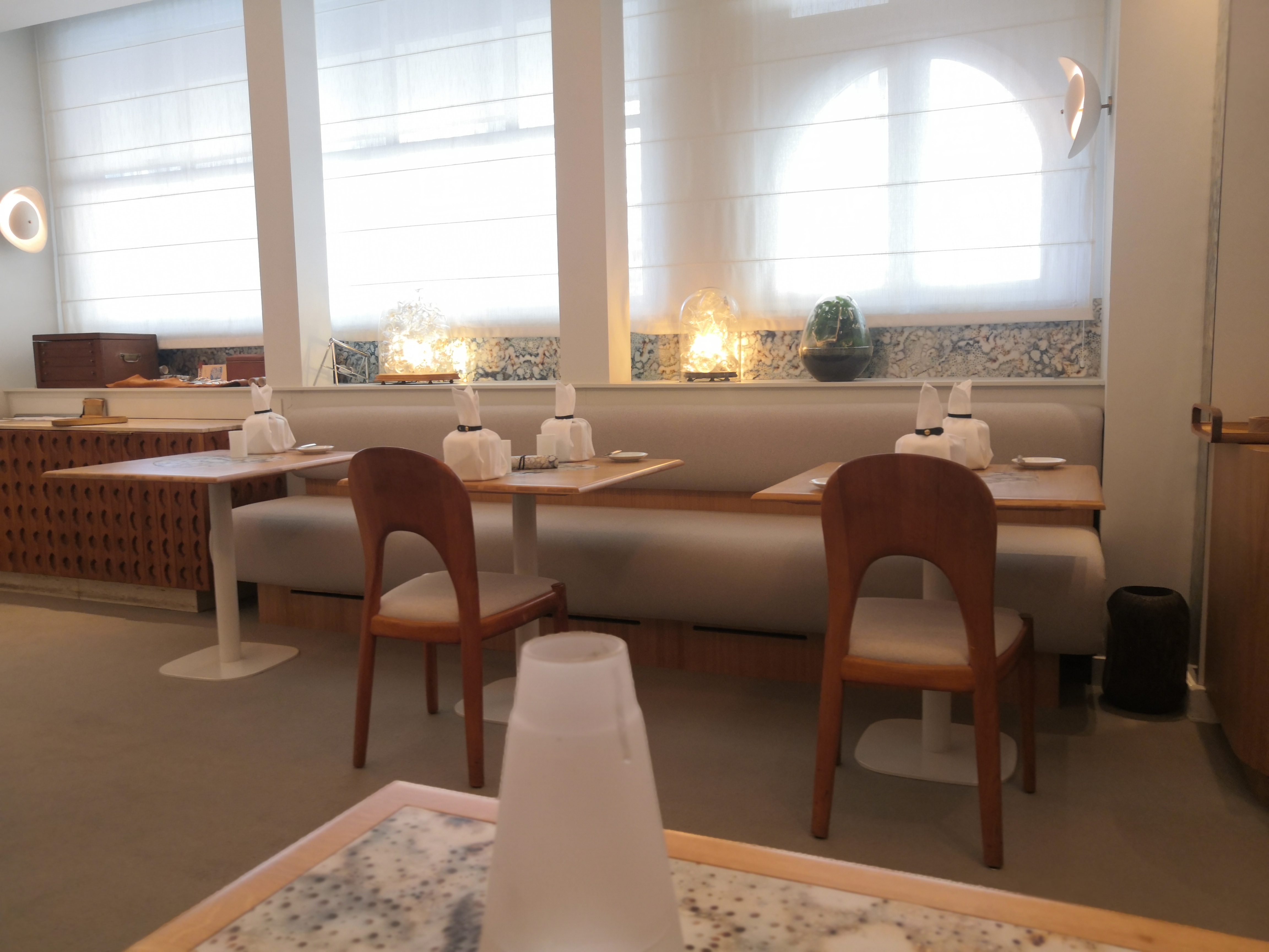 Pouces vers le haut. À tous les niveaux : réussite. L'ambiance est exaltante, dès l'entrée. Les couleurs bleu minéral/océan/corail et les lampes indirectes de forme ronde donnent une atmosphère cosy et lumineuse. Cuisine : délicatesse, caractère et perfection, originale mais si raffinée... Poissons divinement cuisinés, herbes, émulsions, jus légers mais pleins de parfums. Mention spéciale pour le choix des pains faits maison et particulièrement la tomate-brioche... La carte des vins est courte mais intelligente et intéressante. Le sommelier est excellent. Suivez ses conseils : génial. Service : efficace, discret mais amical et poli, sans aucune obséquiosité. Le personnel est très compétent. Expérience fabuleuse. Optez pour le menu dégustation. Ce n'est jamais trop ni trop lourd.