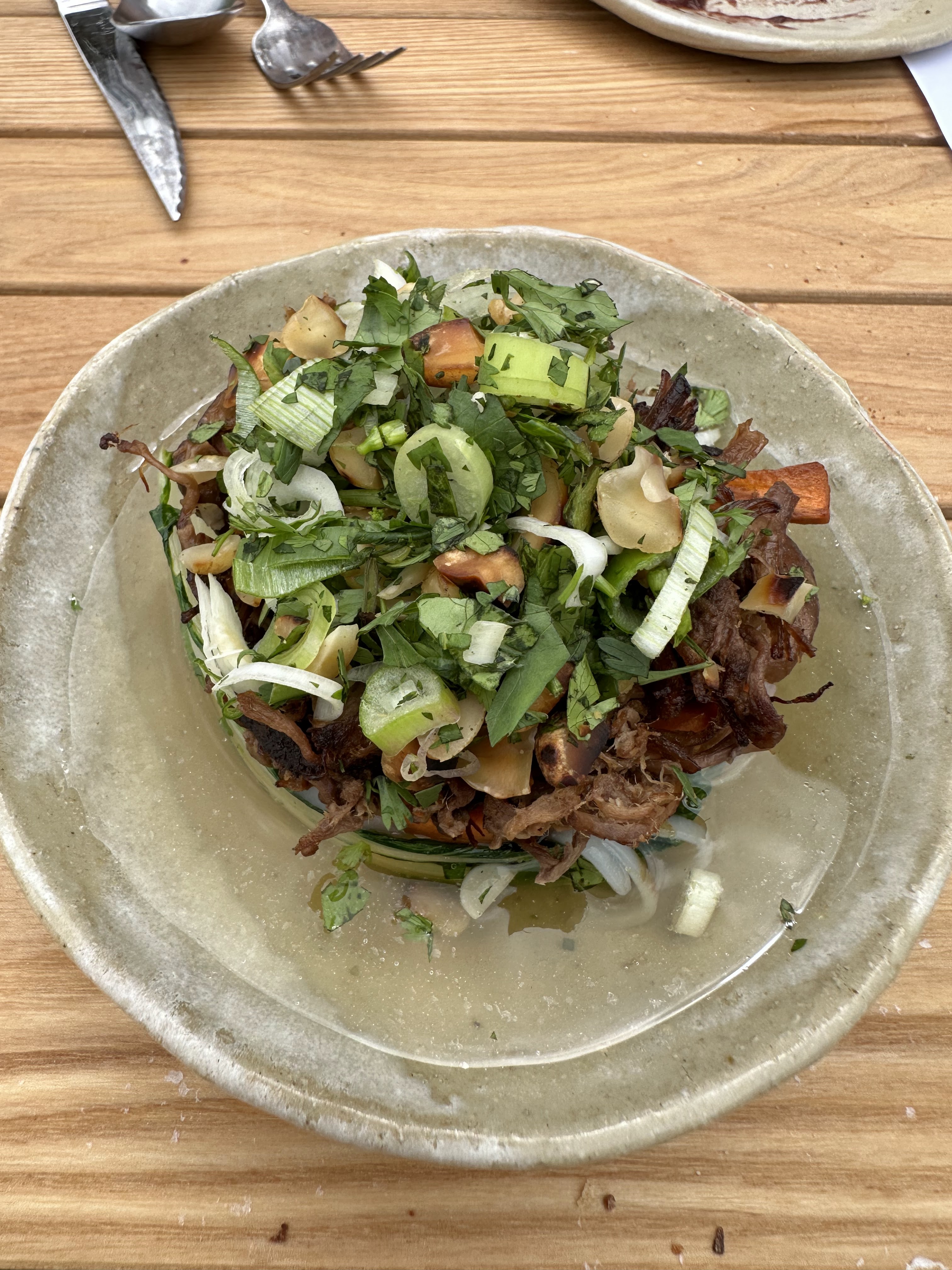 Sélection de plats et de vins incroyable. Ça a l'air mignon à l'intérieur mais nous avons opté pour la terrasse à chaque fois. Le menu est différent chaque semaine en fonction de la disponibilité des produits locaux. J'ai fini par y aller trois fois en autant de semaines.