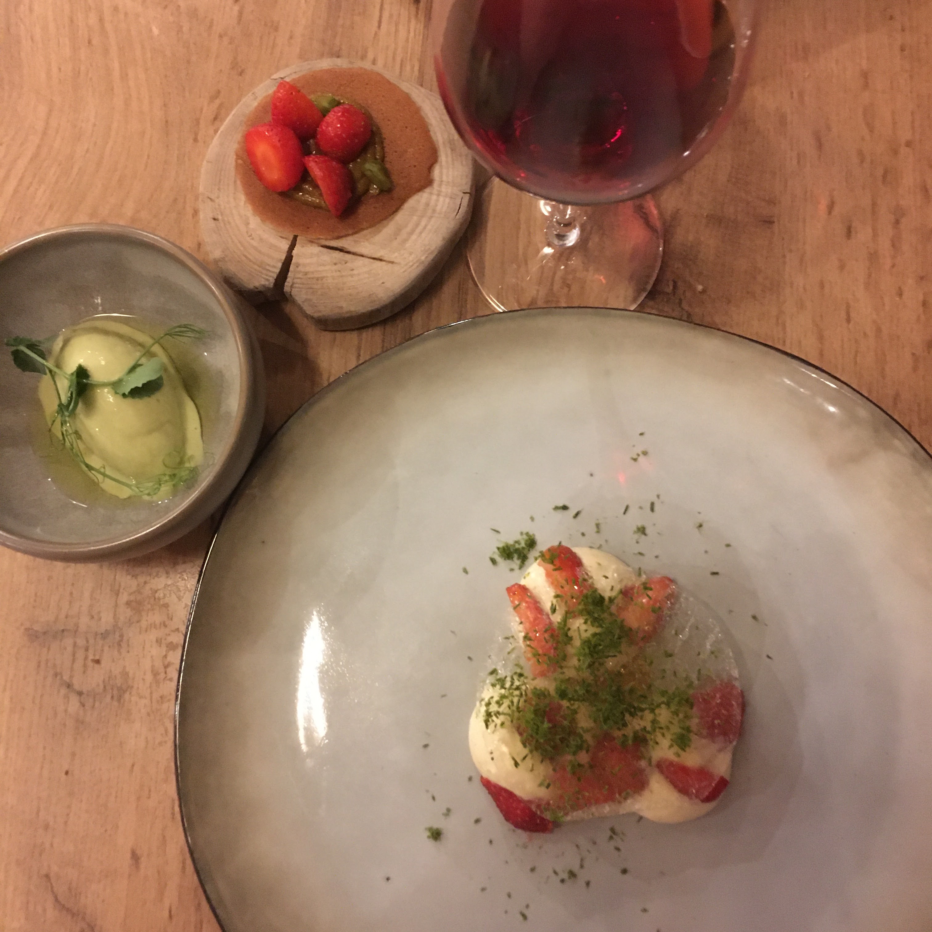 1er restaurant de 2 jeunes chefs de talents. La cuisine est étonnante autant dans la présentation que dans les goûts. A chaque étape il y a 1 plat principal et 2 plats satellites qui rehausse le 1er. A retenir le sorbet au persil, la glace de petit pois, le plat de poisson très justement cuit, l'entre 2 plats de granité de pasteque au curcuma. Les vins ne sont pas en reste avec un étonnant vin orange d'italie. Le restaurant est agréable ment agencé avec une vingtaine de couvert ce qui donne une ambiance calme ou on peut discuter sans problème. Les chefs et le serveur sont à l'écoute et très accueillant.