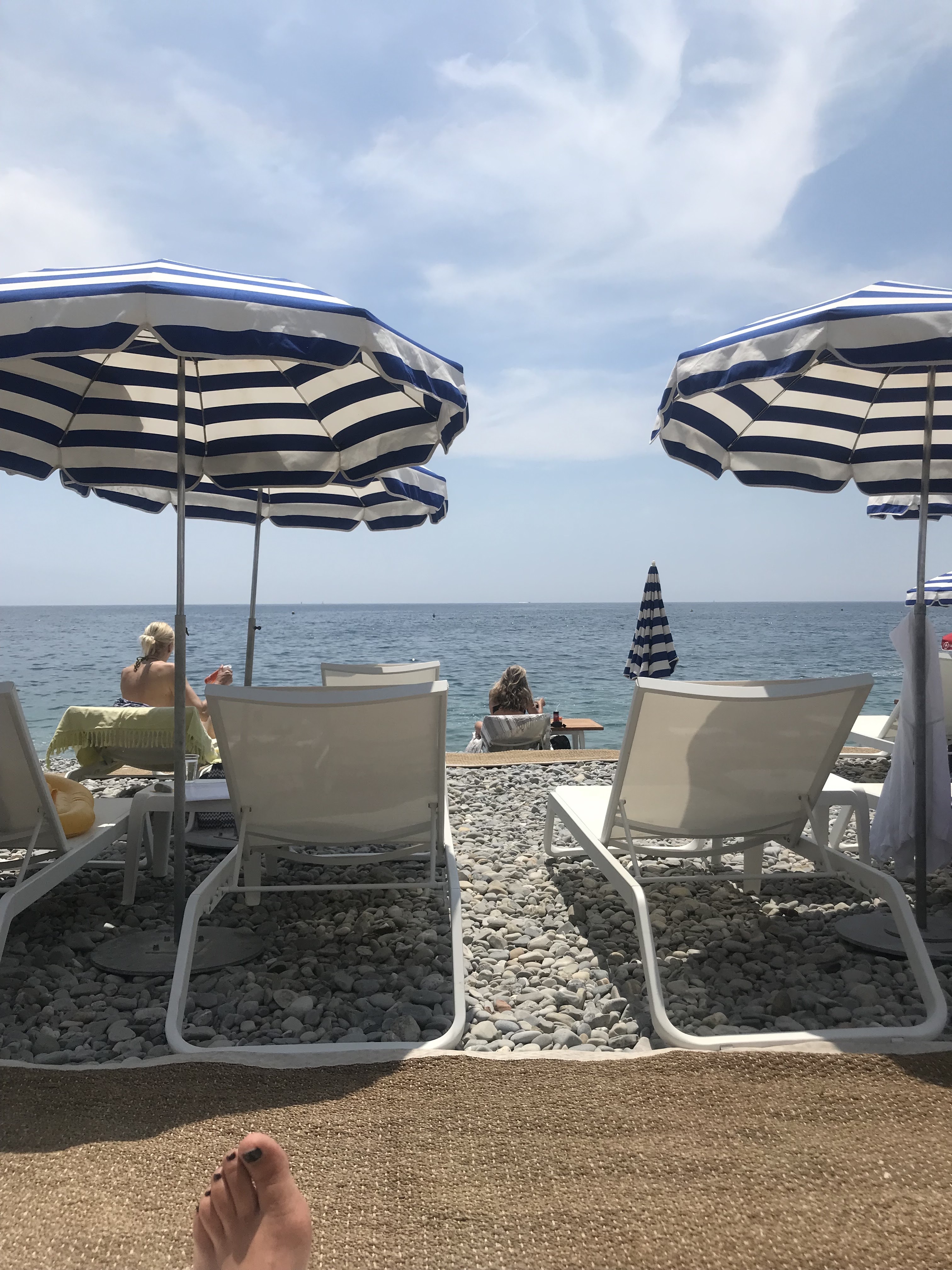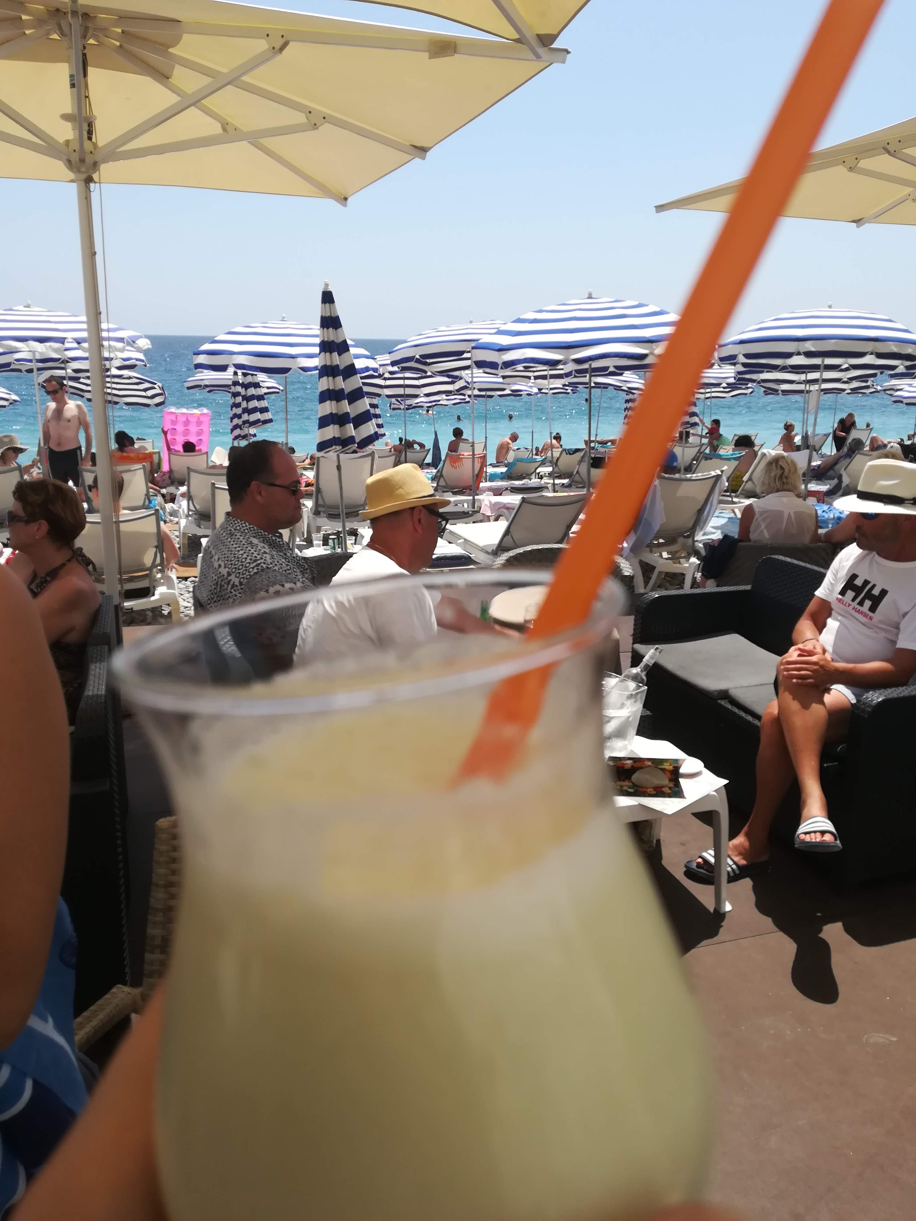 Pause détente sur cette plage en fin de journée. Très agréable de prendre un verre au soleil, face à la Baie des Anges. Accueil et service correct. Néanmoins, les salons de jardin pourraient être un peu plus confortables La partie restauration n'était pas encore ouverte.
