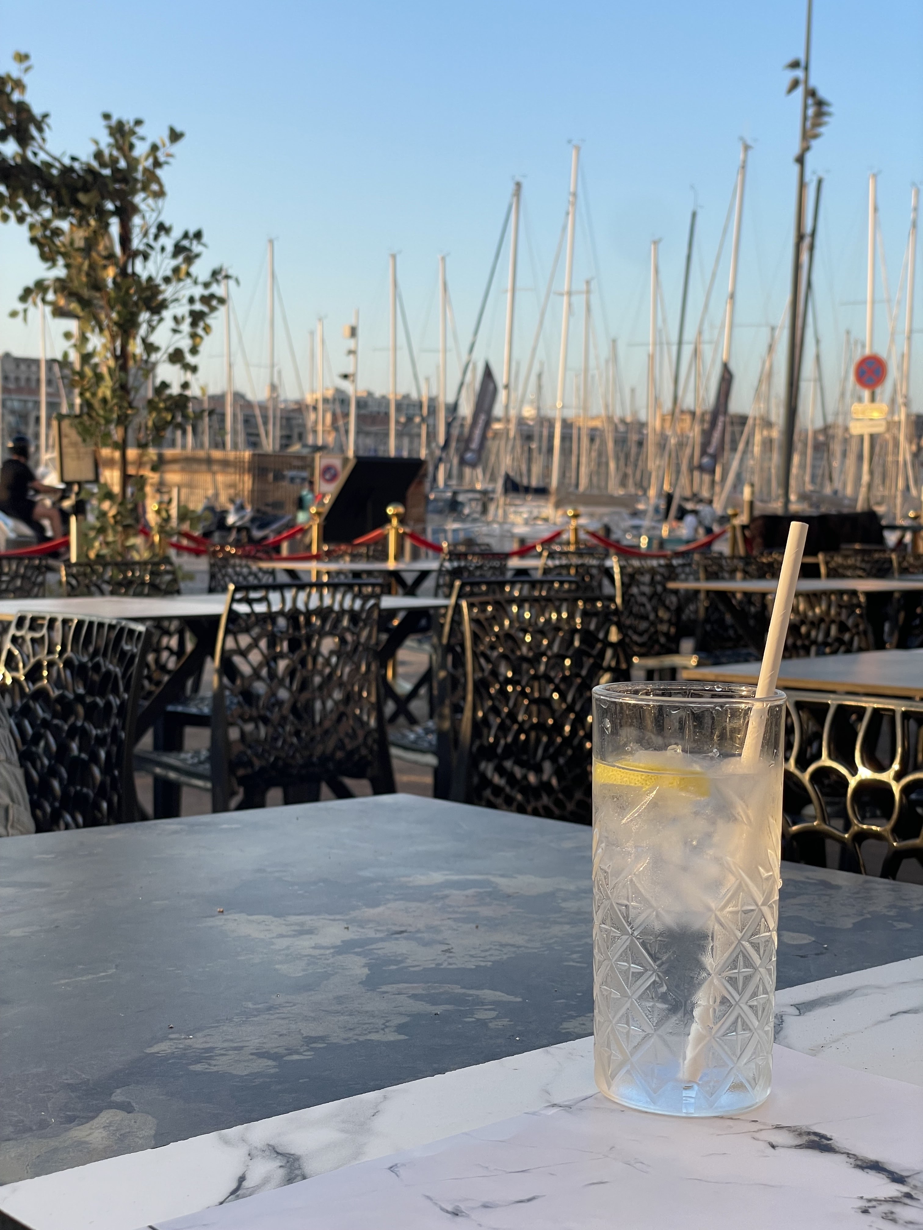 Très bien situé directement sur le Vieux-Port de Marseille magnifique vu de ce dernier, Virgin mojito excellent 🥴, bonne chicha service repas top et surtout qui sert toute la journée 👏